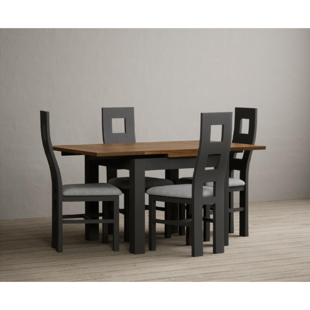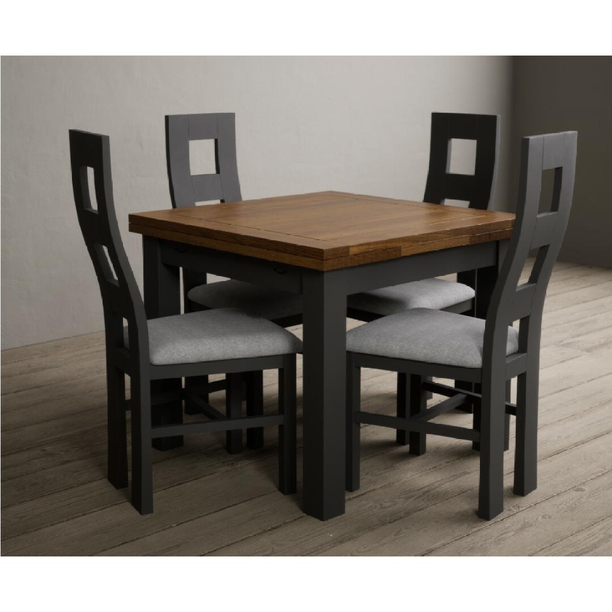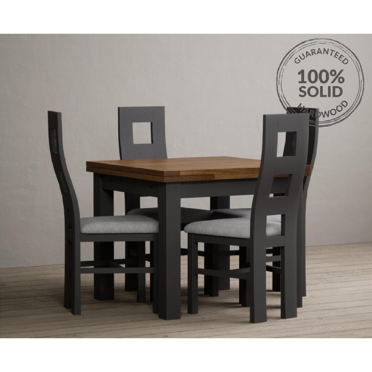 Extending Buxton 90cm Oak and Charcoal Grey Painted Dining Table with 4 Rustic Oak Painted Chairs