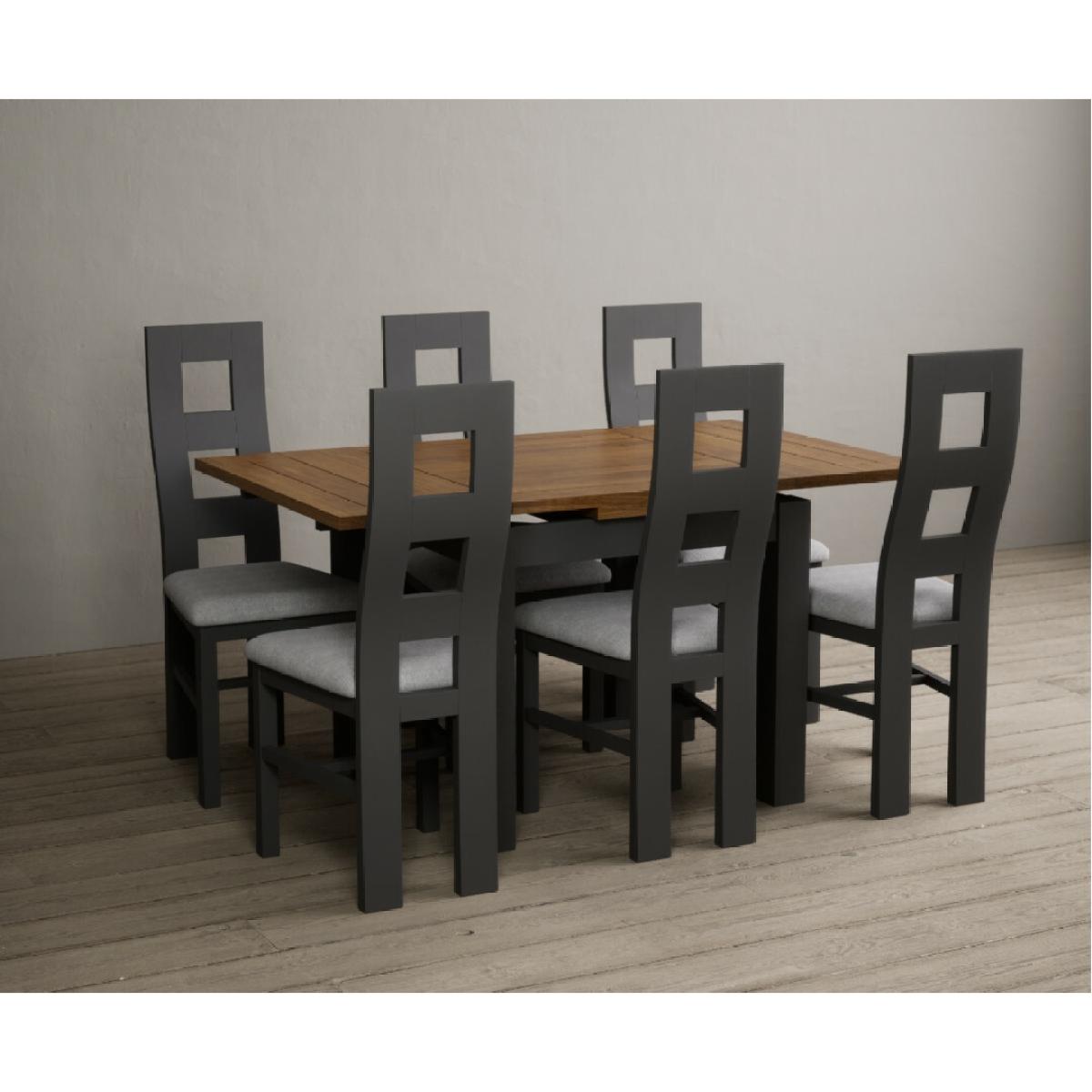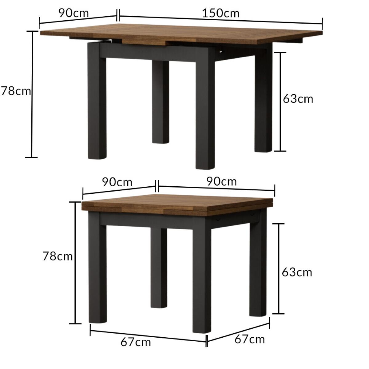 The Buxton 90cm Oak and Charcoal Grey Extending Dining Table with Flow Back Chairs is a painted extending dining set, made with 100% solid wood and 100% solid oak.
