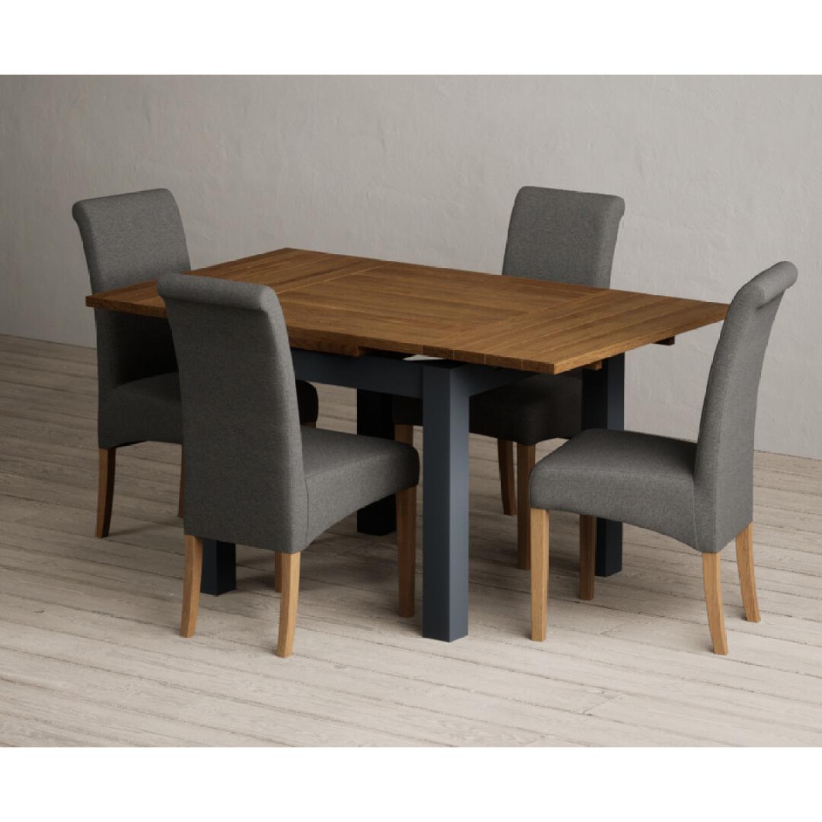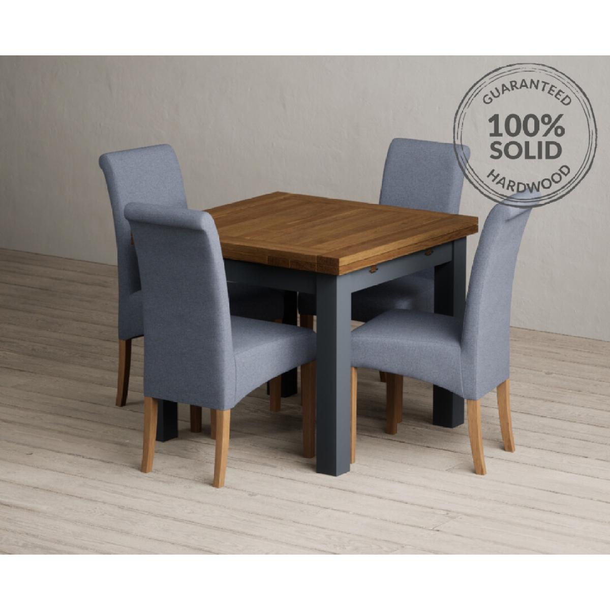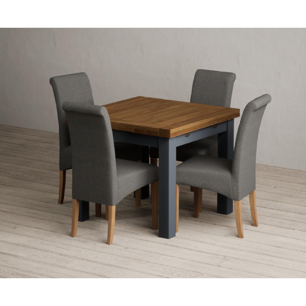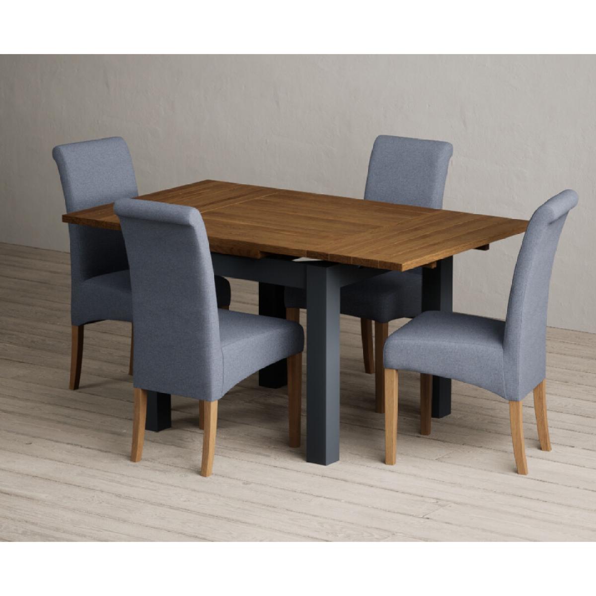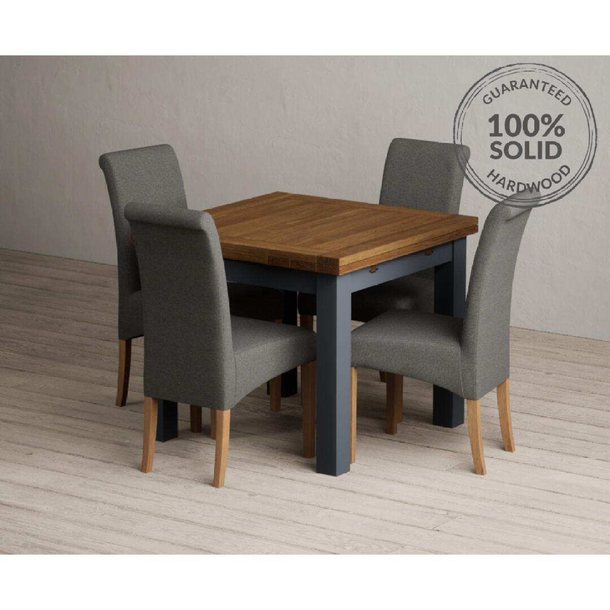 Extending Buxton 90cm Oak and Dark Blue Painted Dining Table with 4 Grey Scroll Back Chairs