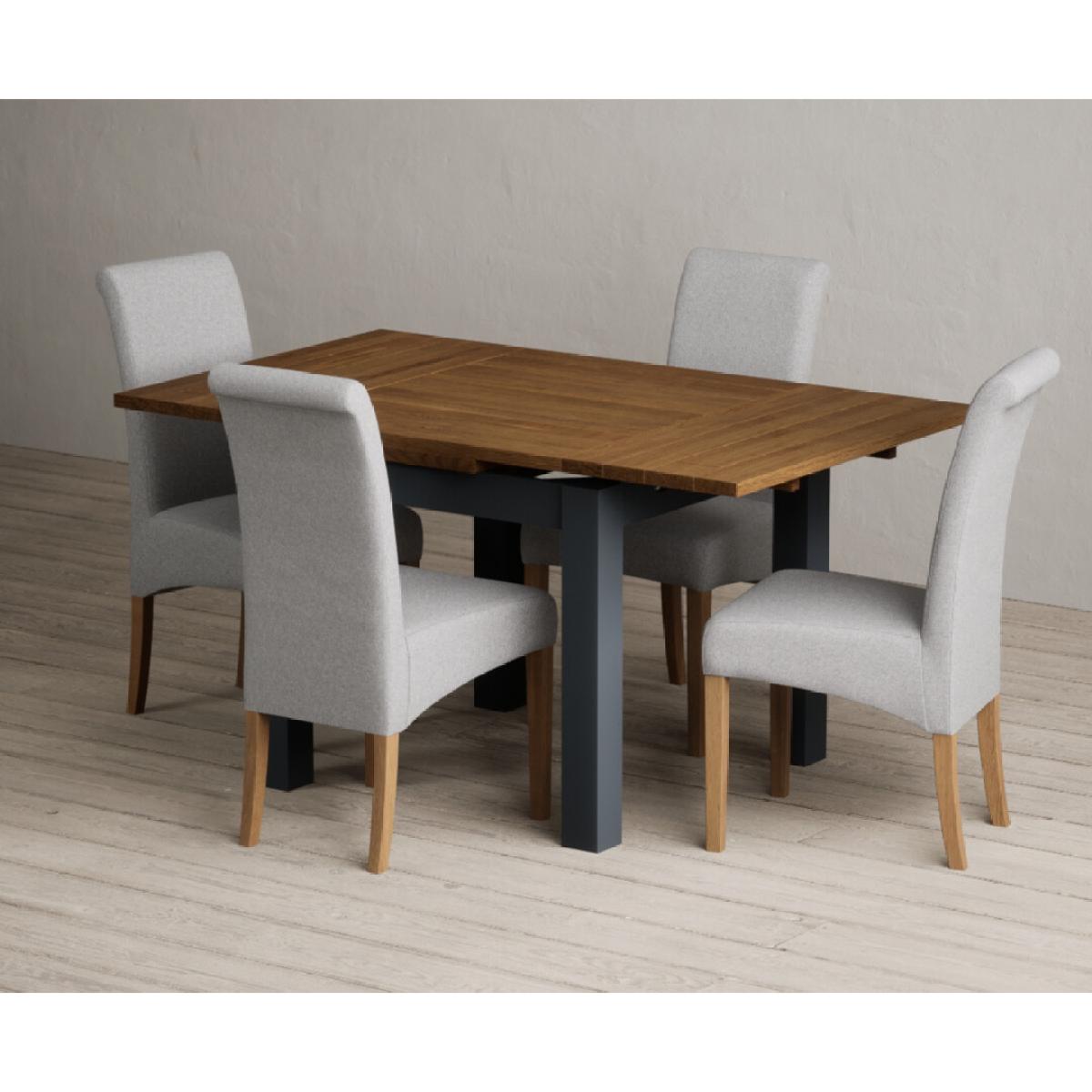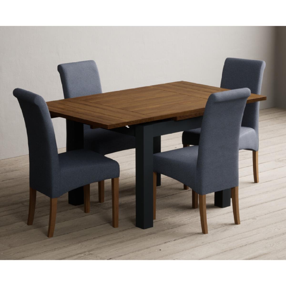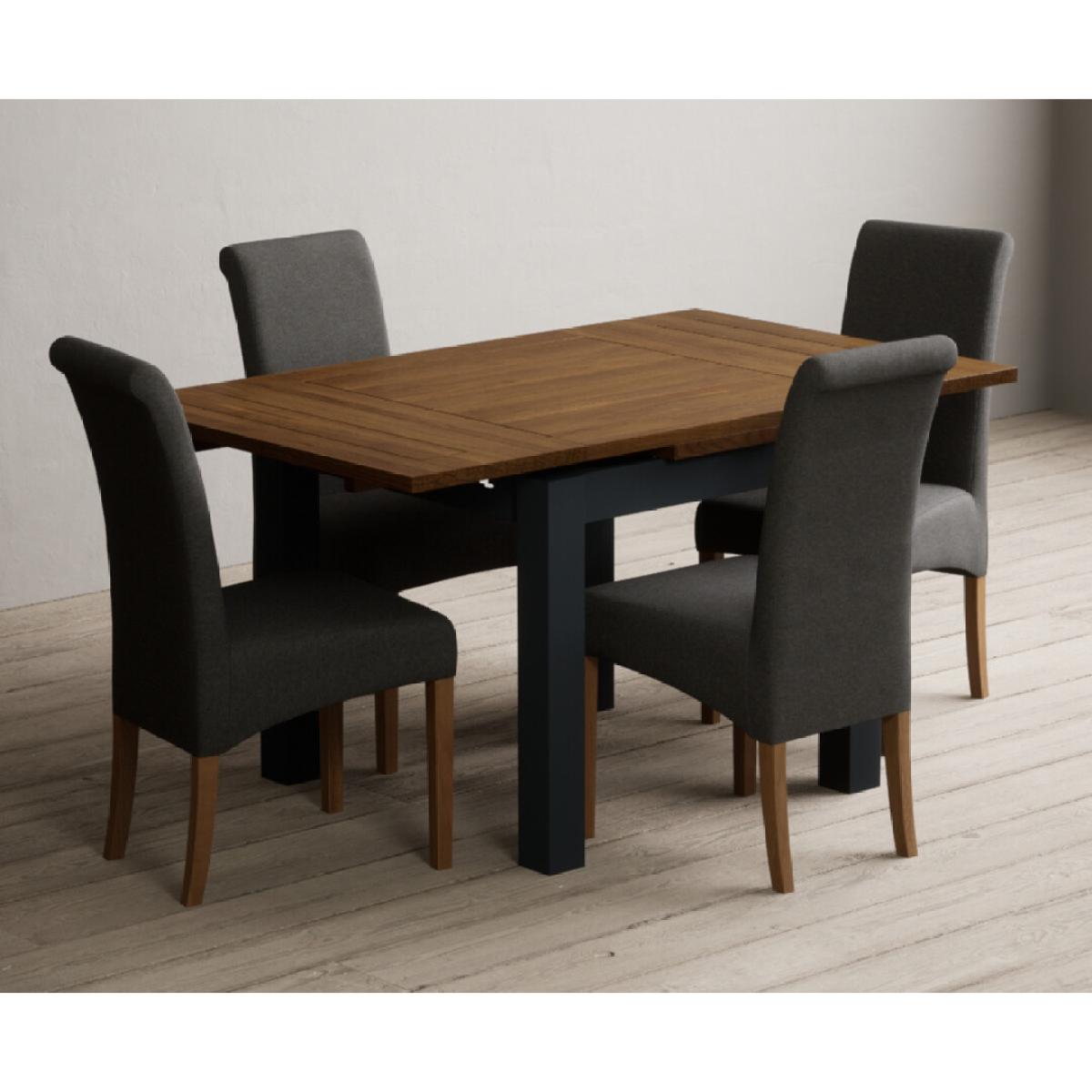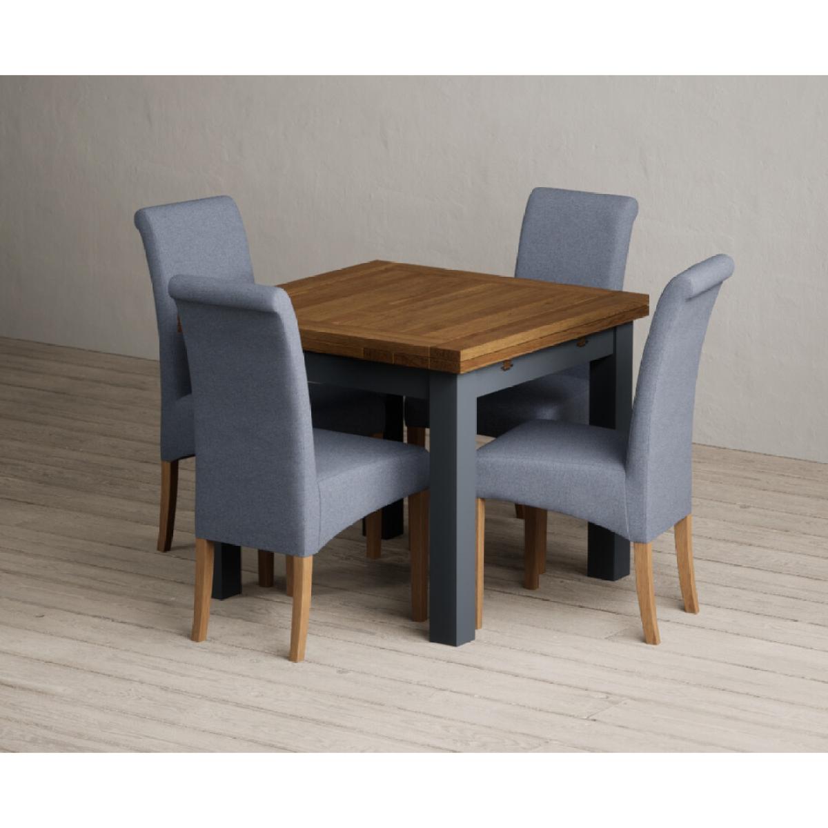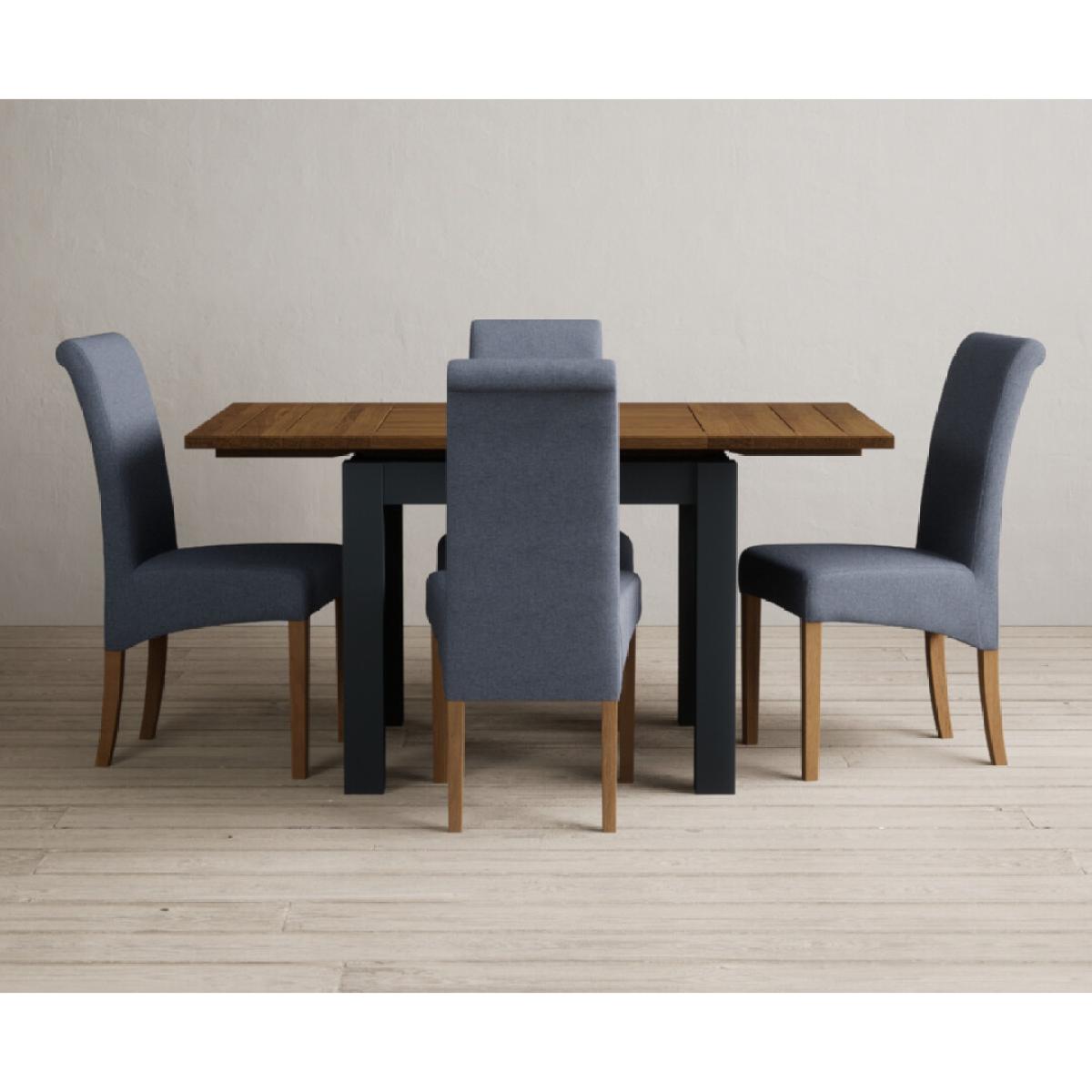 Extending Buxton 90cm Oak and Dark Blue Painted Dining Table with 4 Grey Scroll Back Chairs