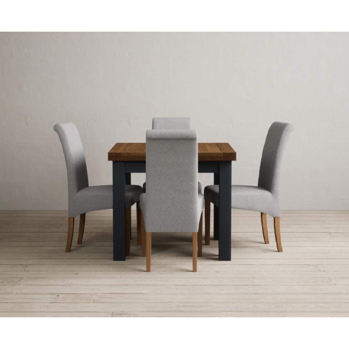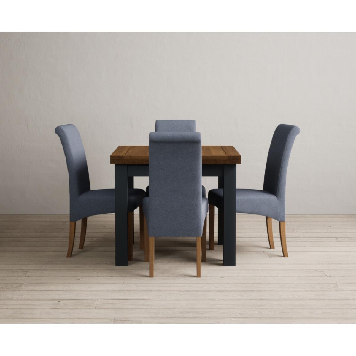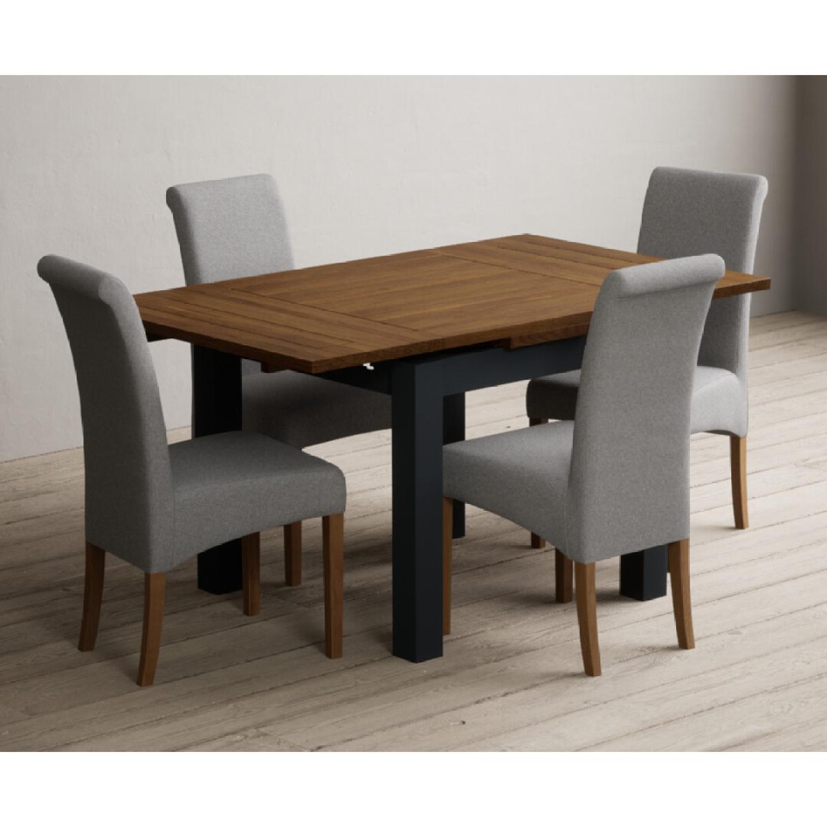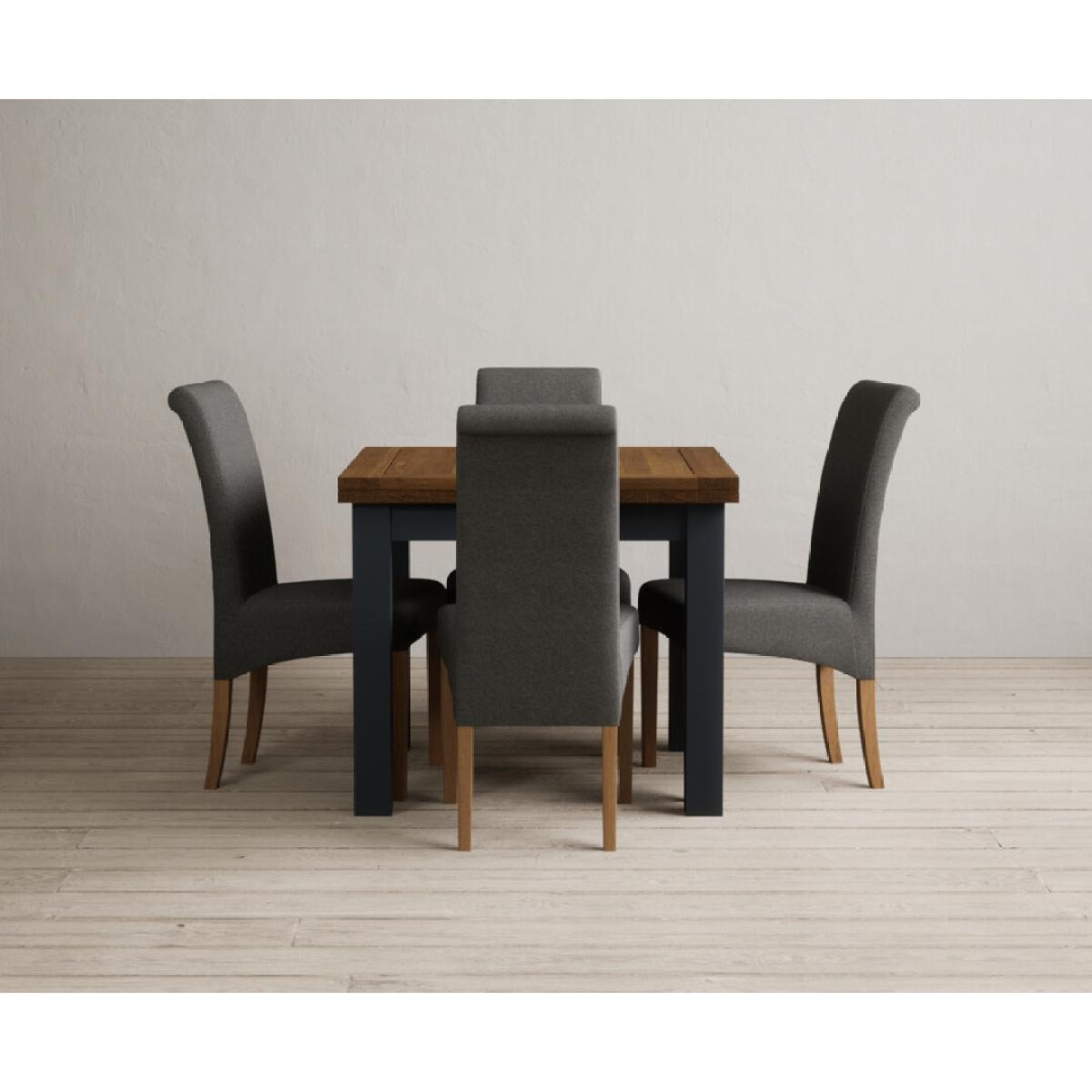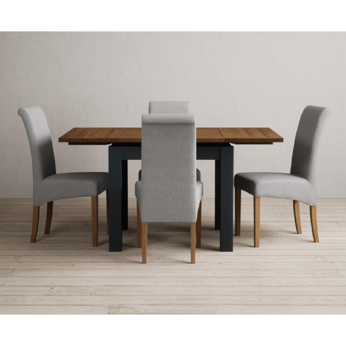 Extending Buxton 90cm Oak and Dark Blue Painted Dining Table with 4 Grey Scroll Back Chairs