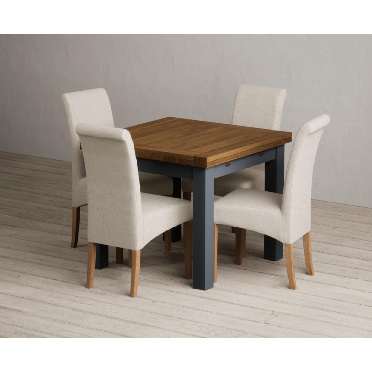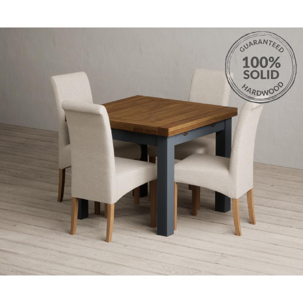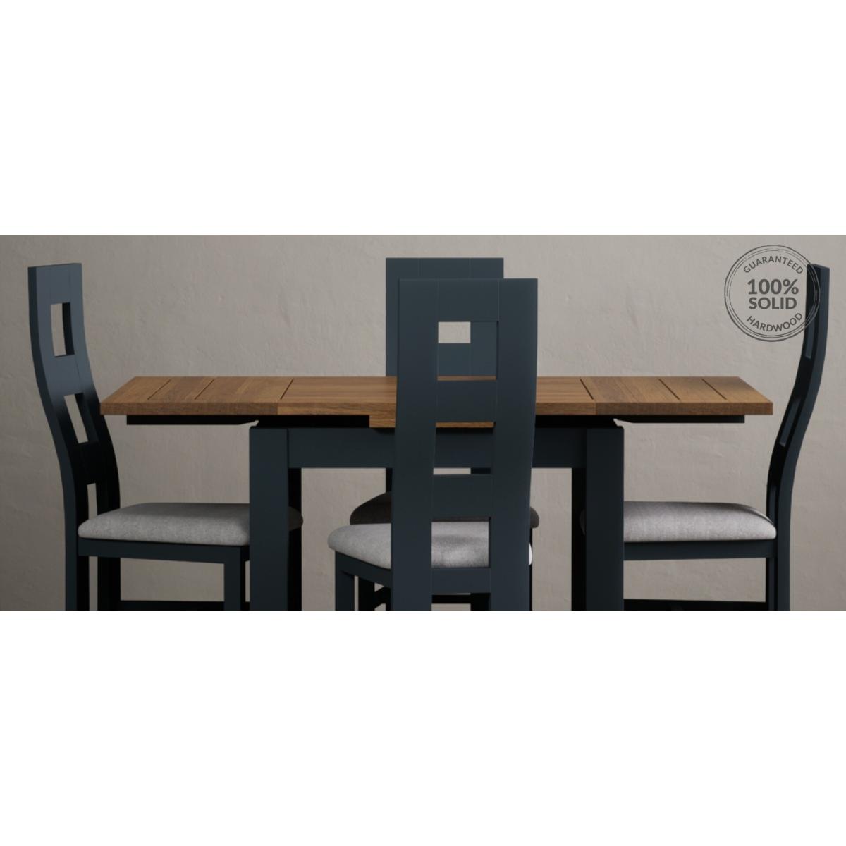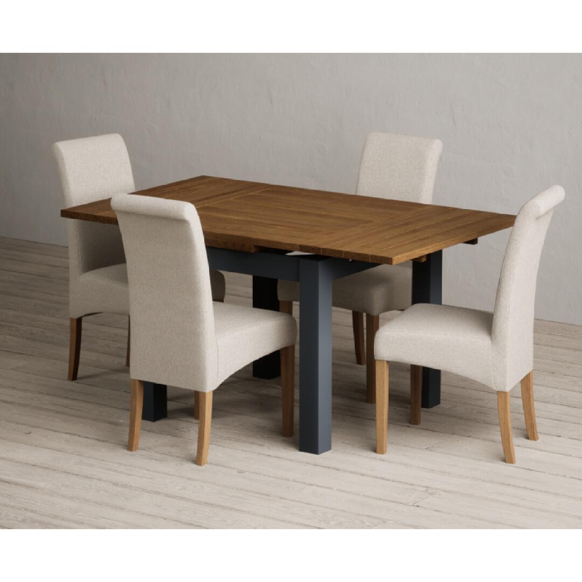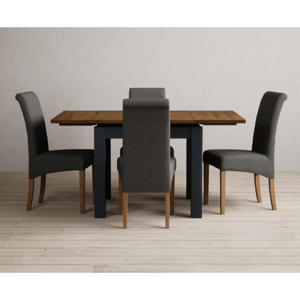 Extending Buxton 90cm Oak and Dark Blue Painted Dining Table with 4 Grey Scroll Back Chairs