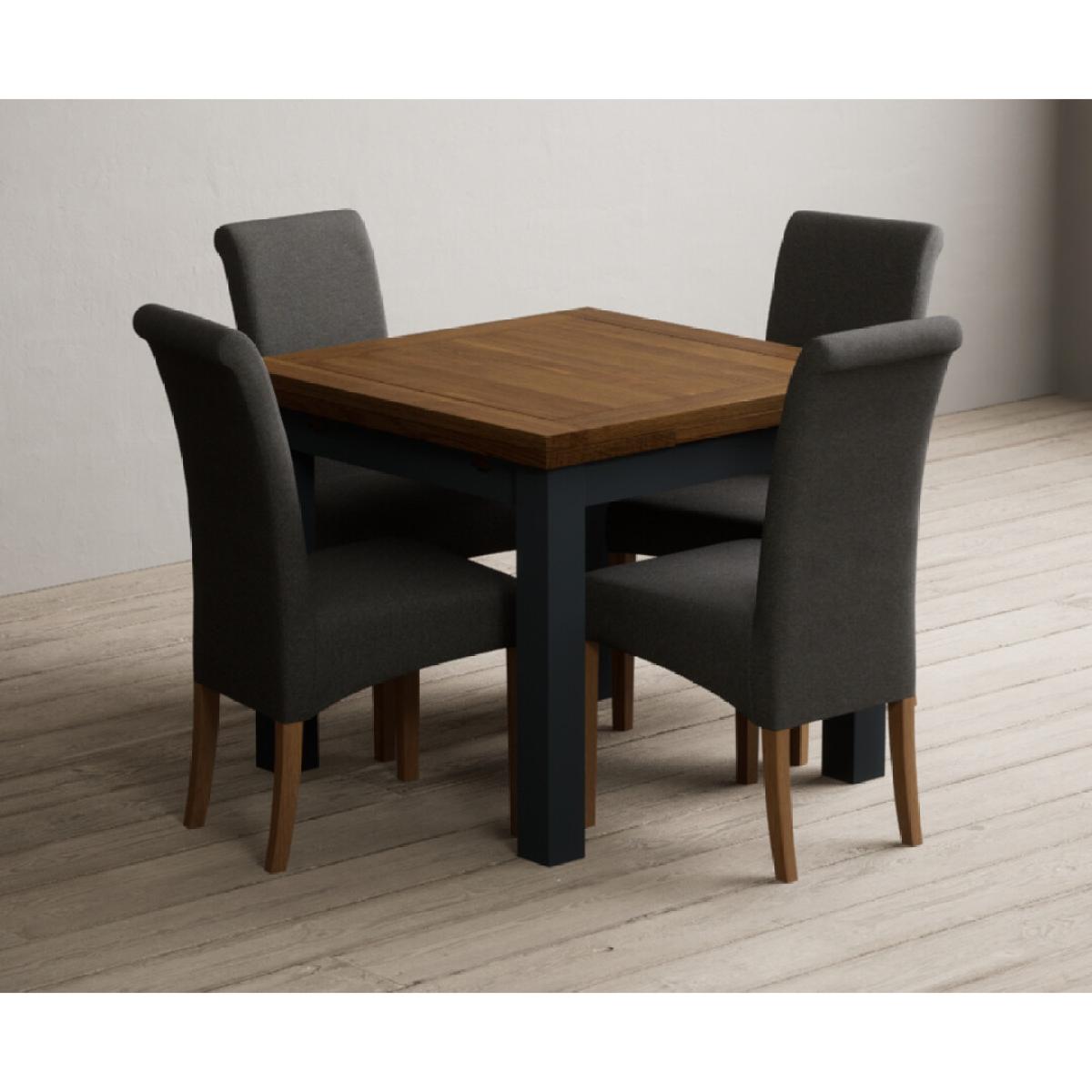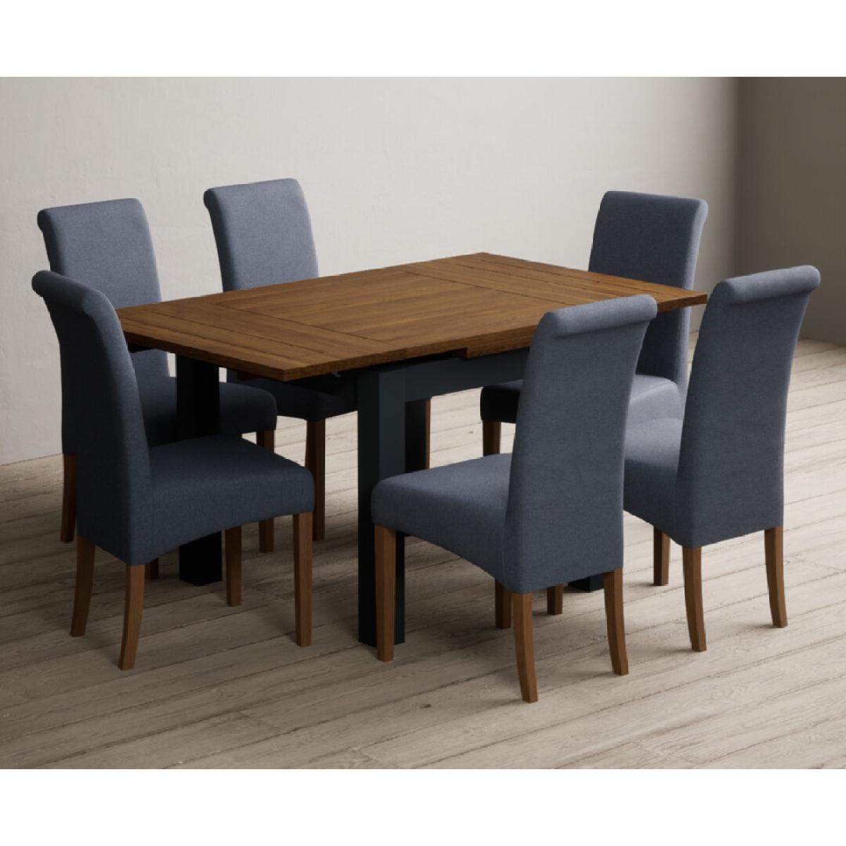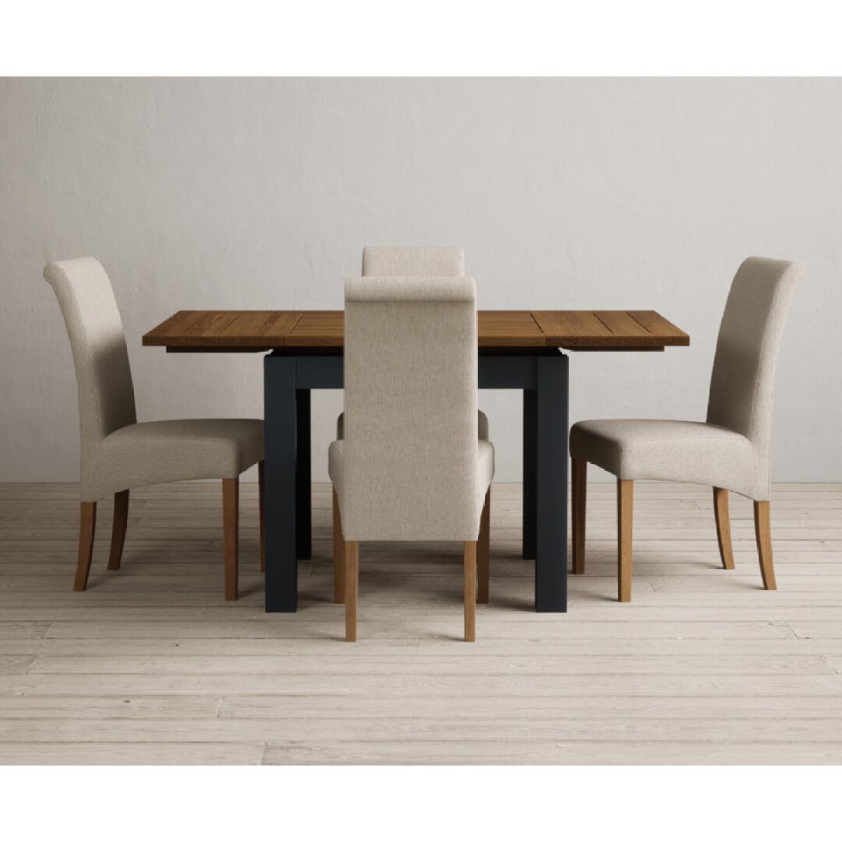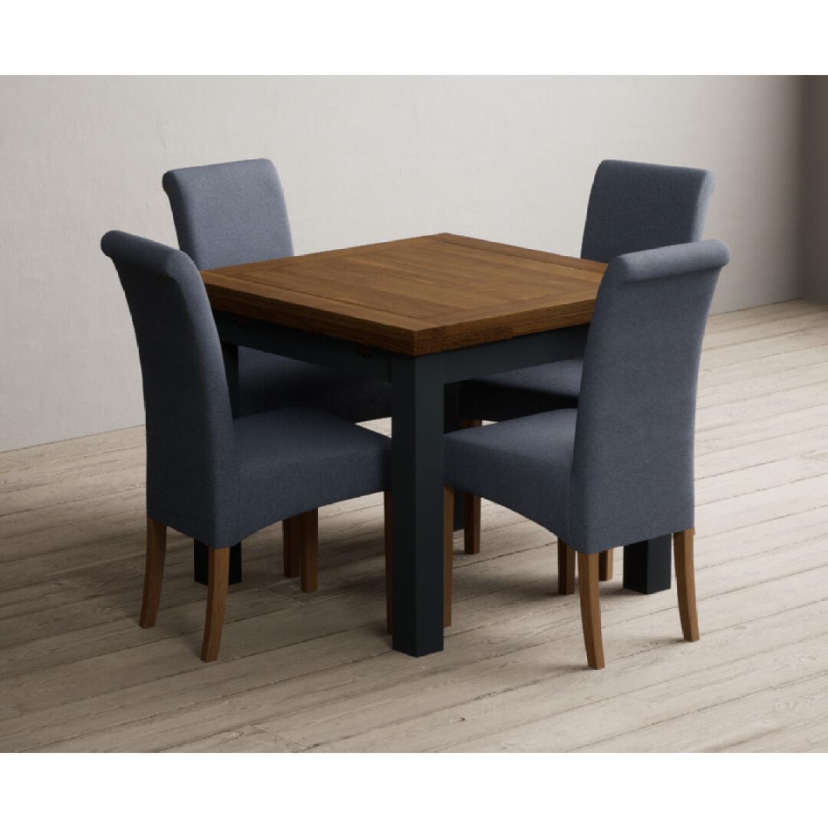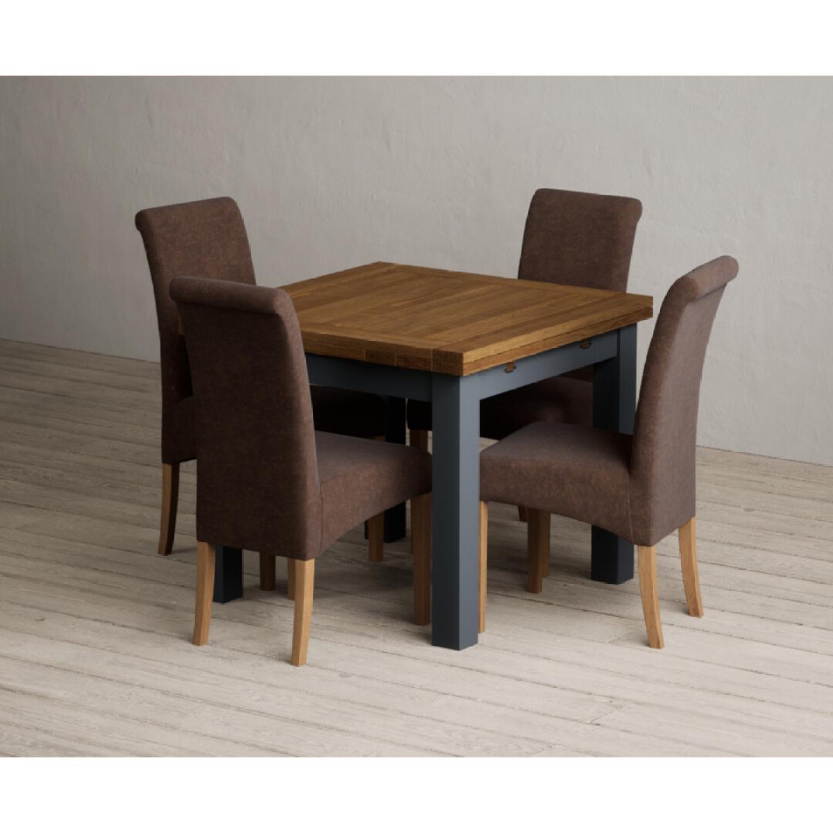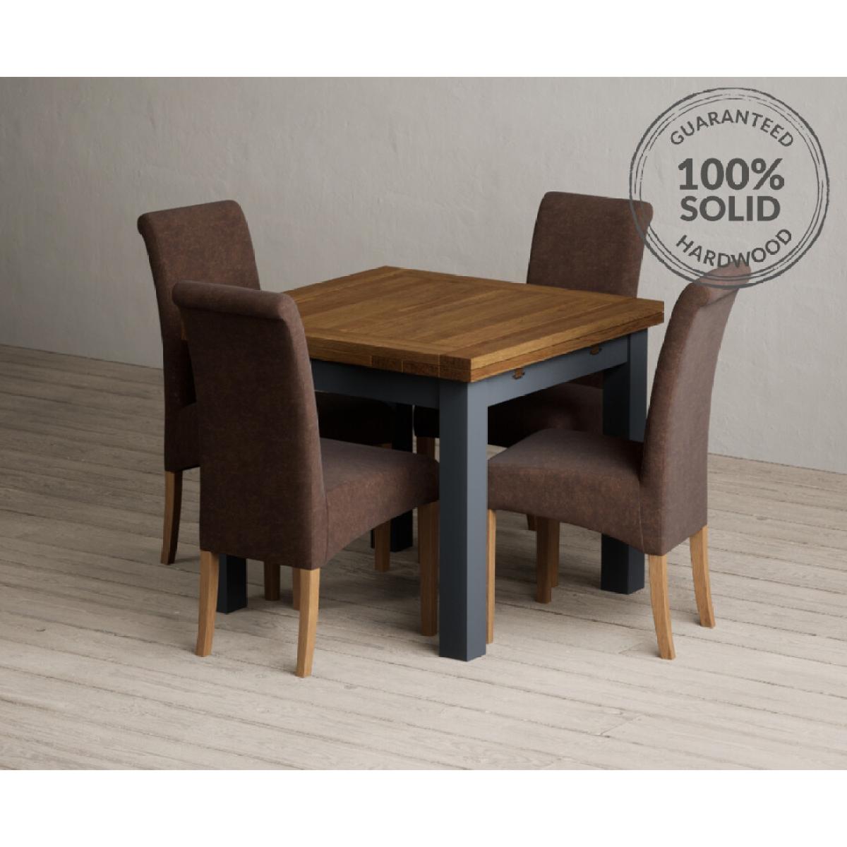 Extending Buxton 90cm Oak and Dark Blue Painted Dining Table with 4 Grey Scroll Back Chairs