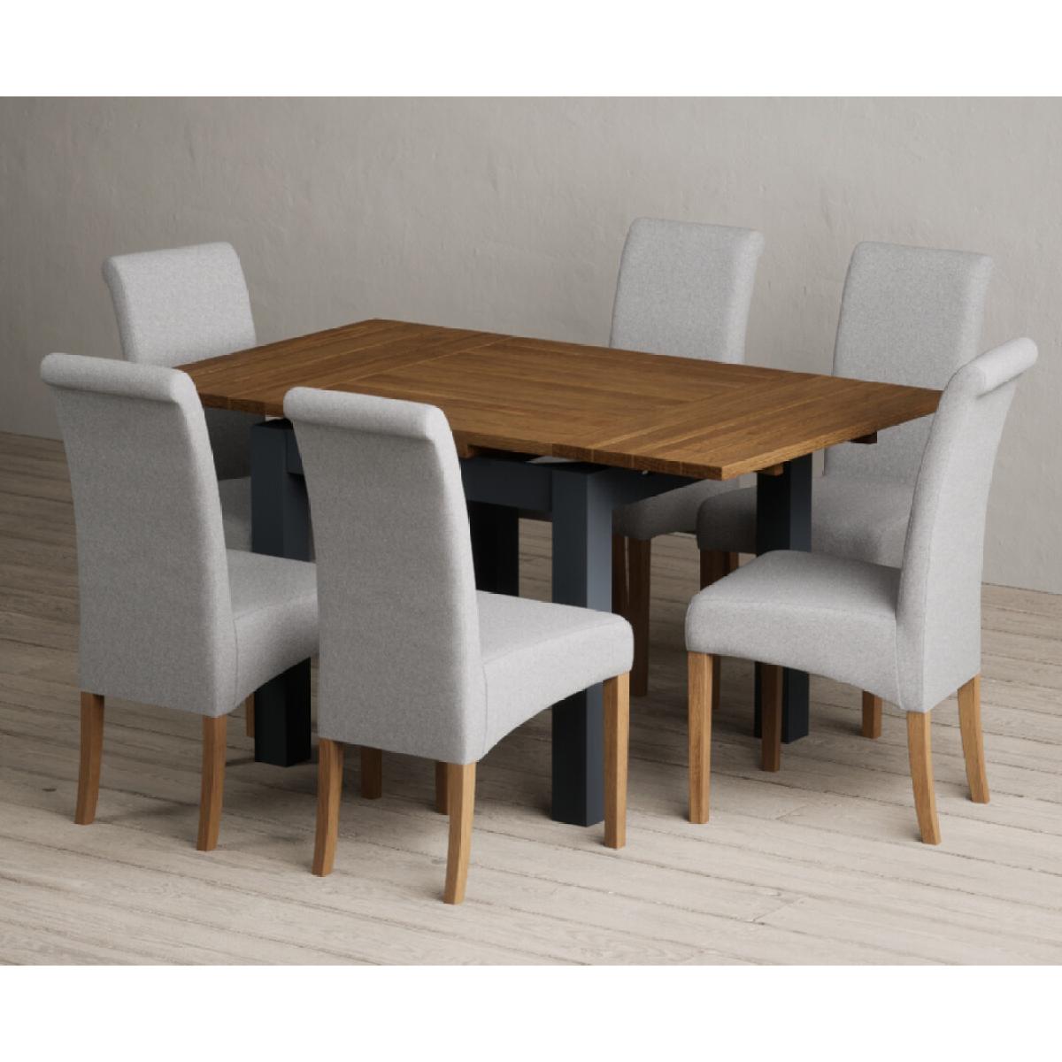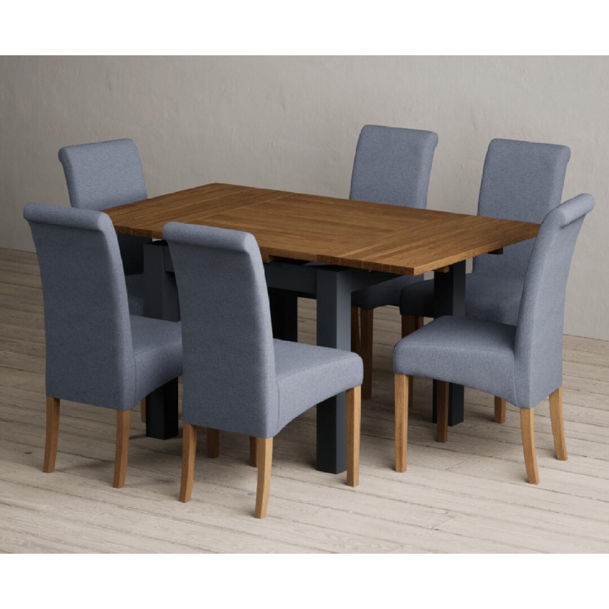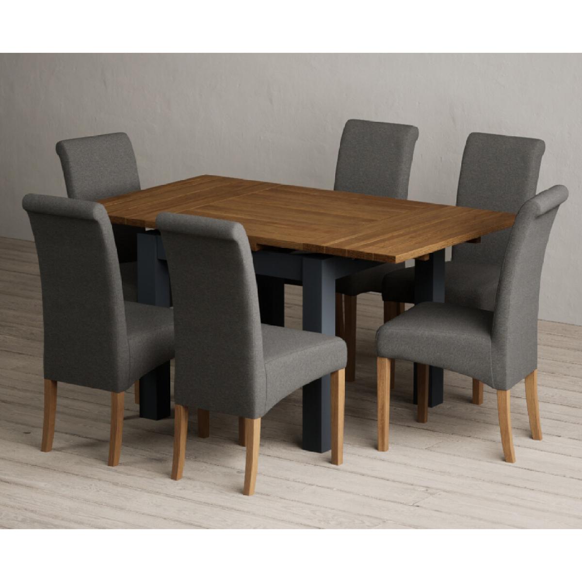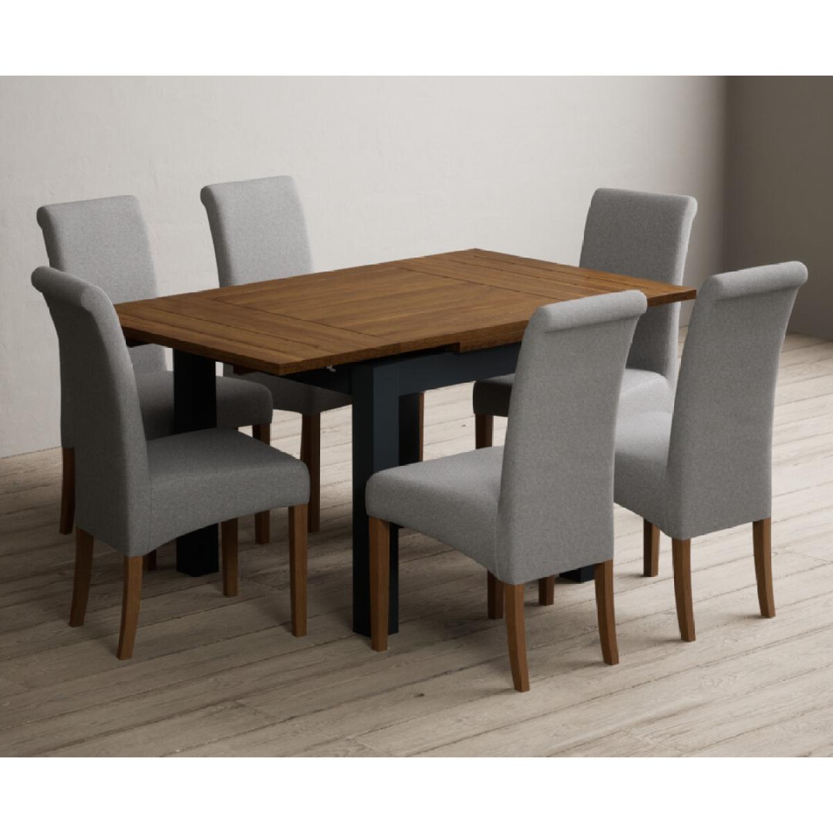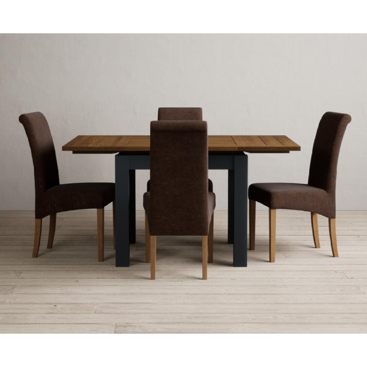 Extending Buxton 90cm Oak and Dark Blue Painted Dining Table with 4 Grey Scroll Back Chairs