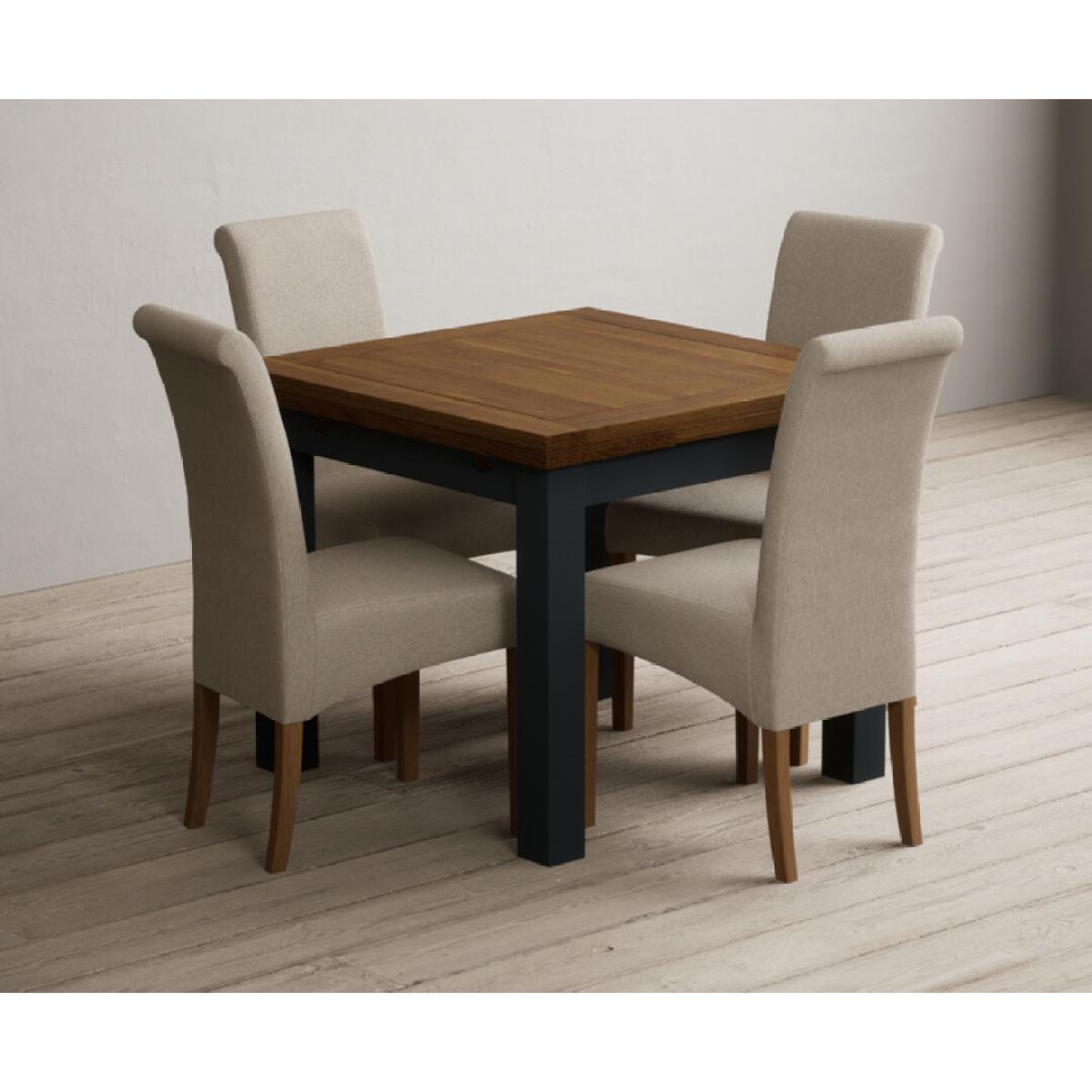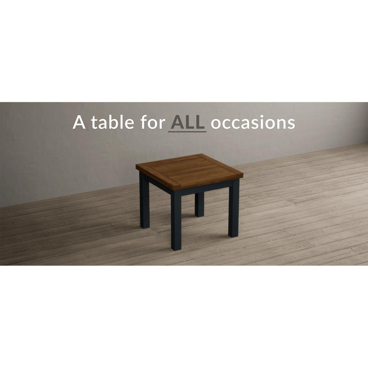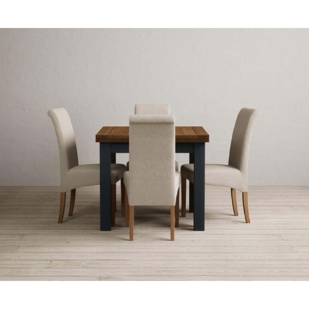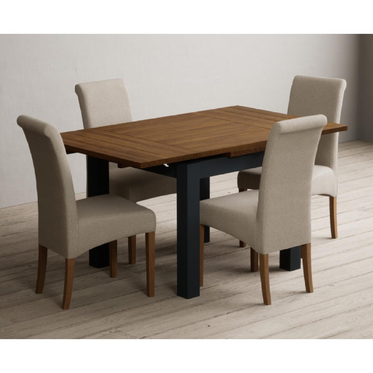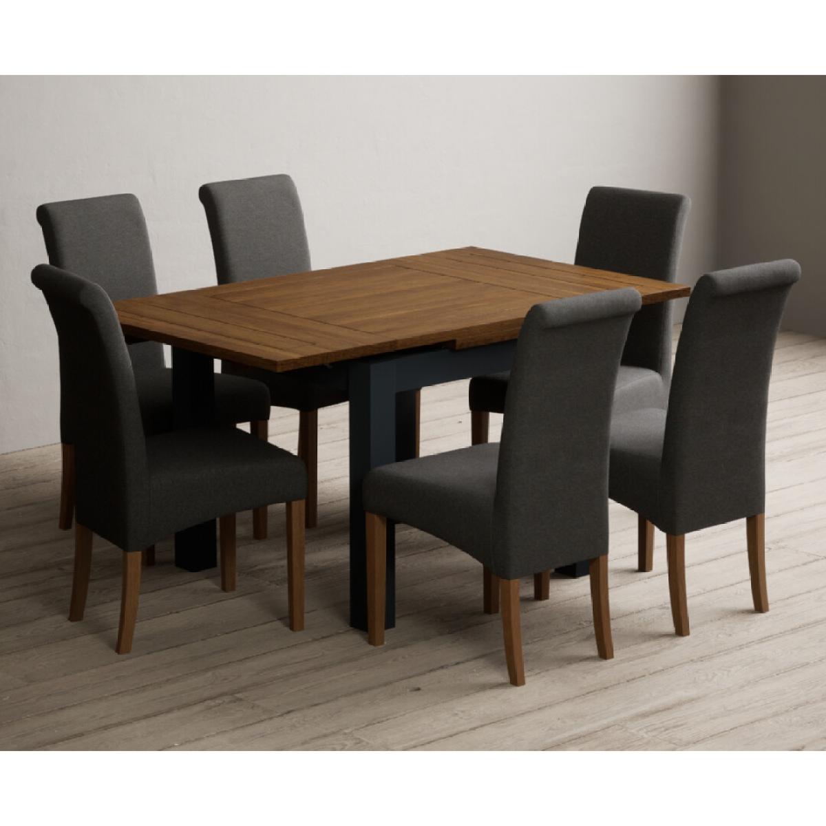 Extending Buxton 90cm Oak and Dark Blue Painted Dining Table with 4 Grey Scroll Back Chairs