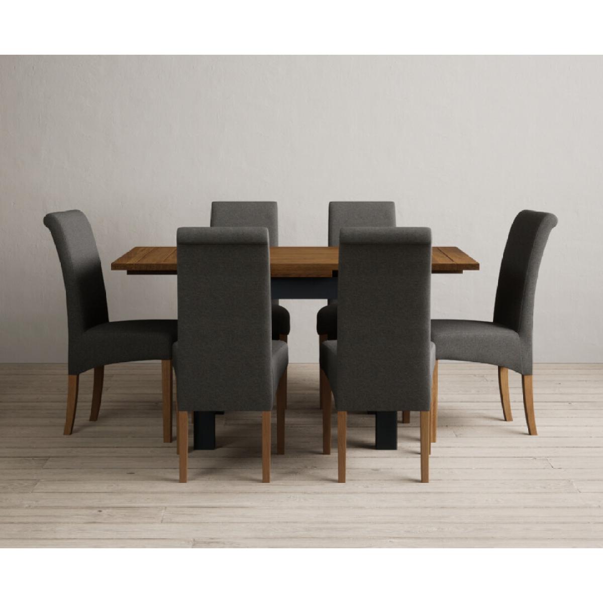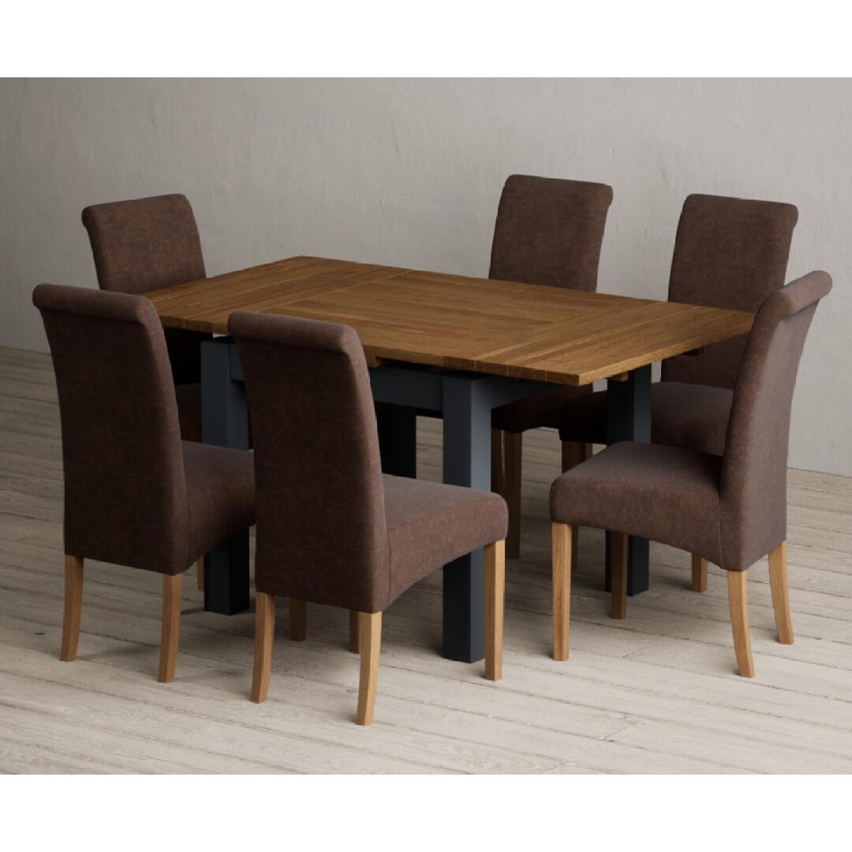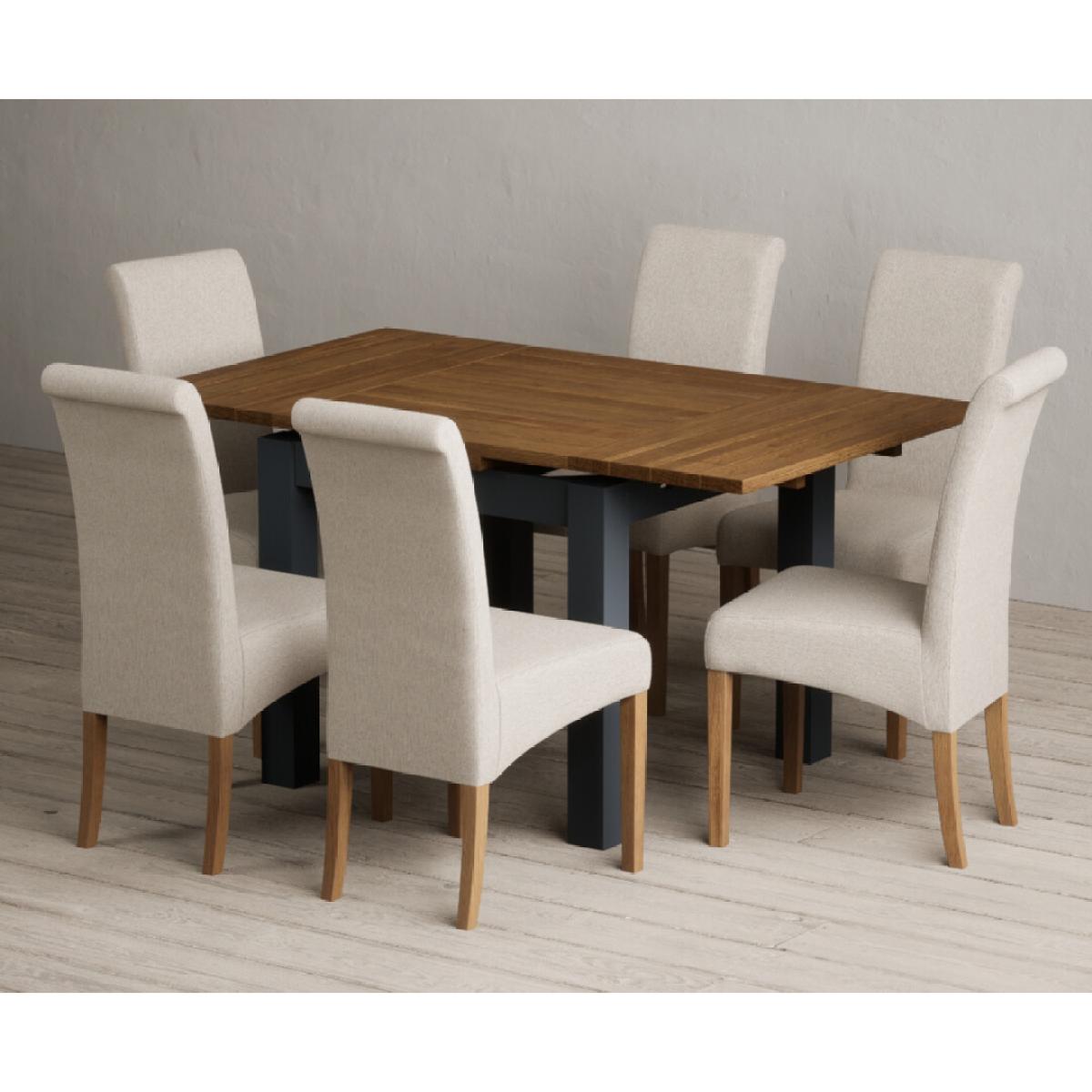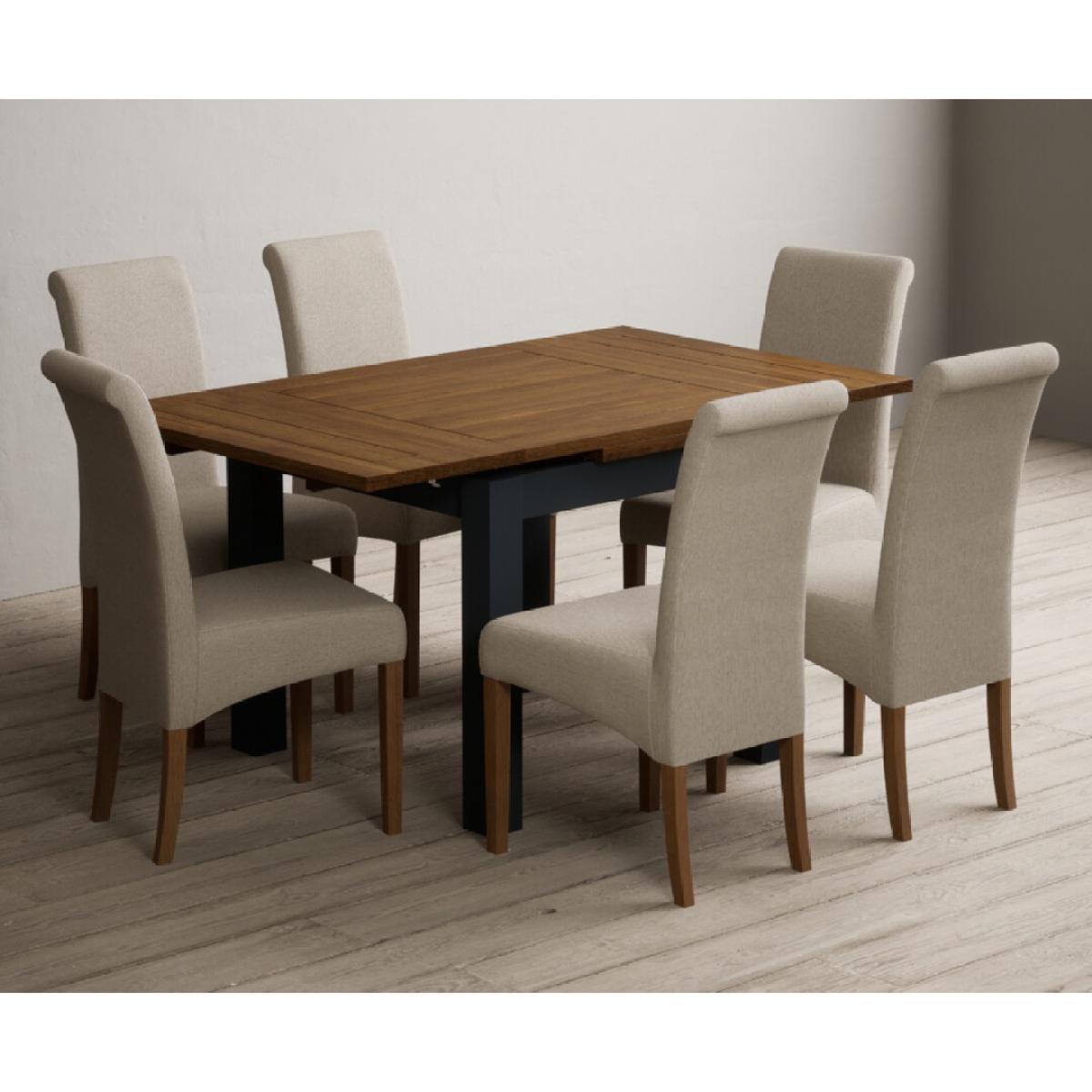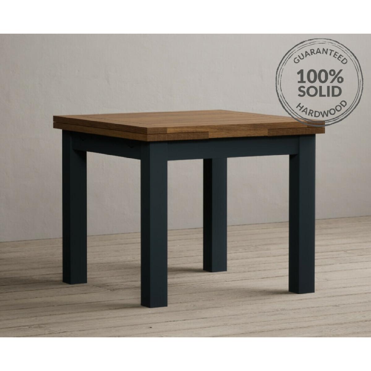 Extending Buxton 90cm Oak and Dark Blue Painted Dining Table with 4 Grey Scroll Back Chairs