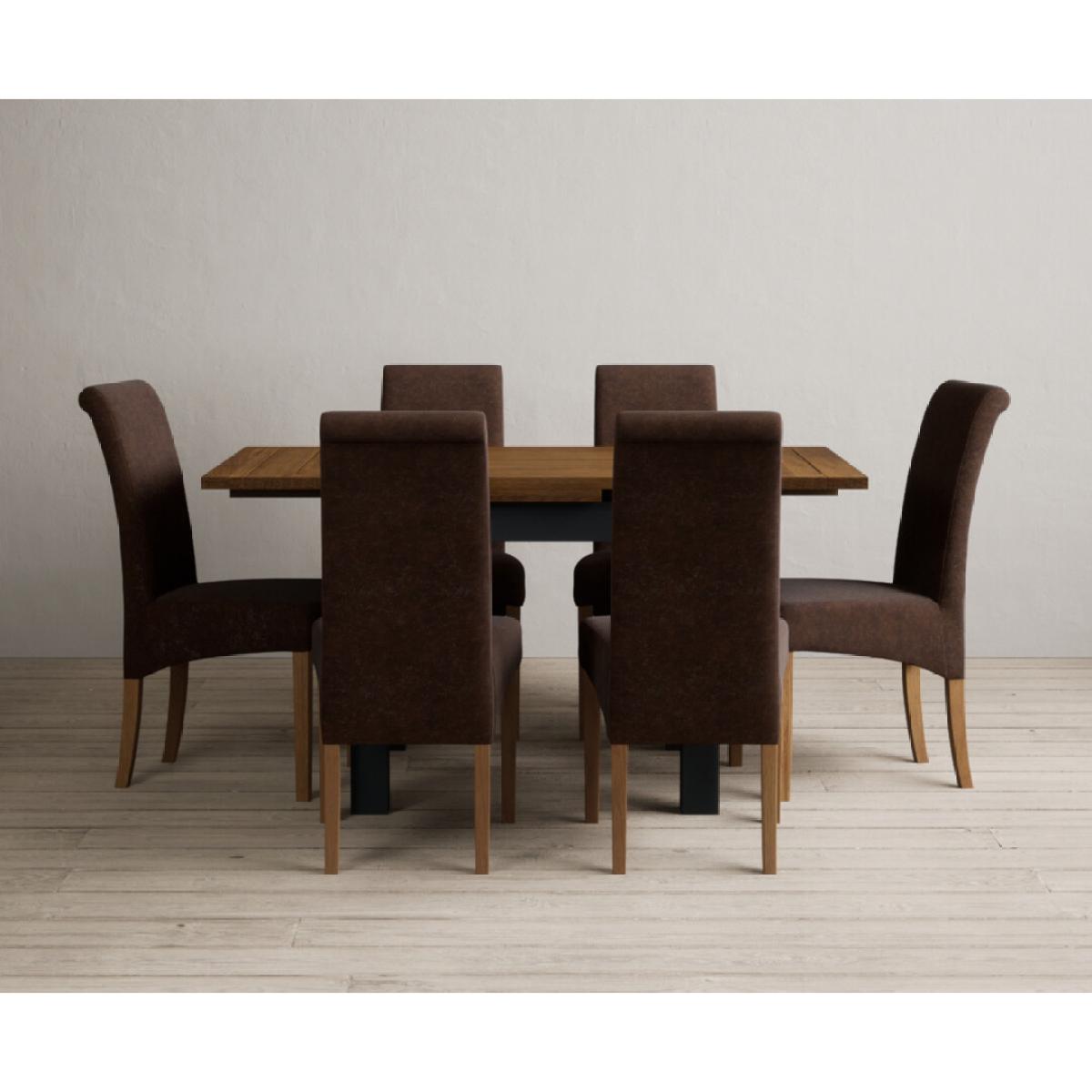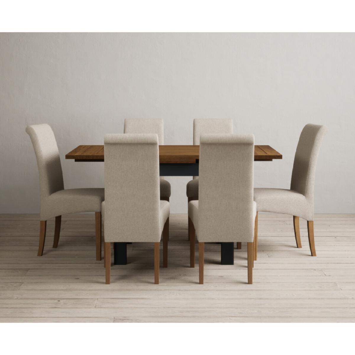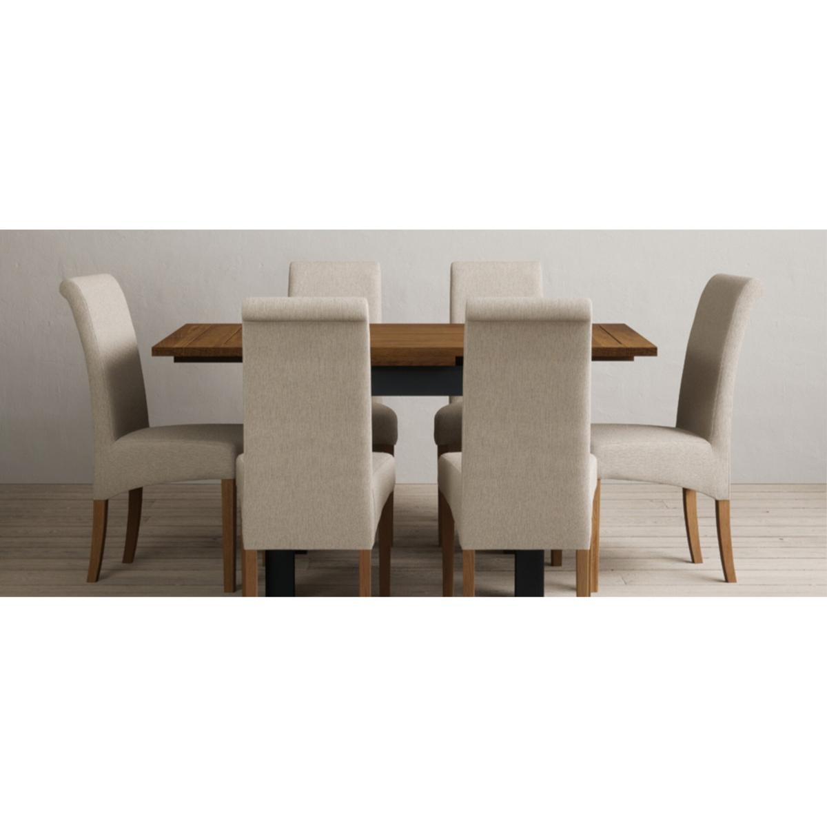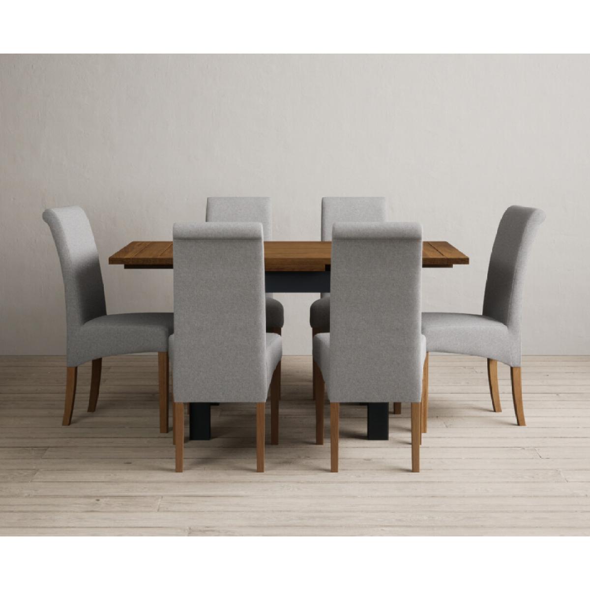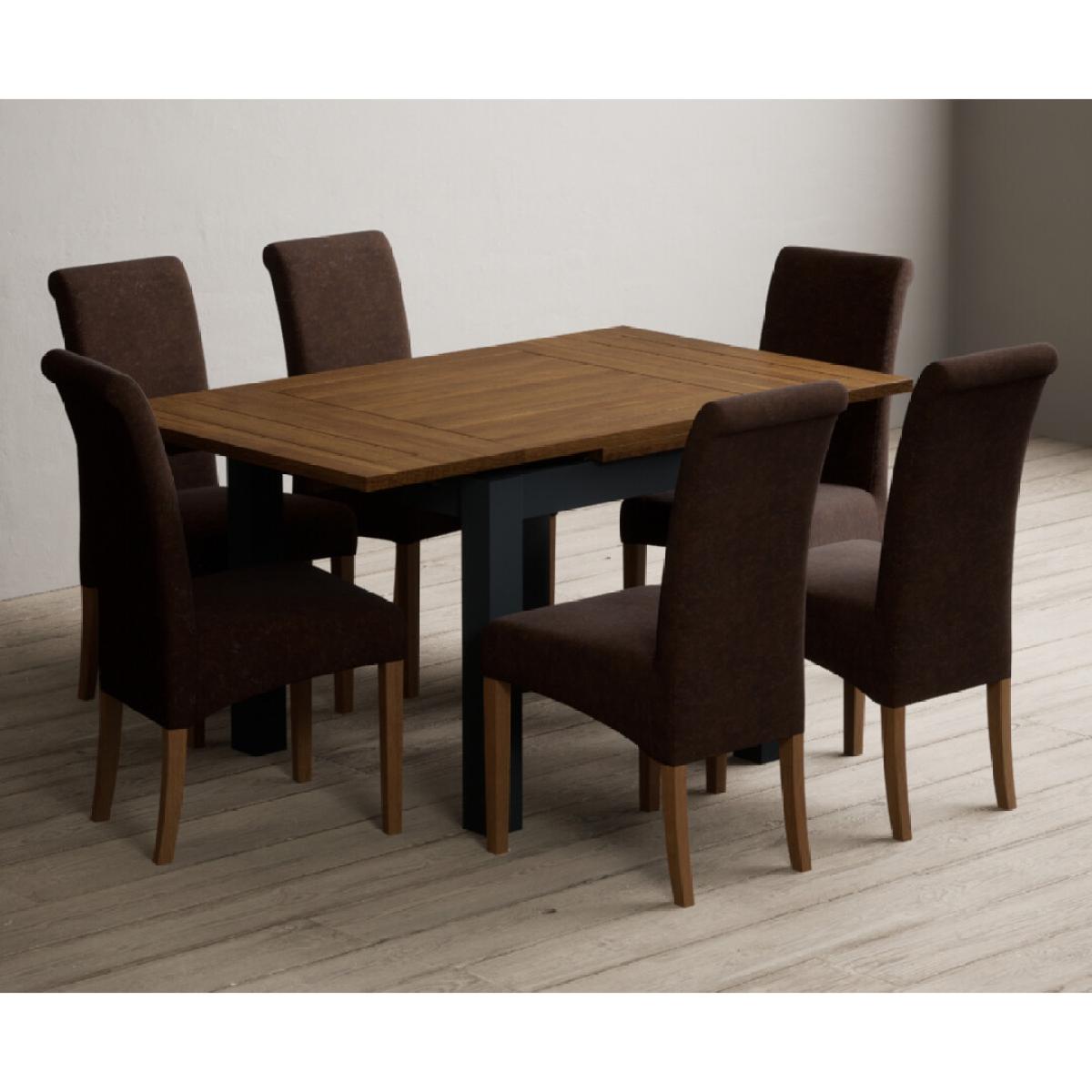 Extending Buxton 90cm Oak and Dark Blue Painted Dining Table with 4 Grey Scroll Back Chairs