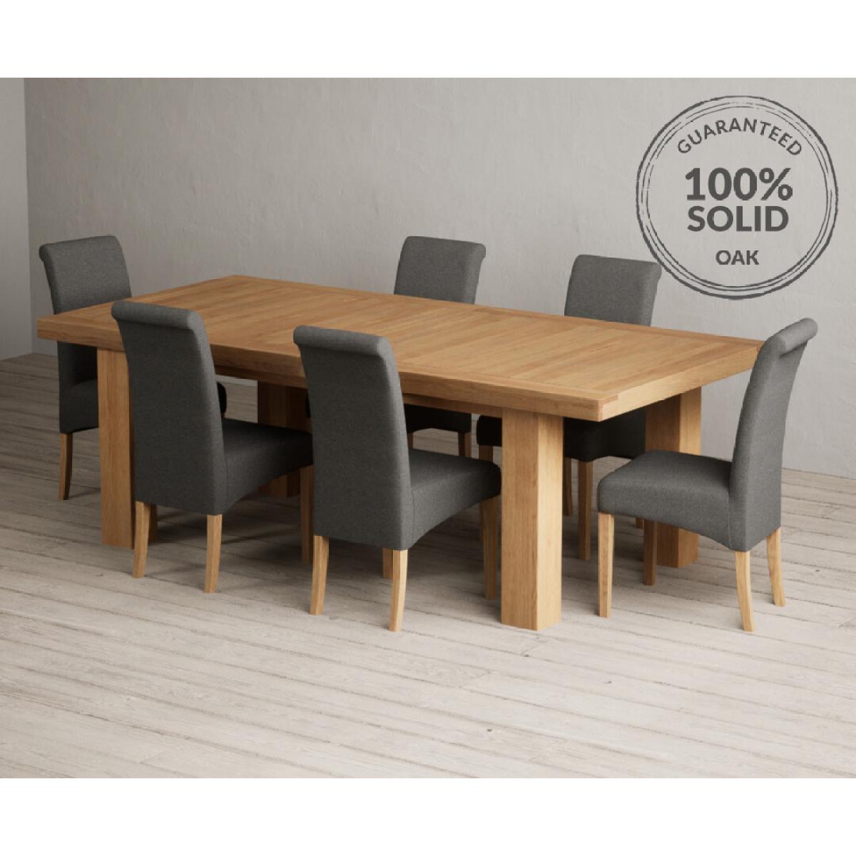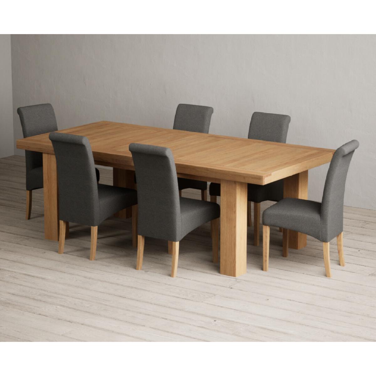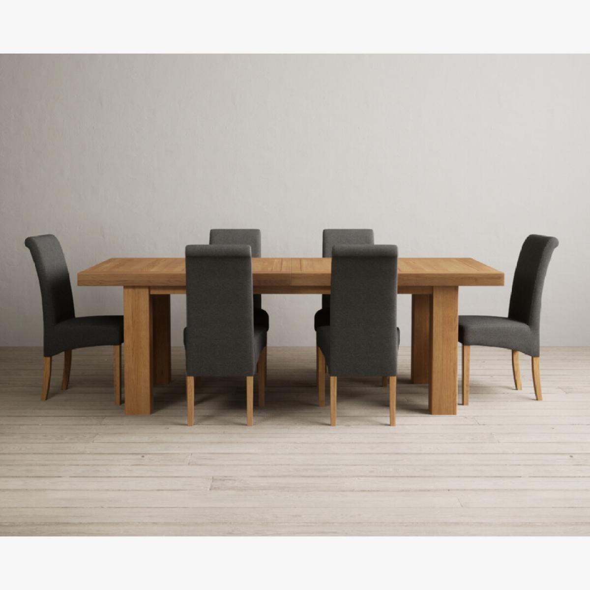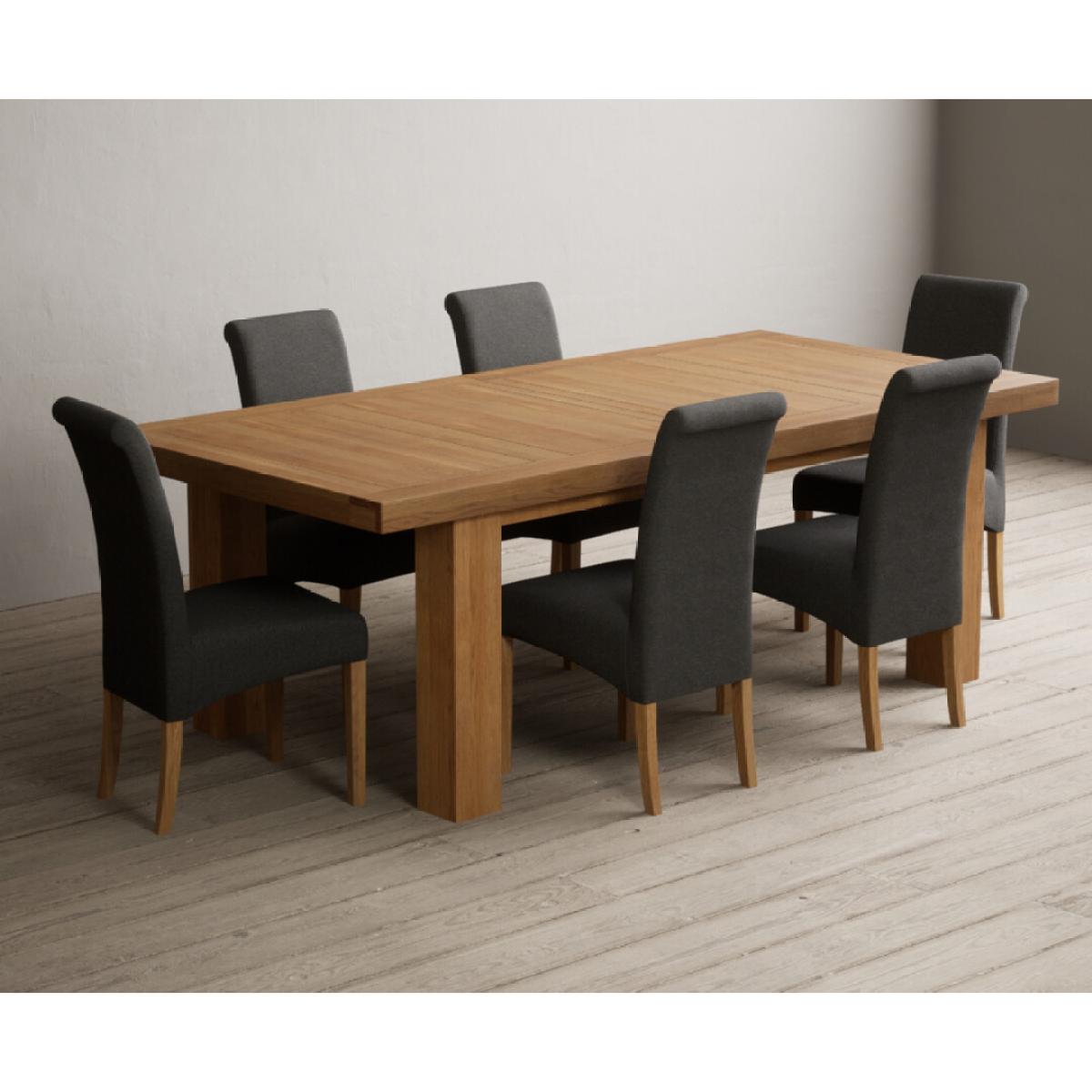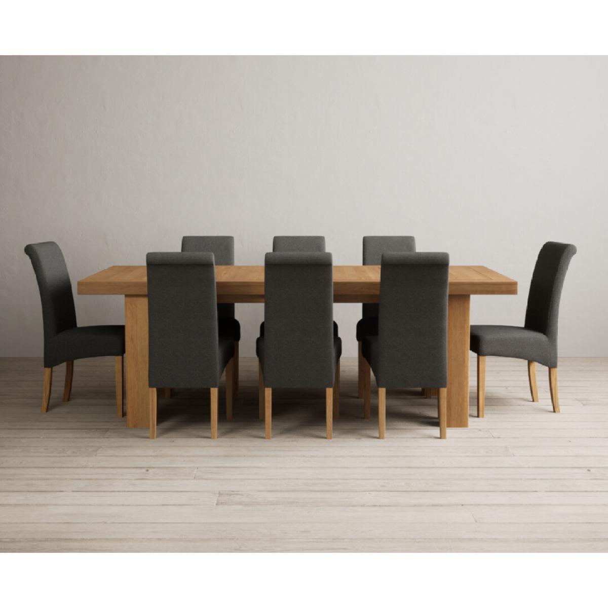 Extending Callington 230cm Oak Dining Table with 6 Charcoal Grey Scroll Back Chairs