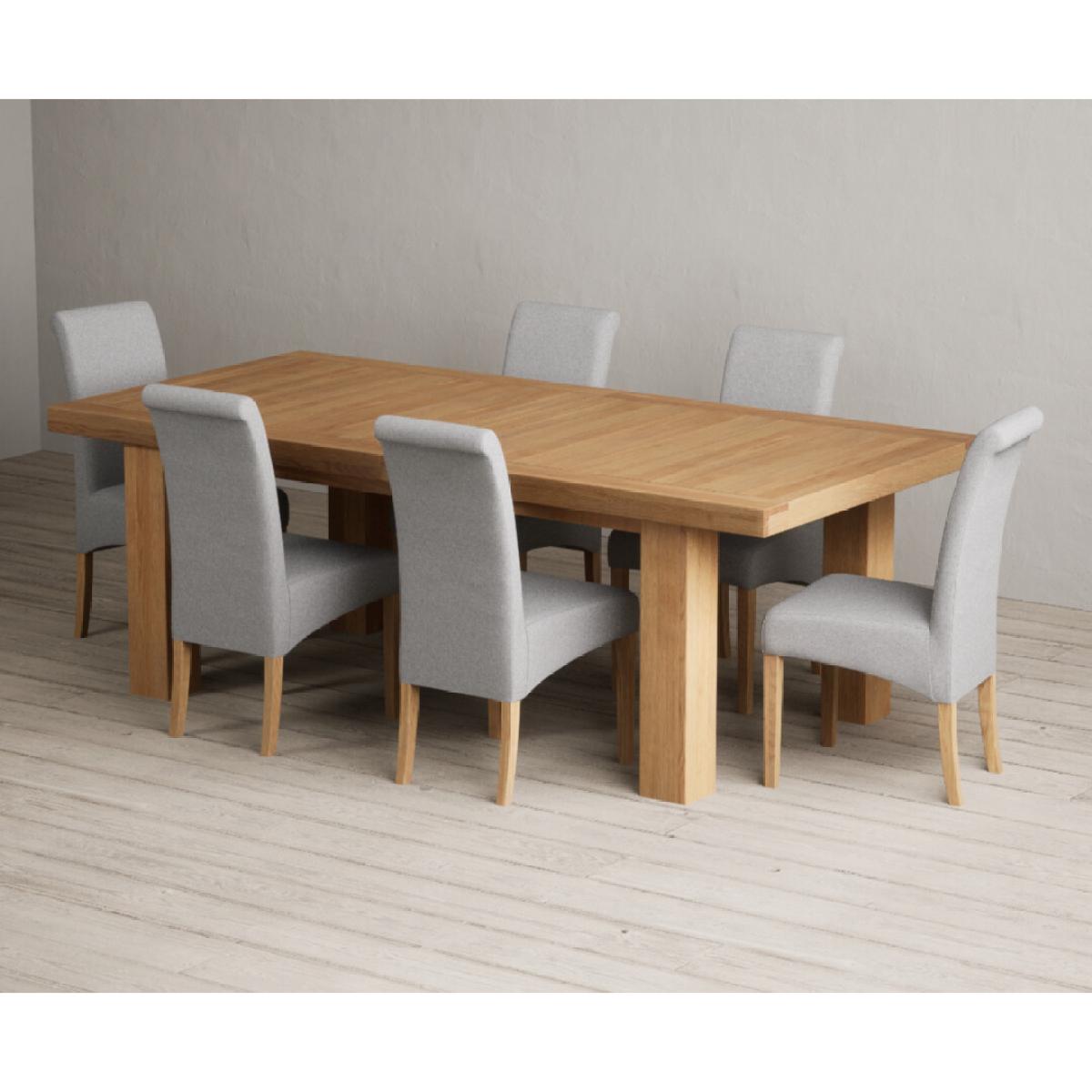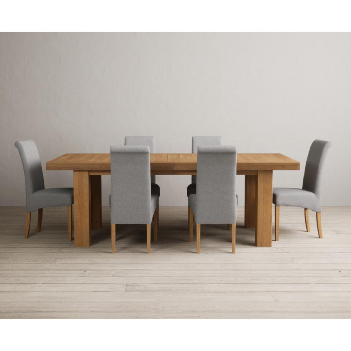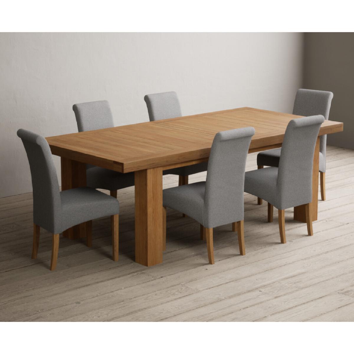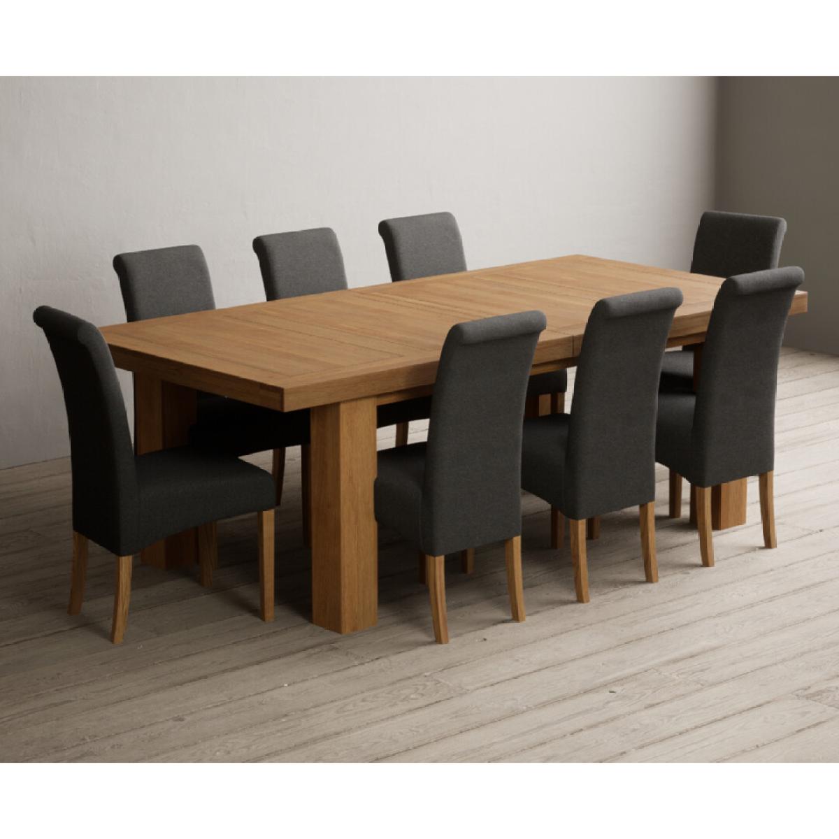 Extending Callington 230cm Oak Dining Table with 6 Charcoal Grey Scroll Back Chairs