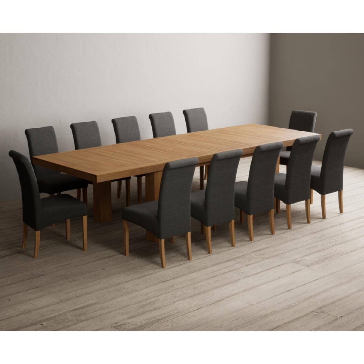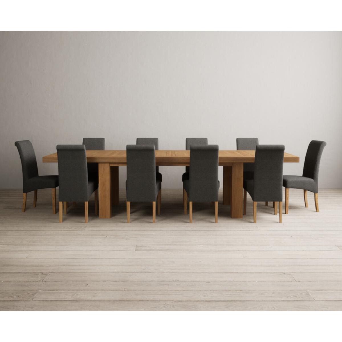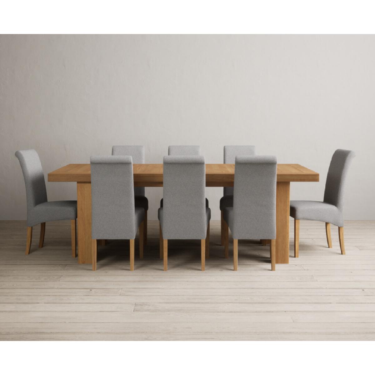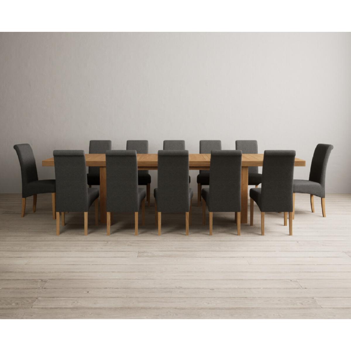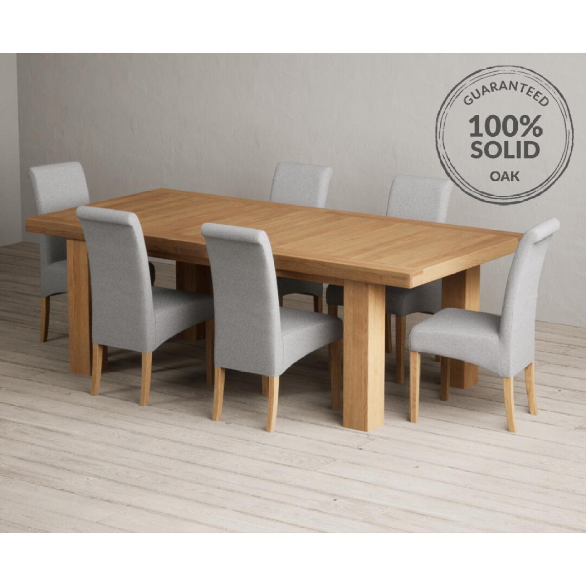 Extending Callington 230cm Oak Dining Table with 6 Charcoal Grey Scroll Back Chairs