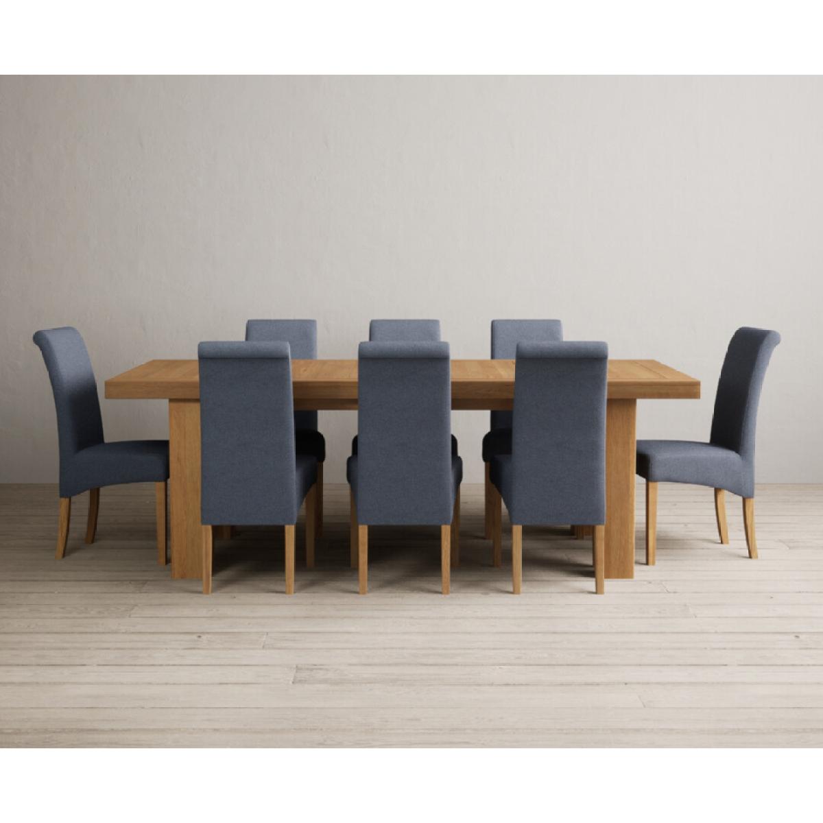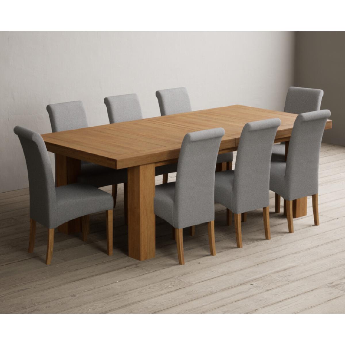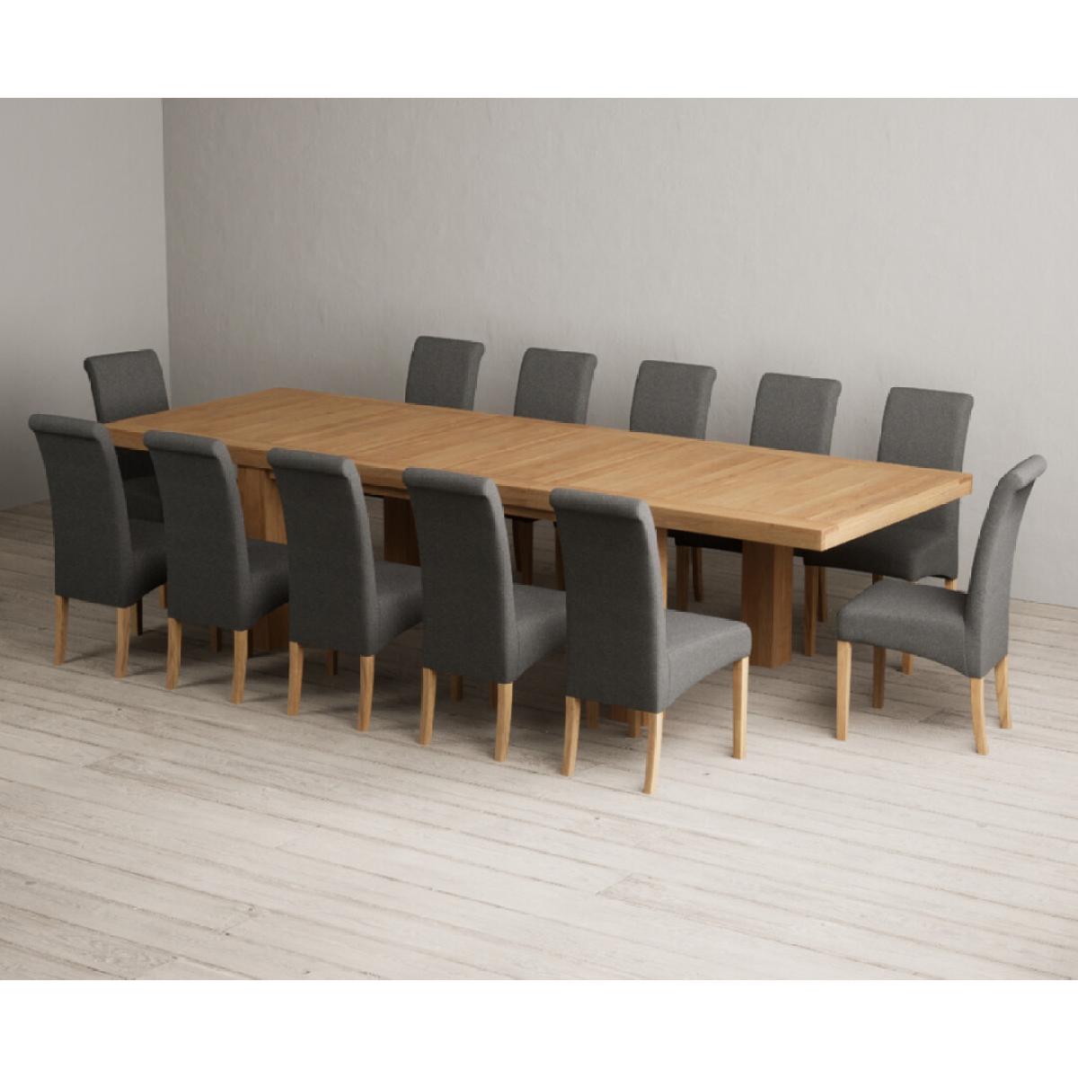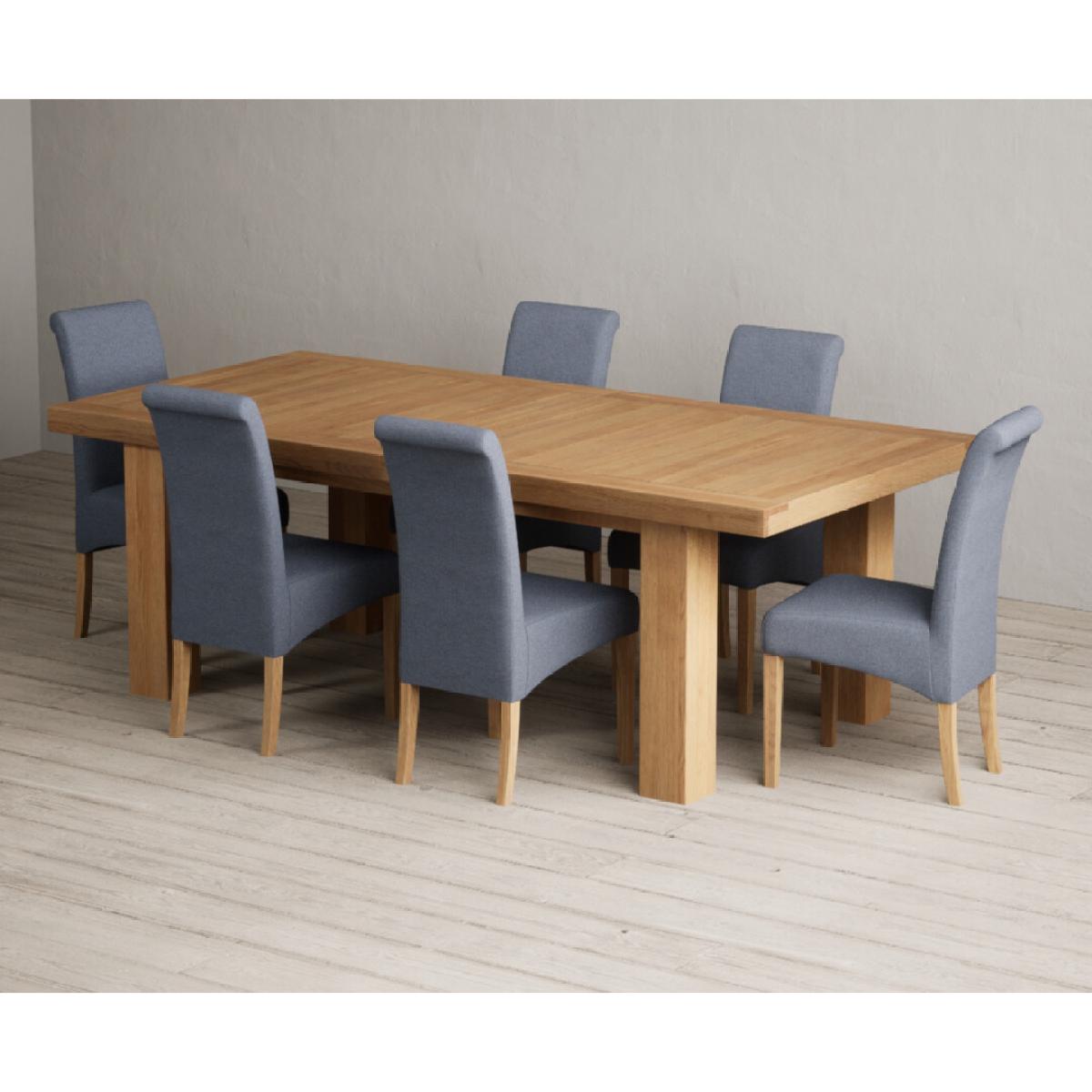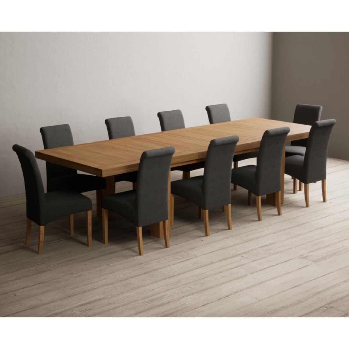 Extending Callington 230cm Oak Dining Table with 6 Charcoal Grey Scroll Back Chairs