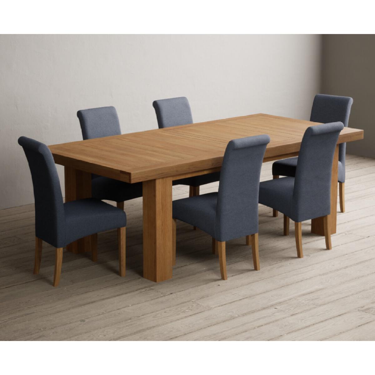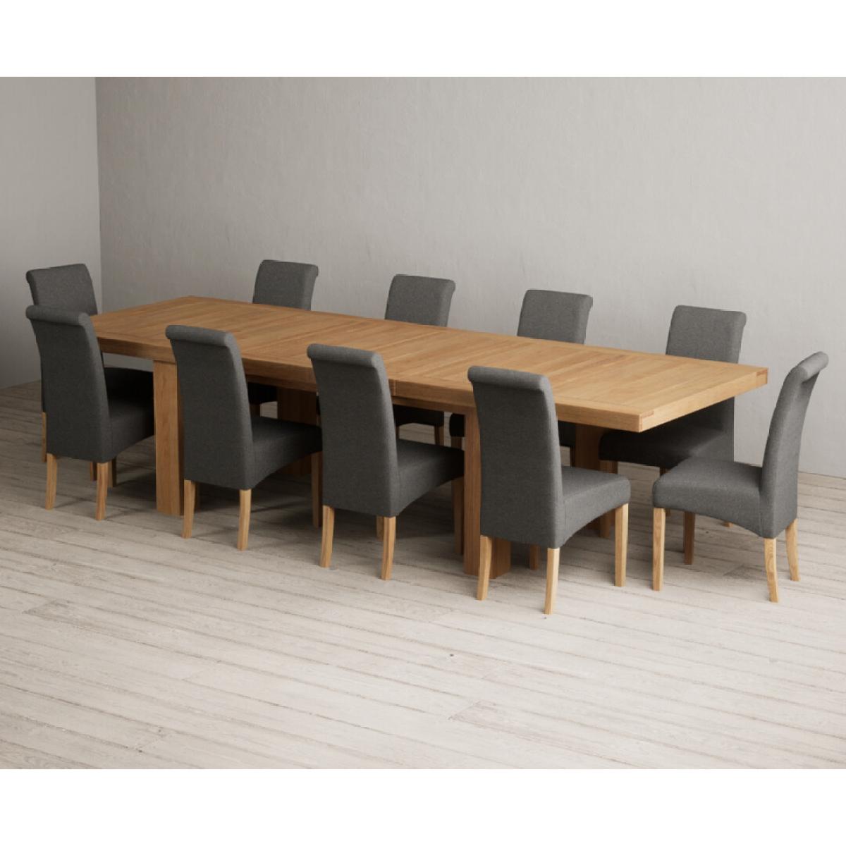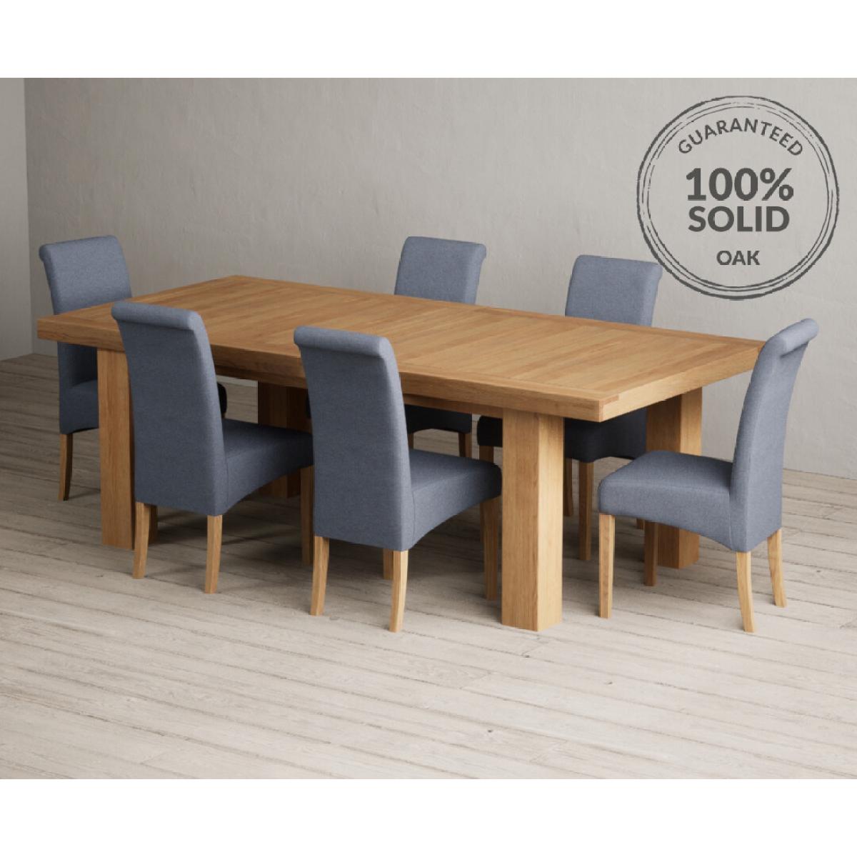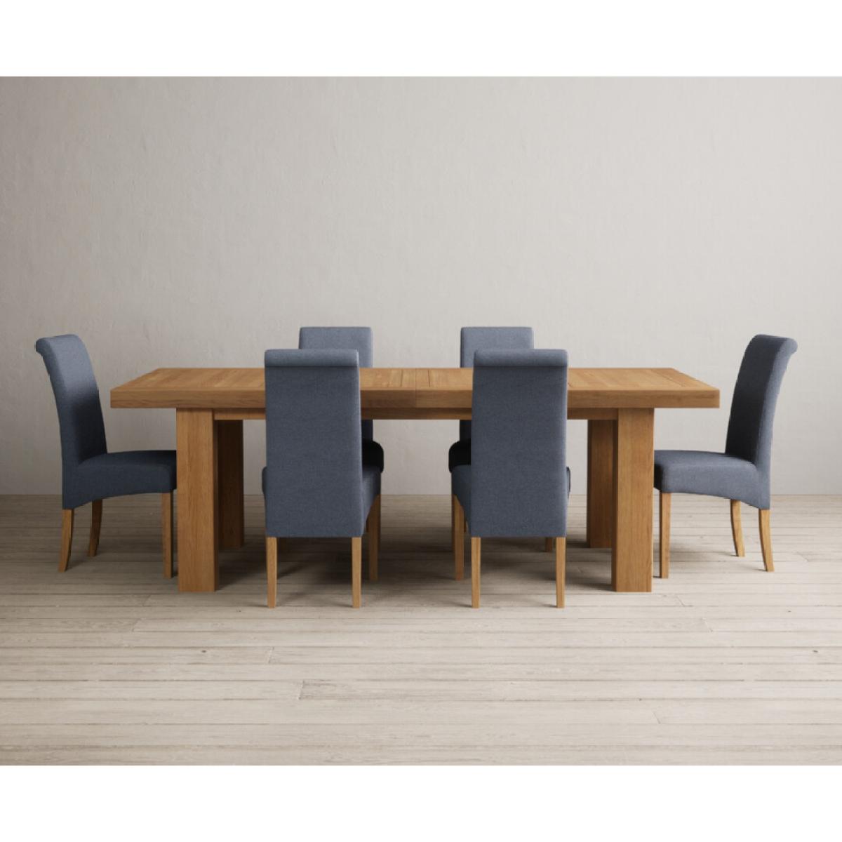 Extending Callington 230cm Oak Dining Table with 6 Charcoal Grey Scroll Back Chairs
