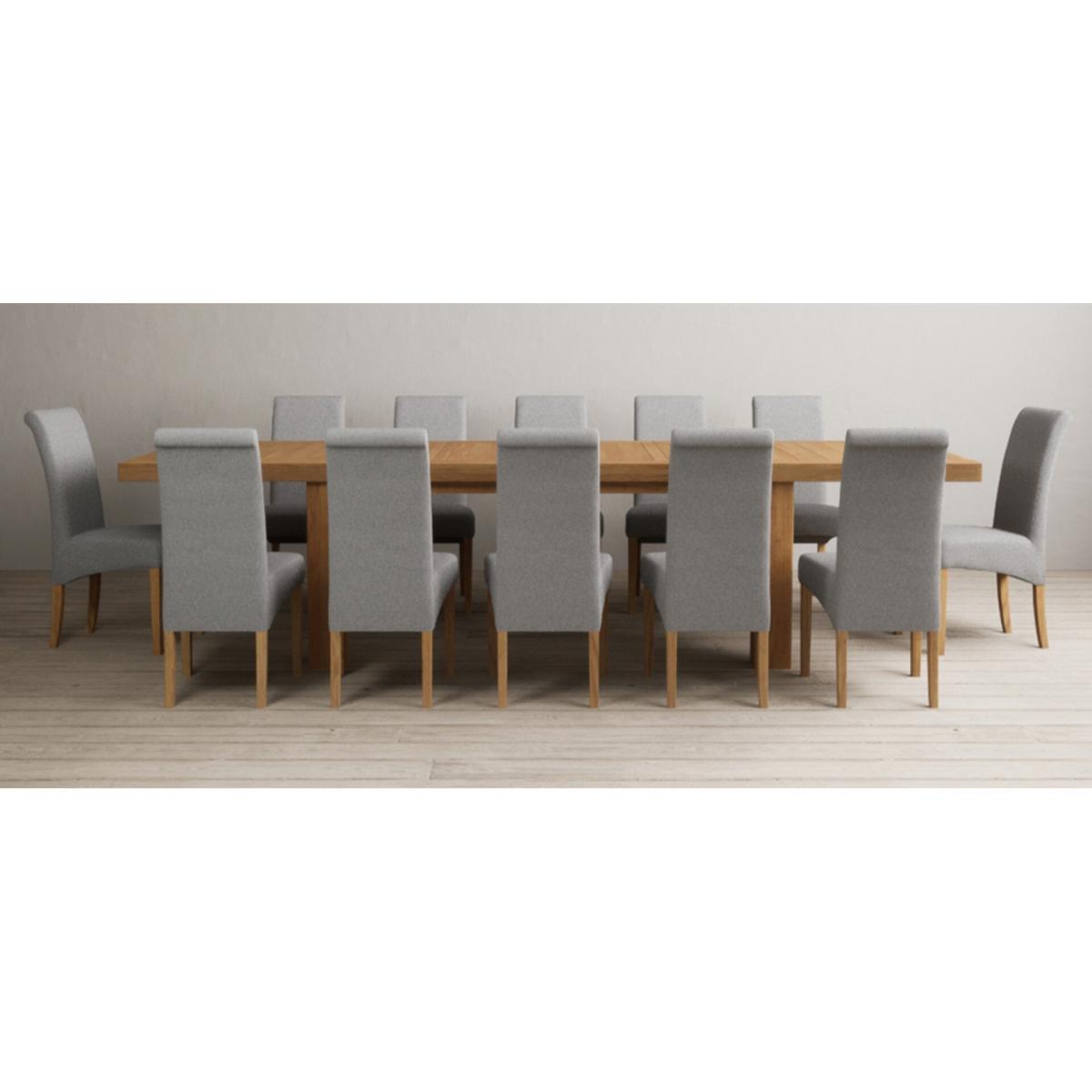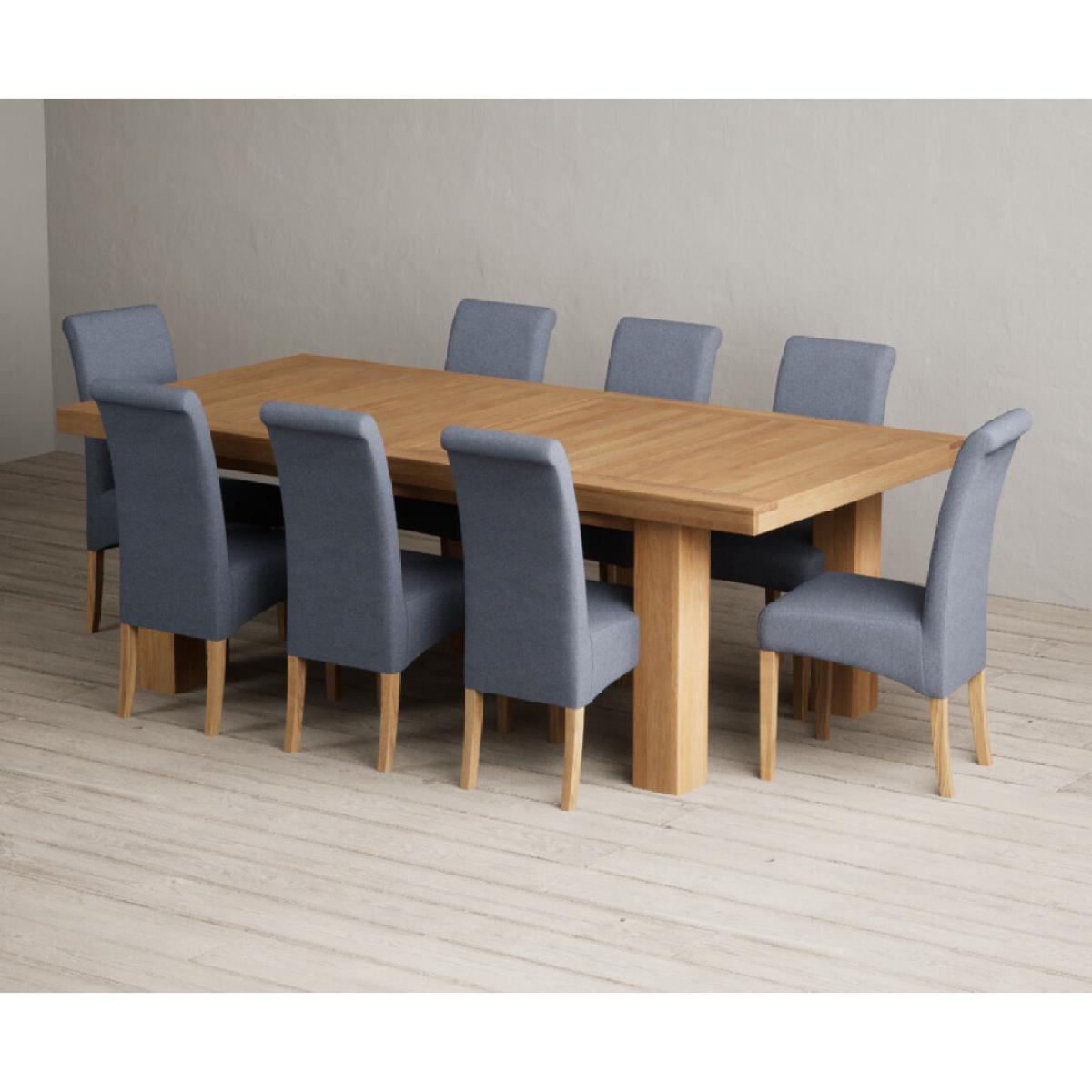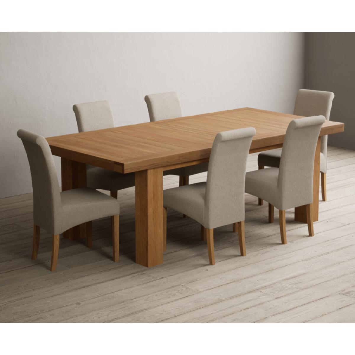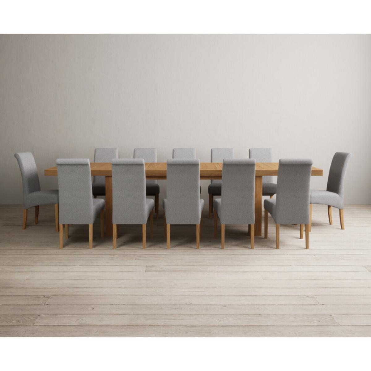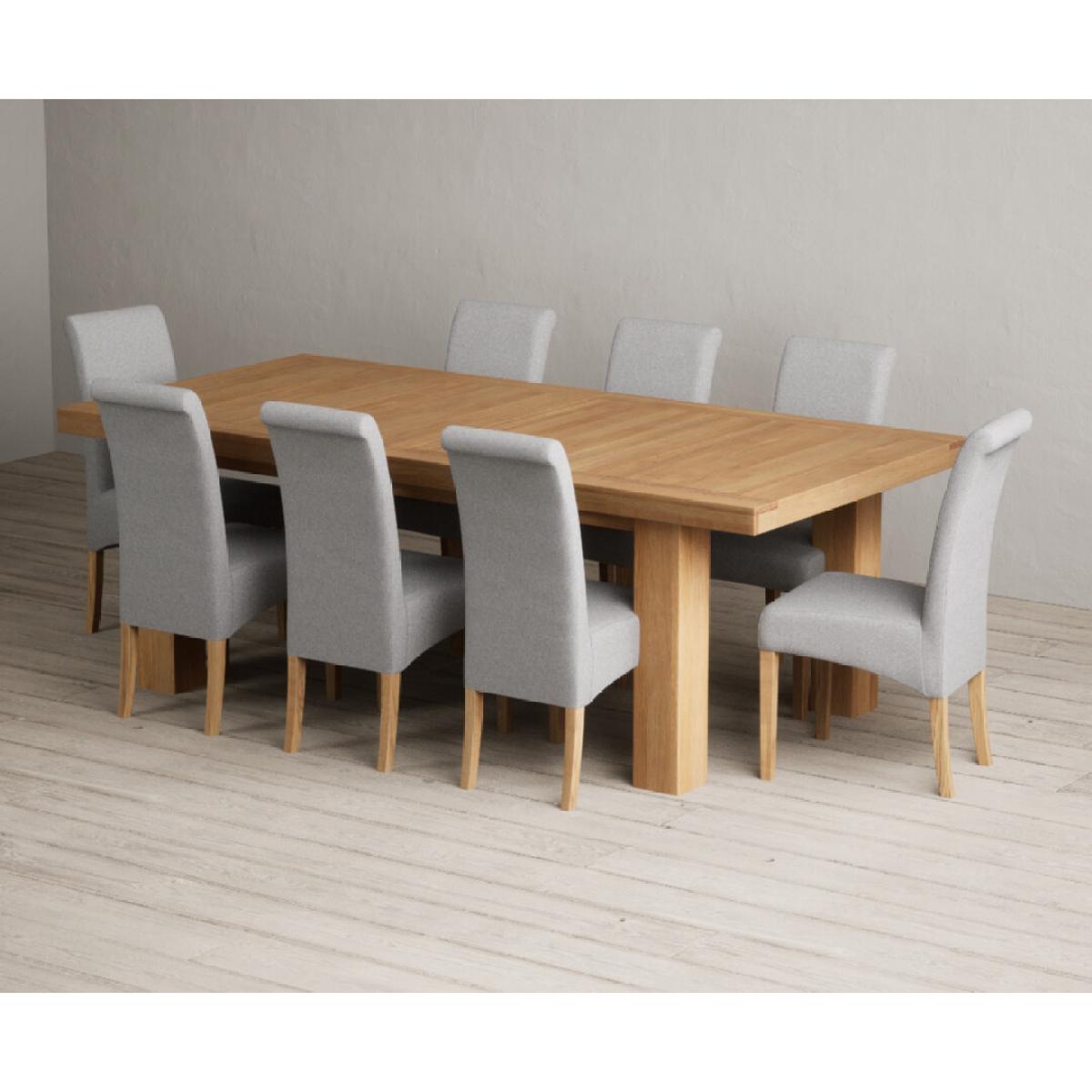 Extending Callington 230cm Oak Dining Table with 6 Charcoal Grey Scroll Back Chairs