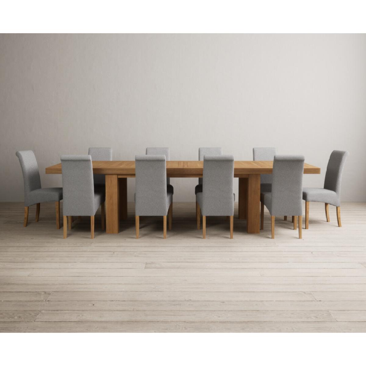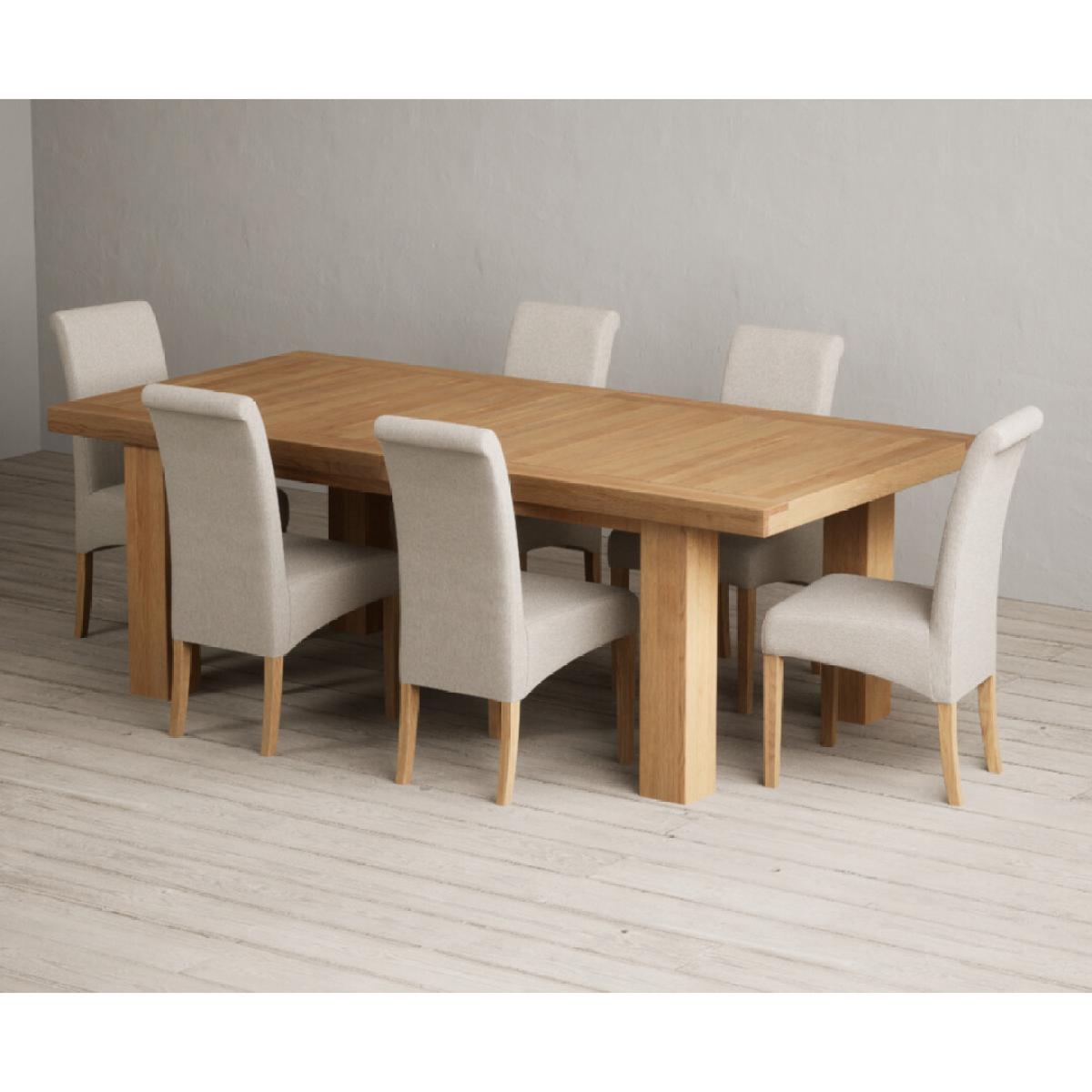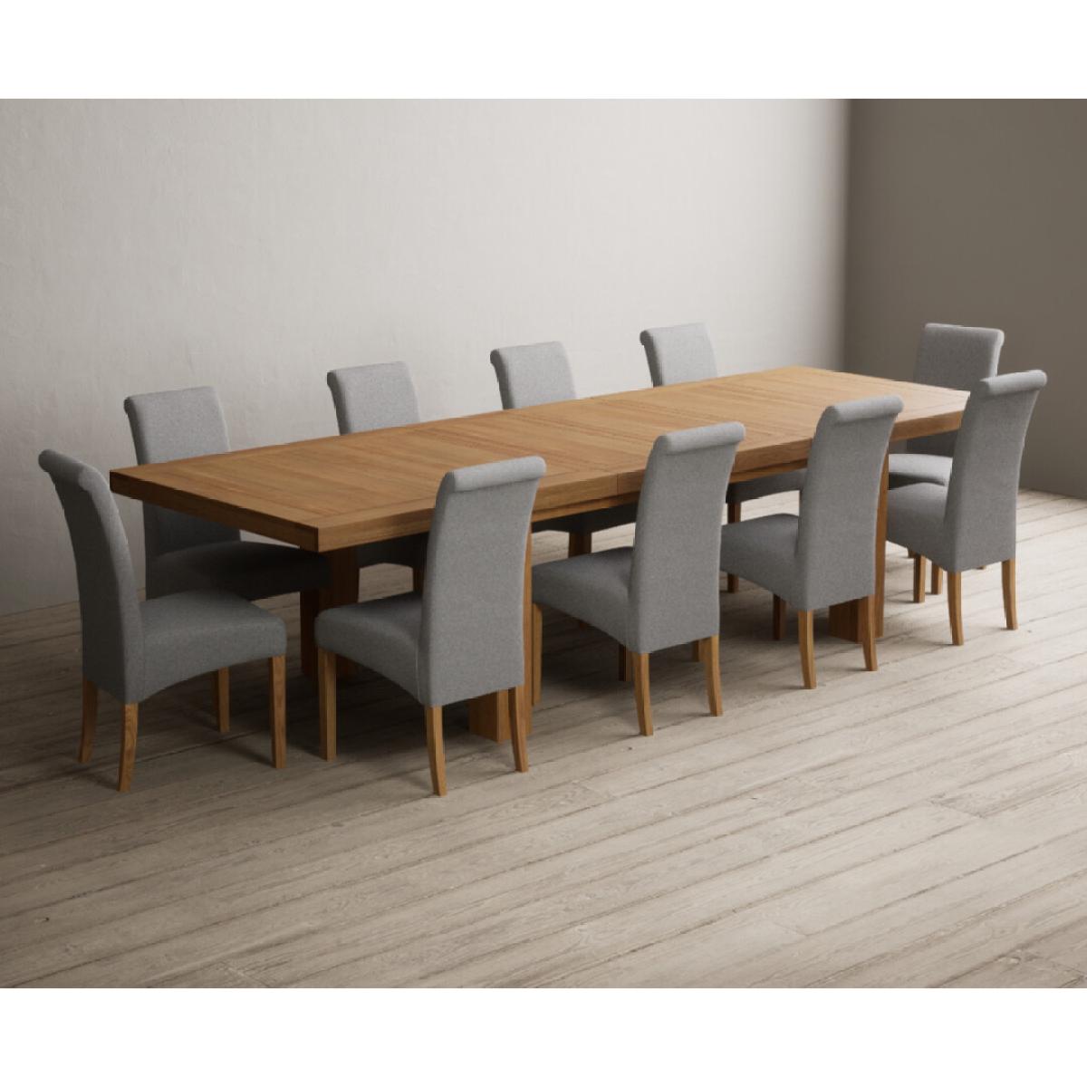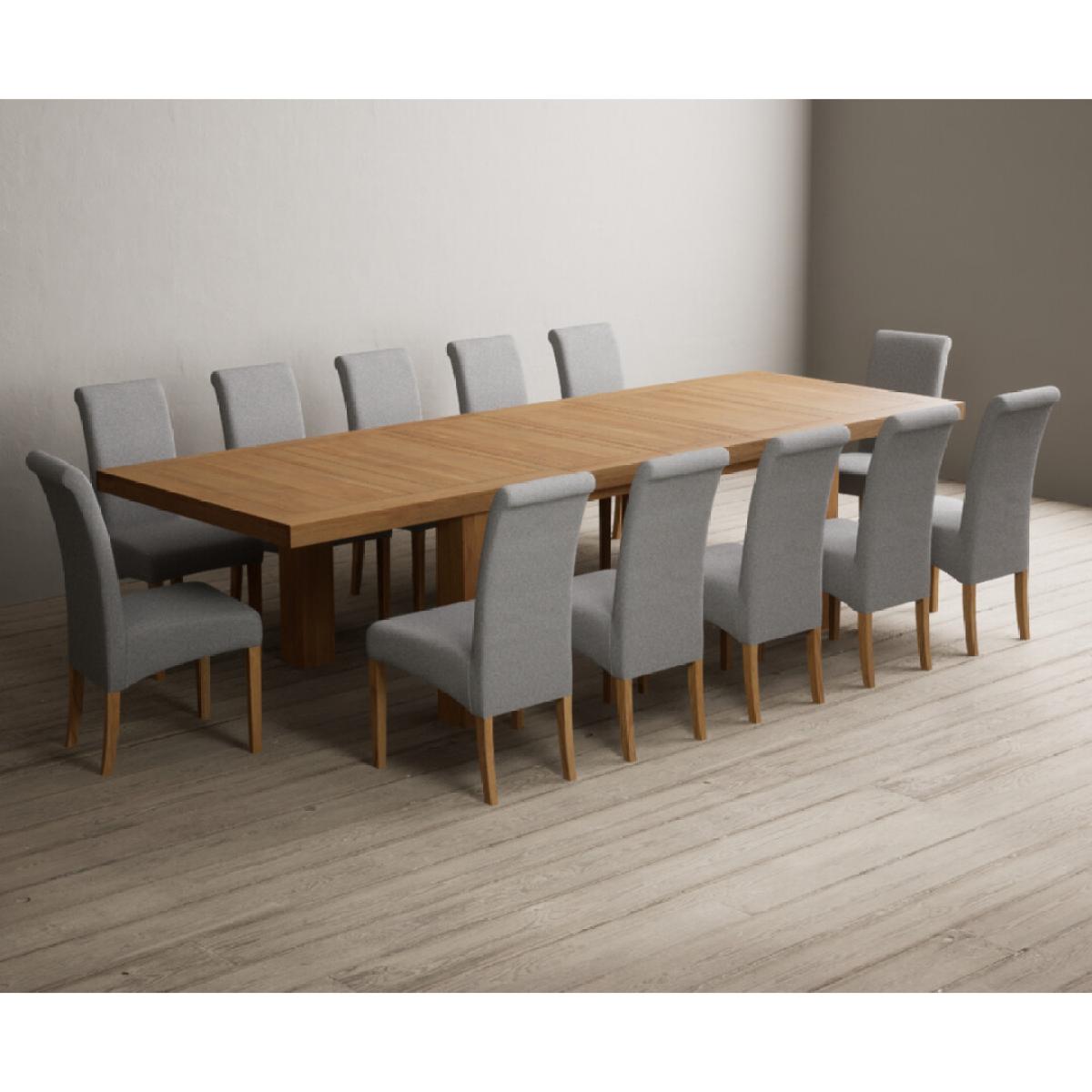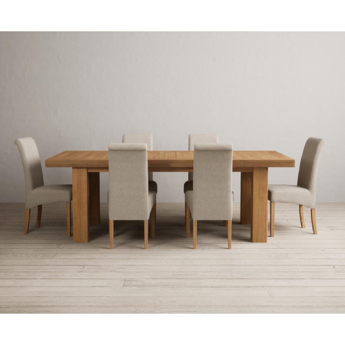 Extending Callington 230cm Oak Dining Table with 6 Charcoal Grey Scroll Back Chairs