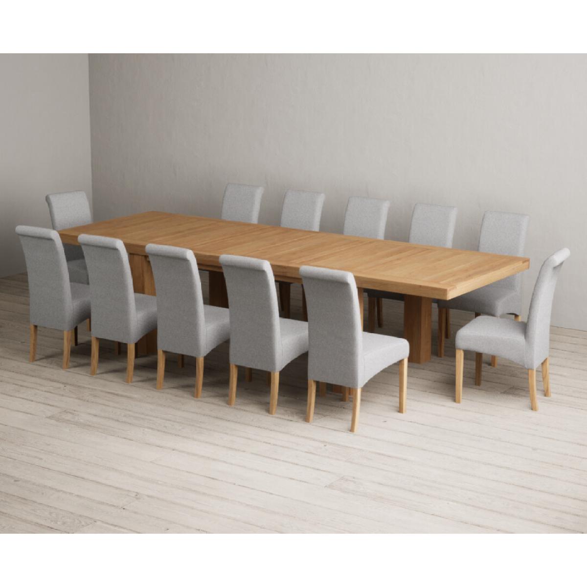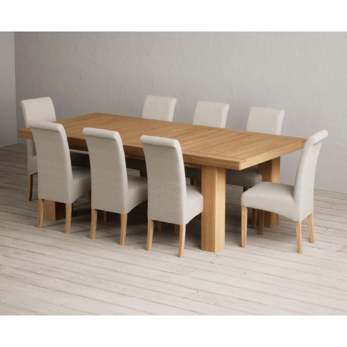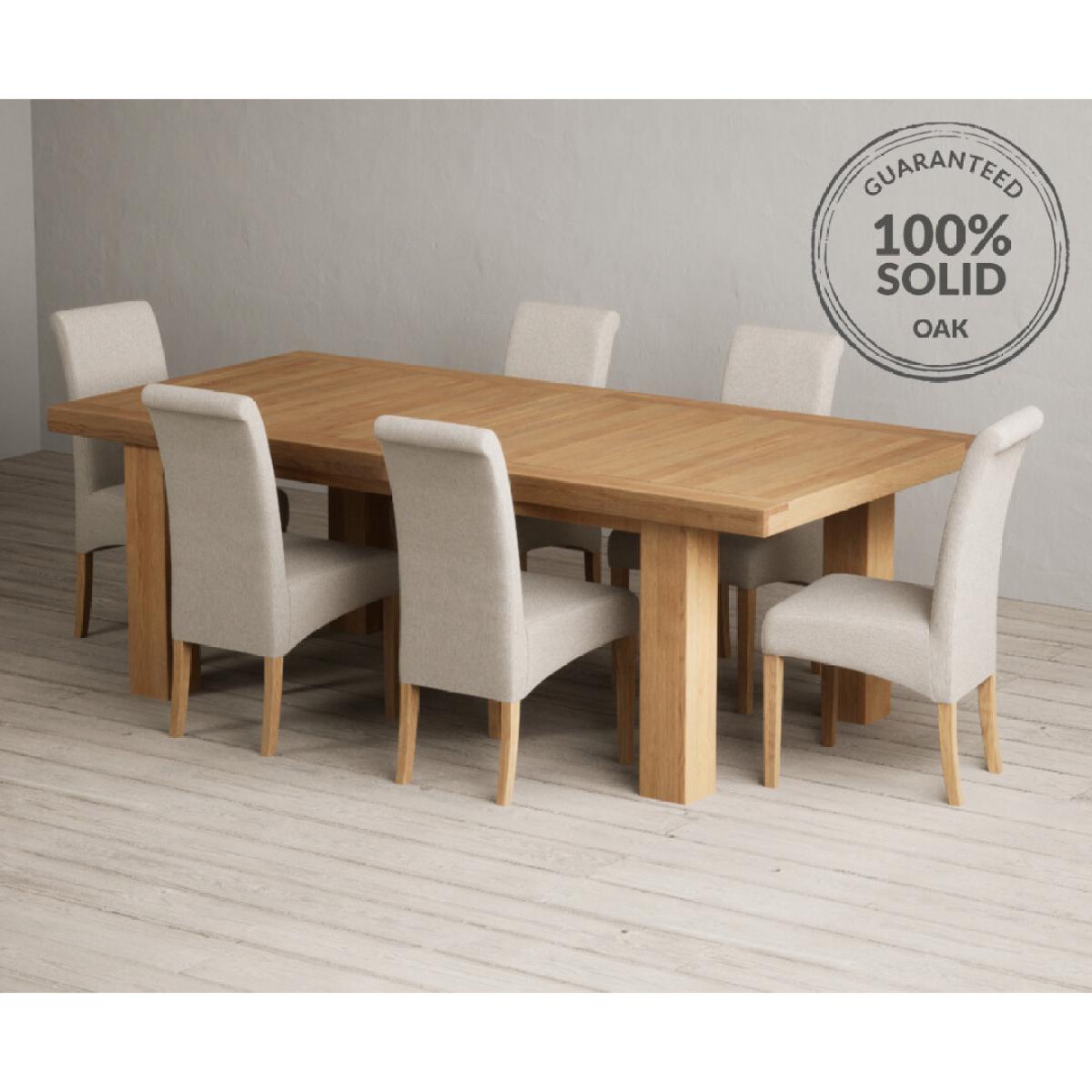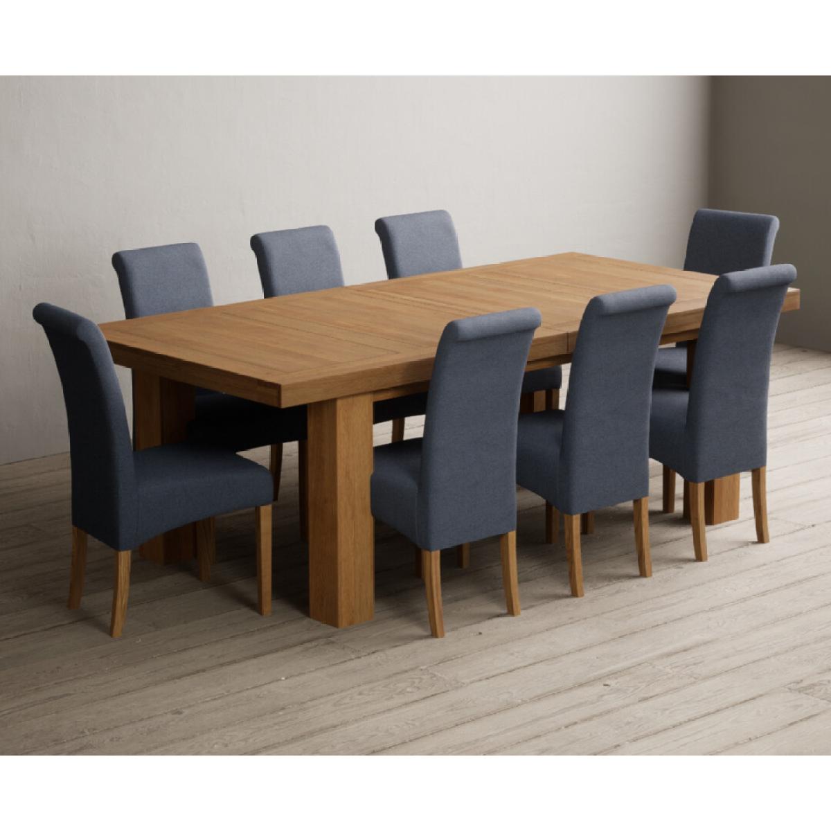 Extending Callington 230cm Oak Dining Table with 6 Charcoal Grey Scroll Back Chairs