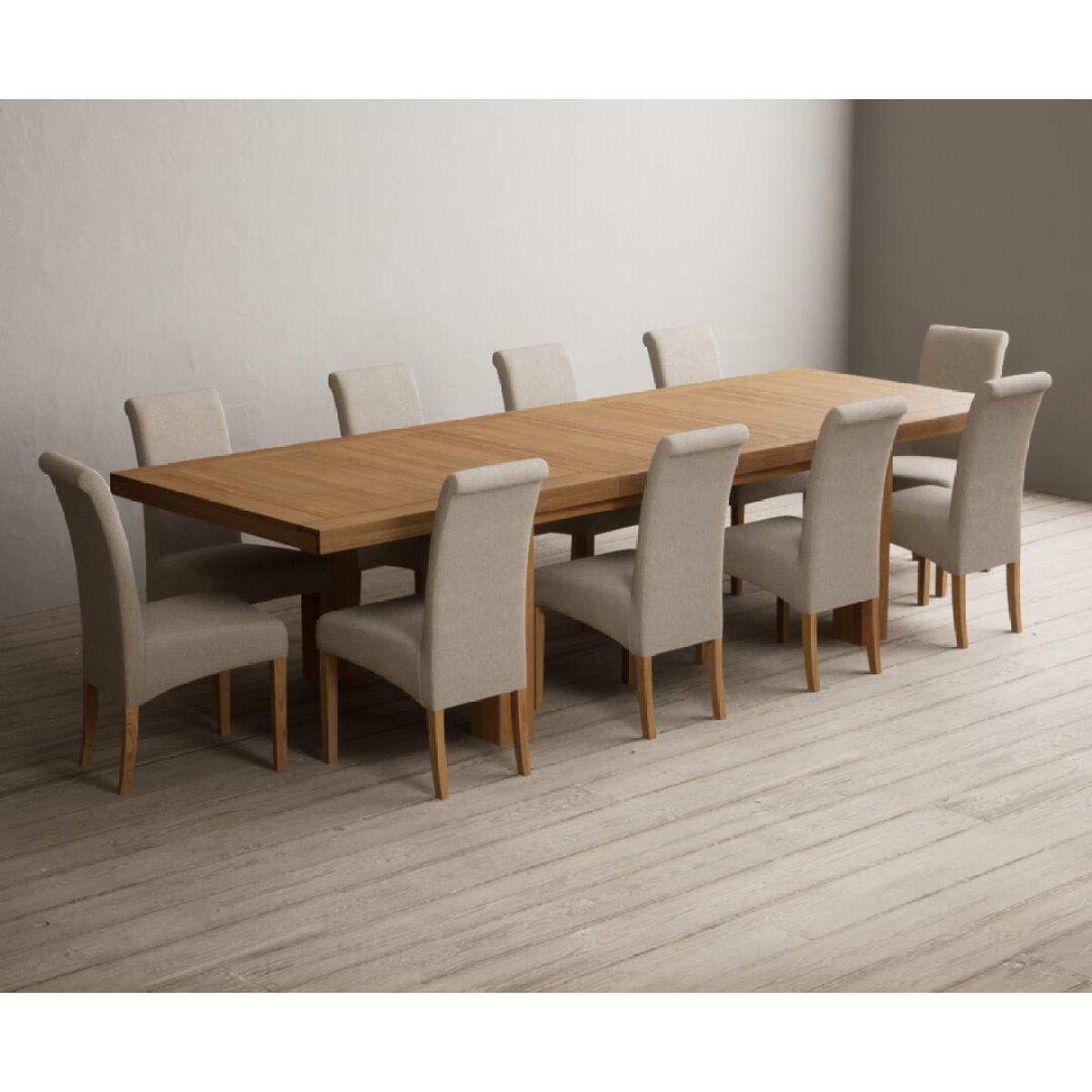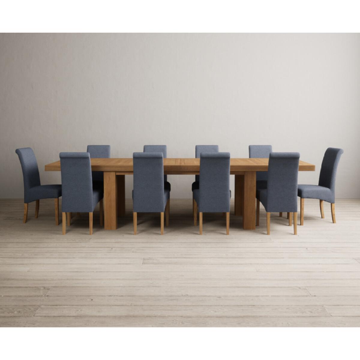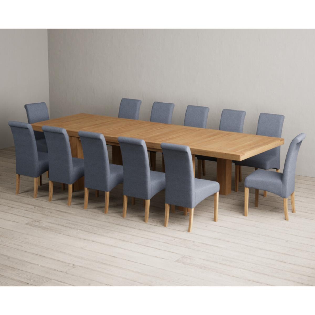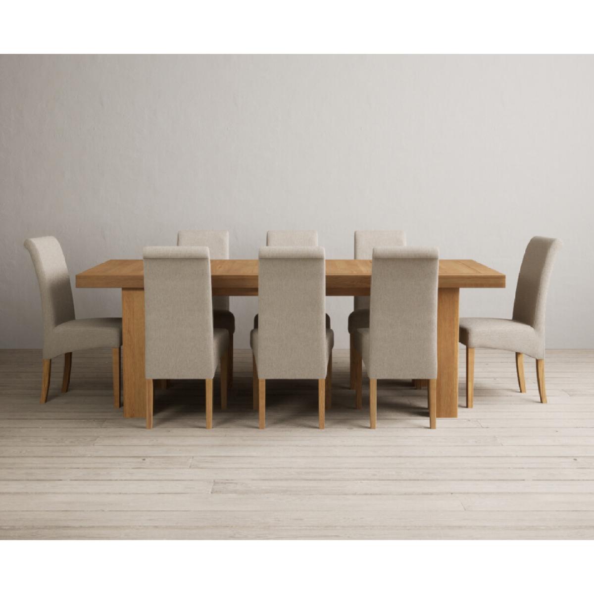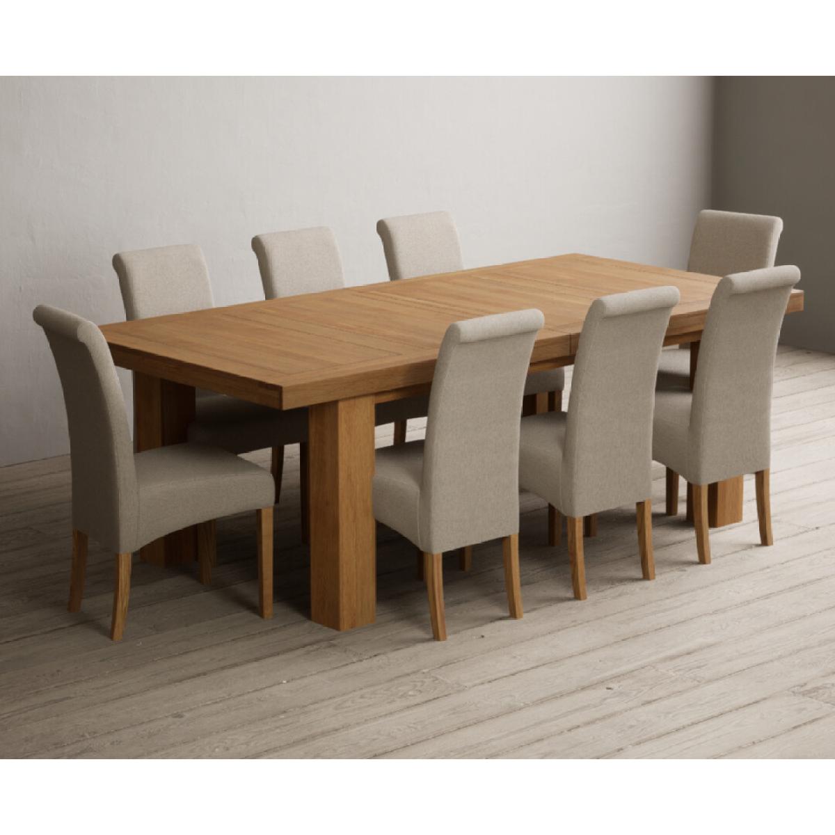 Extending Callington 230cm Oak Dining Table with 6 Charcoal Grey Scroll Back Chairs