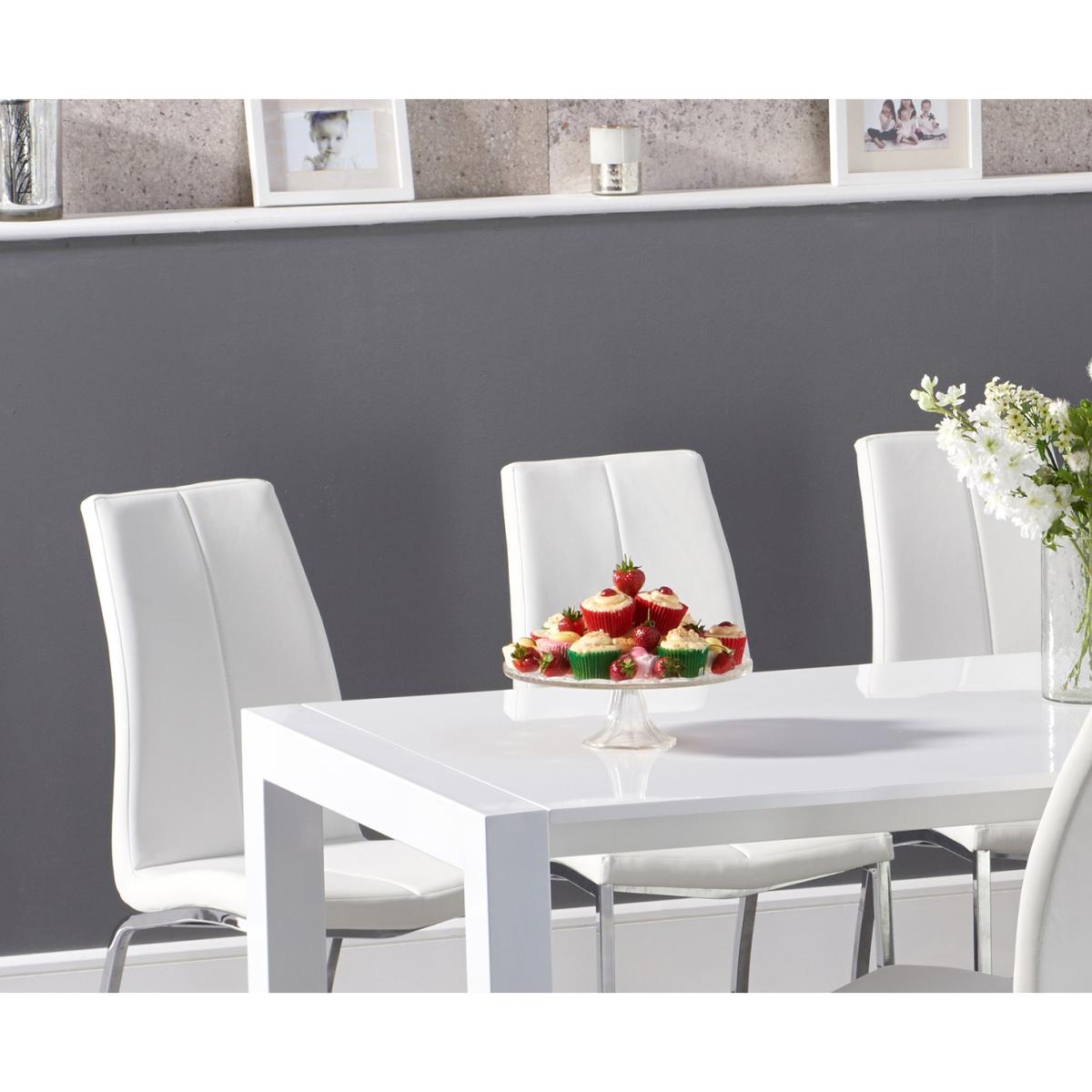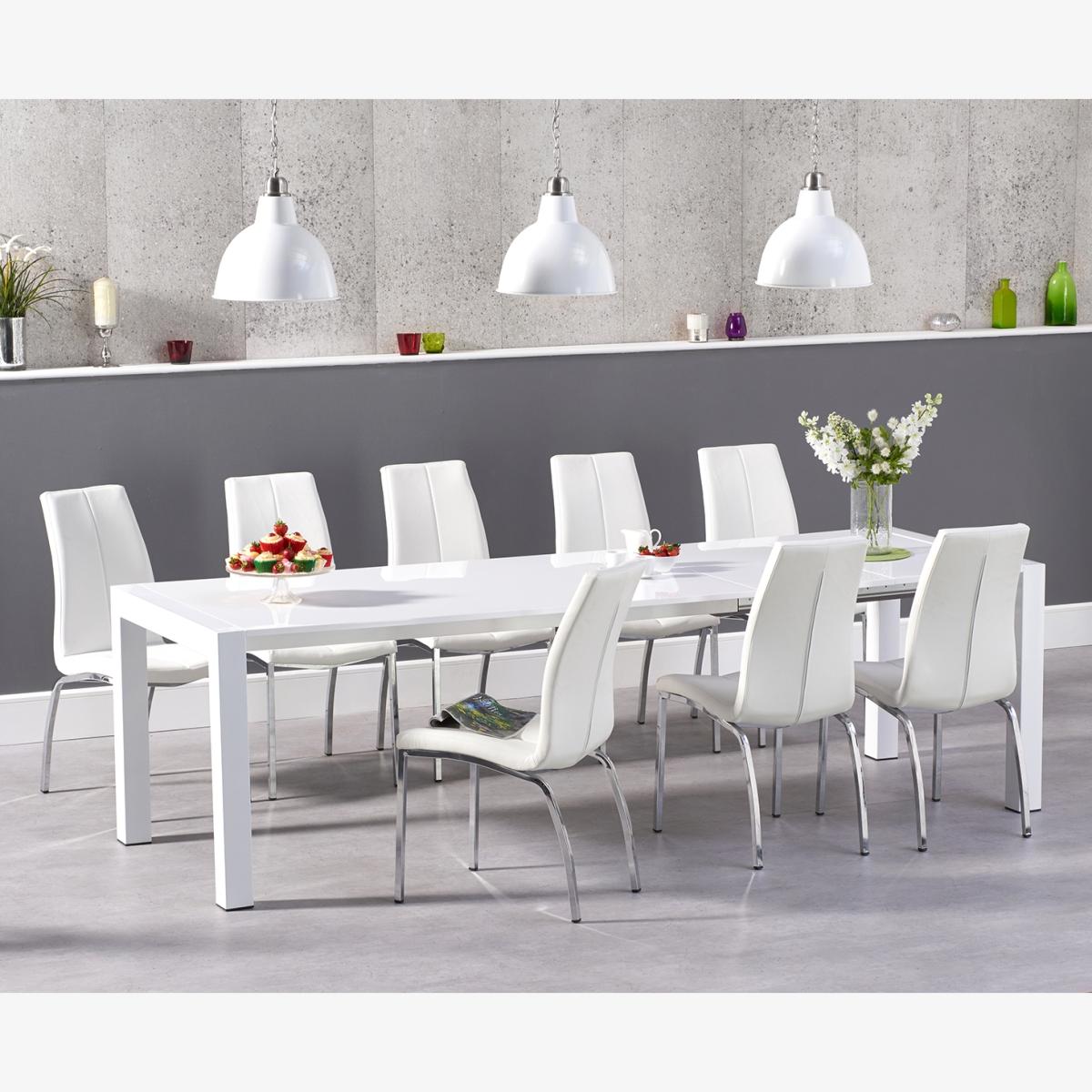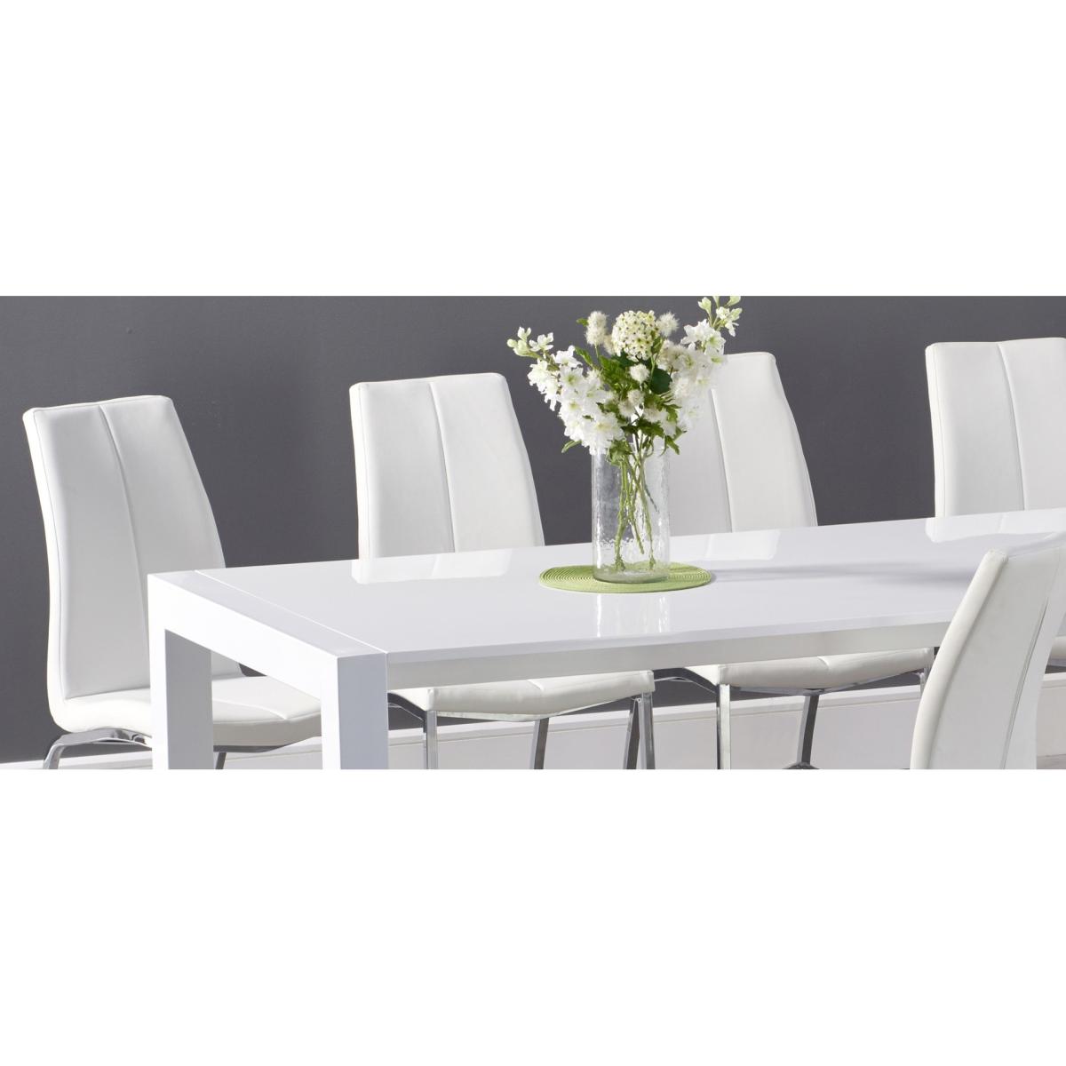 Extending Cleveland White High Gloss Dining Table with 6 Ivory White Marco Chairs
