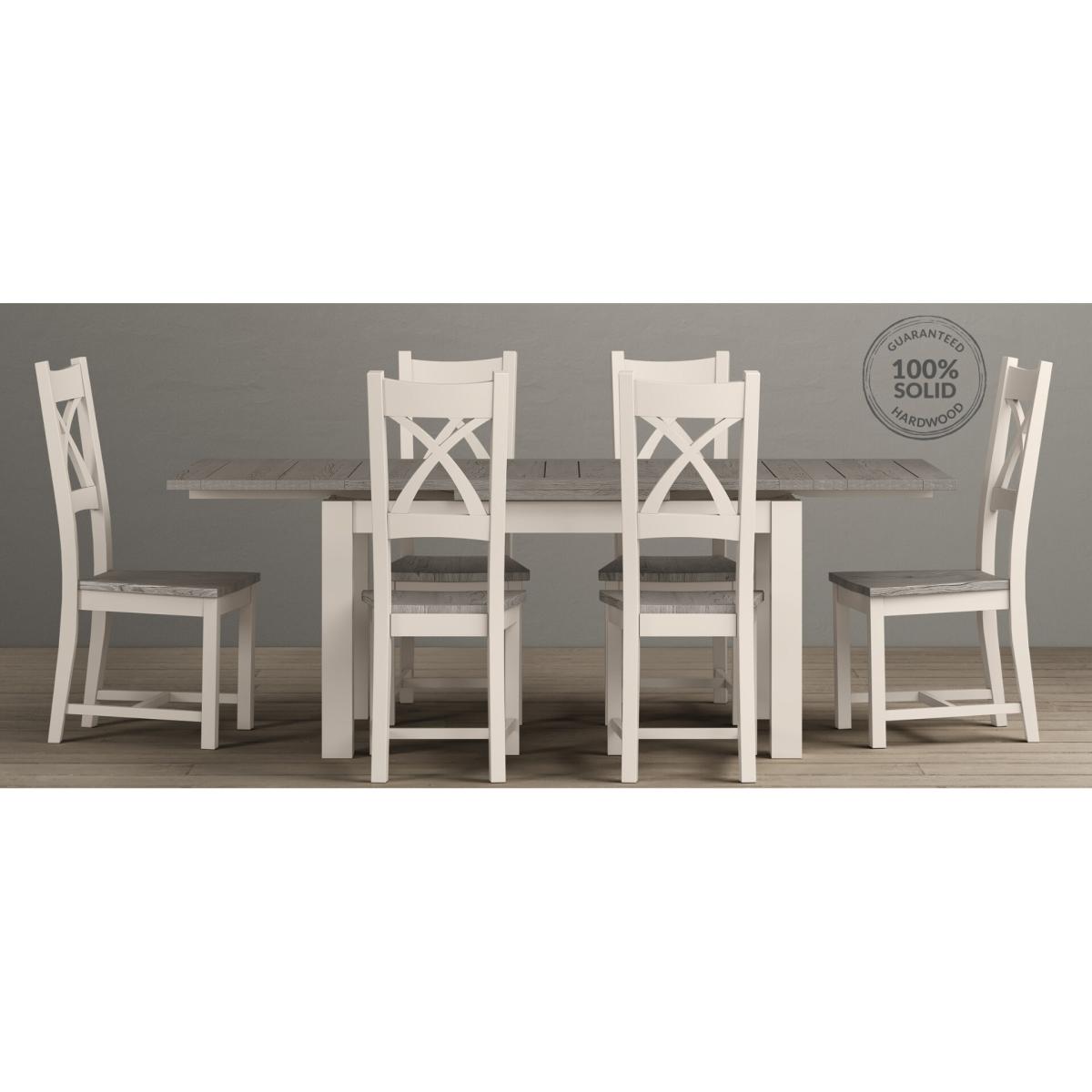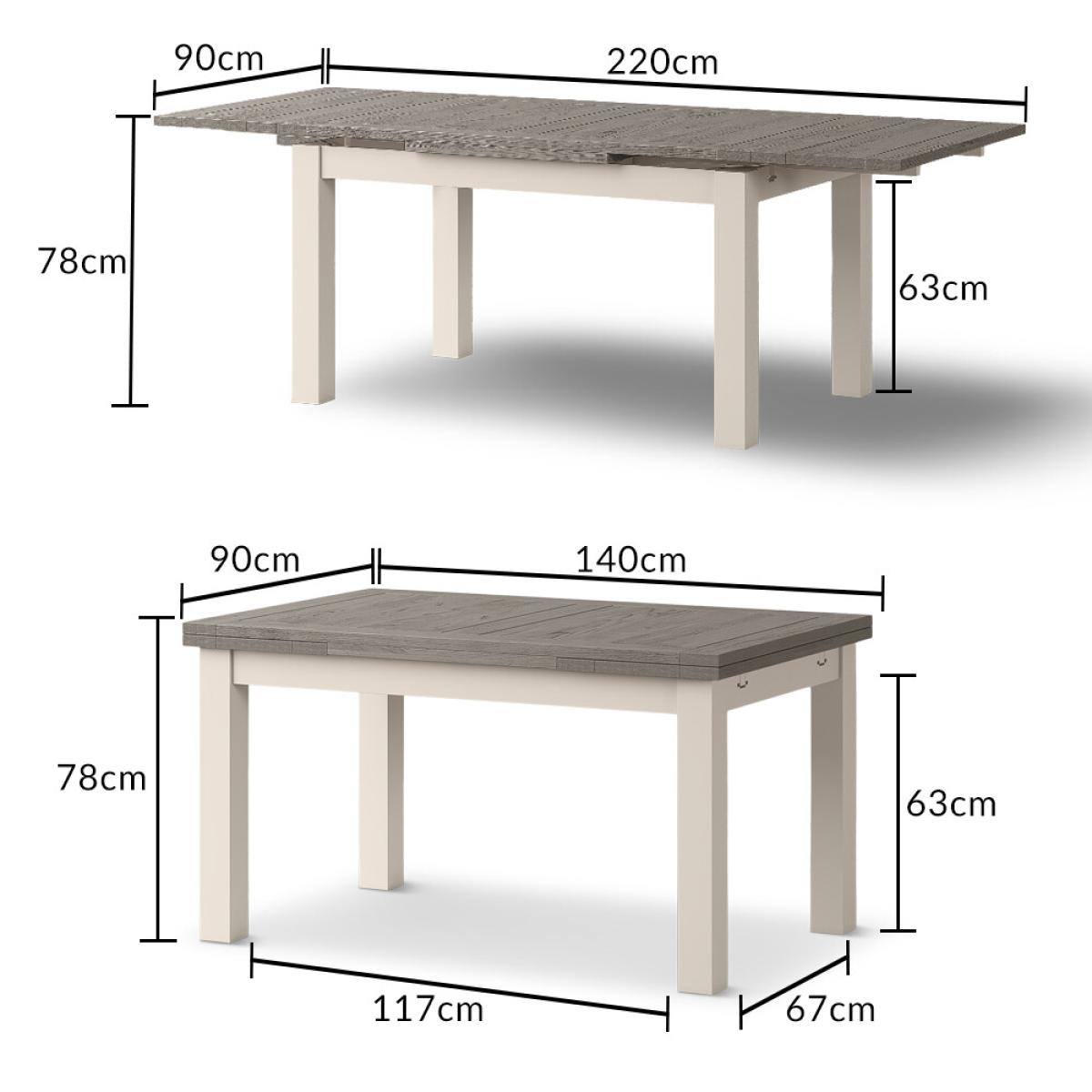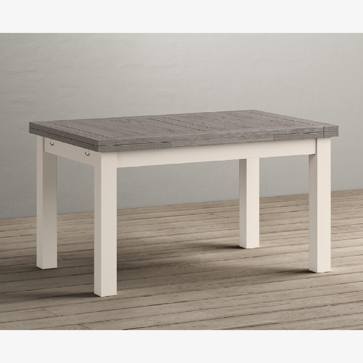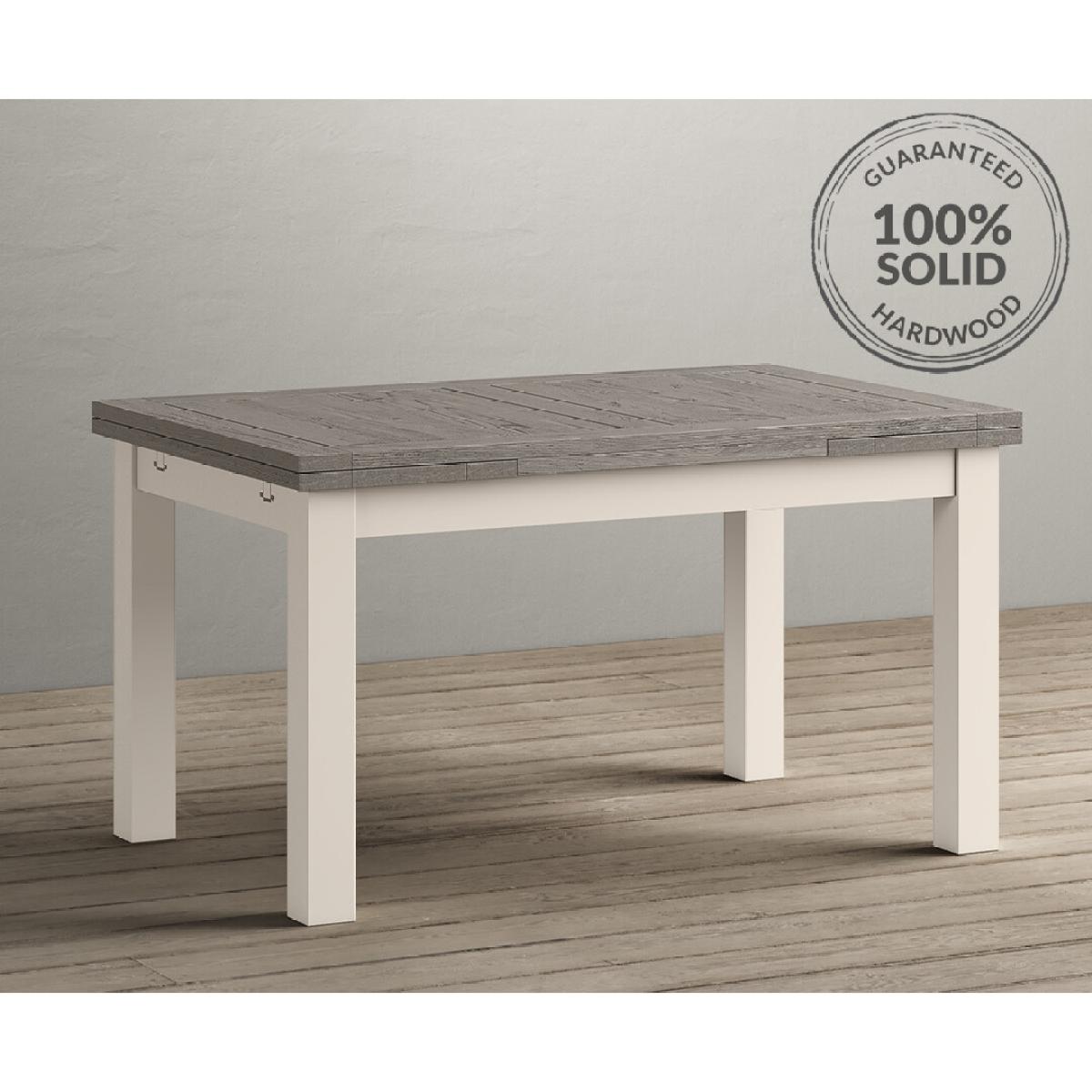 The Extending Dartmouth 140cm Oak and Soft White Painted Dining Table is a stylish extending dining table with a white painted solid hardwood frame and grey oak top.
