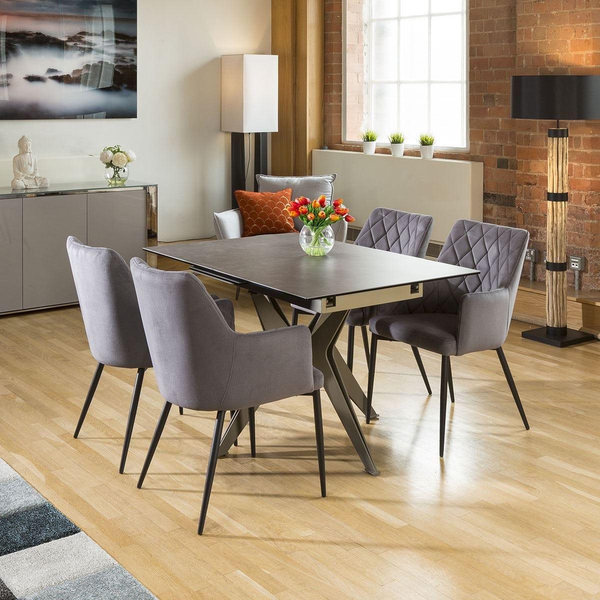 Extending Dining Table Charcaol Grey Ceramic + 4 x Grey Carver Chairs
