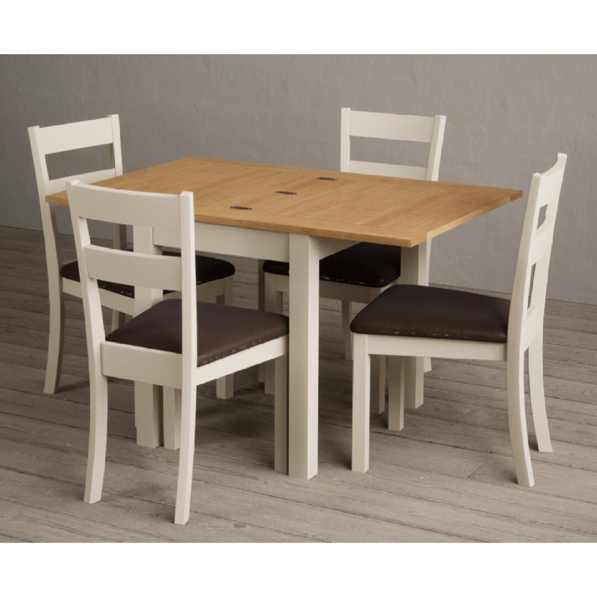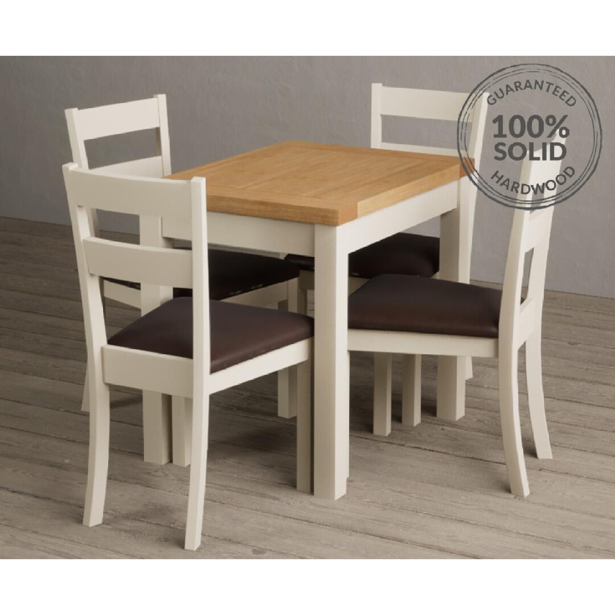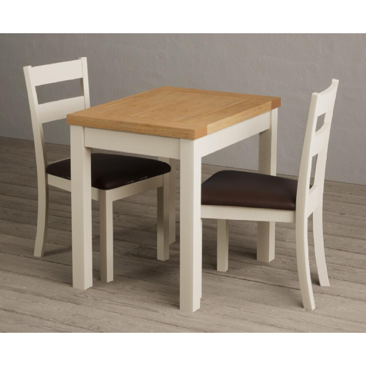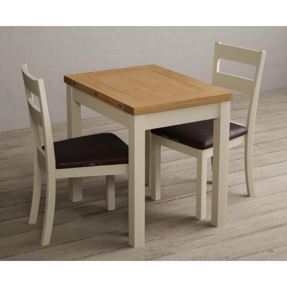 Extending Hadleigh Oak and Cream Painted Dining Table with 2 Linen Kendal Chairs