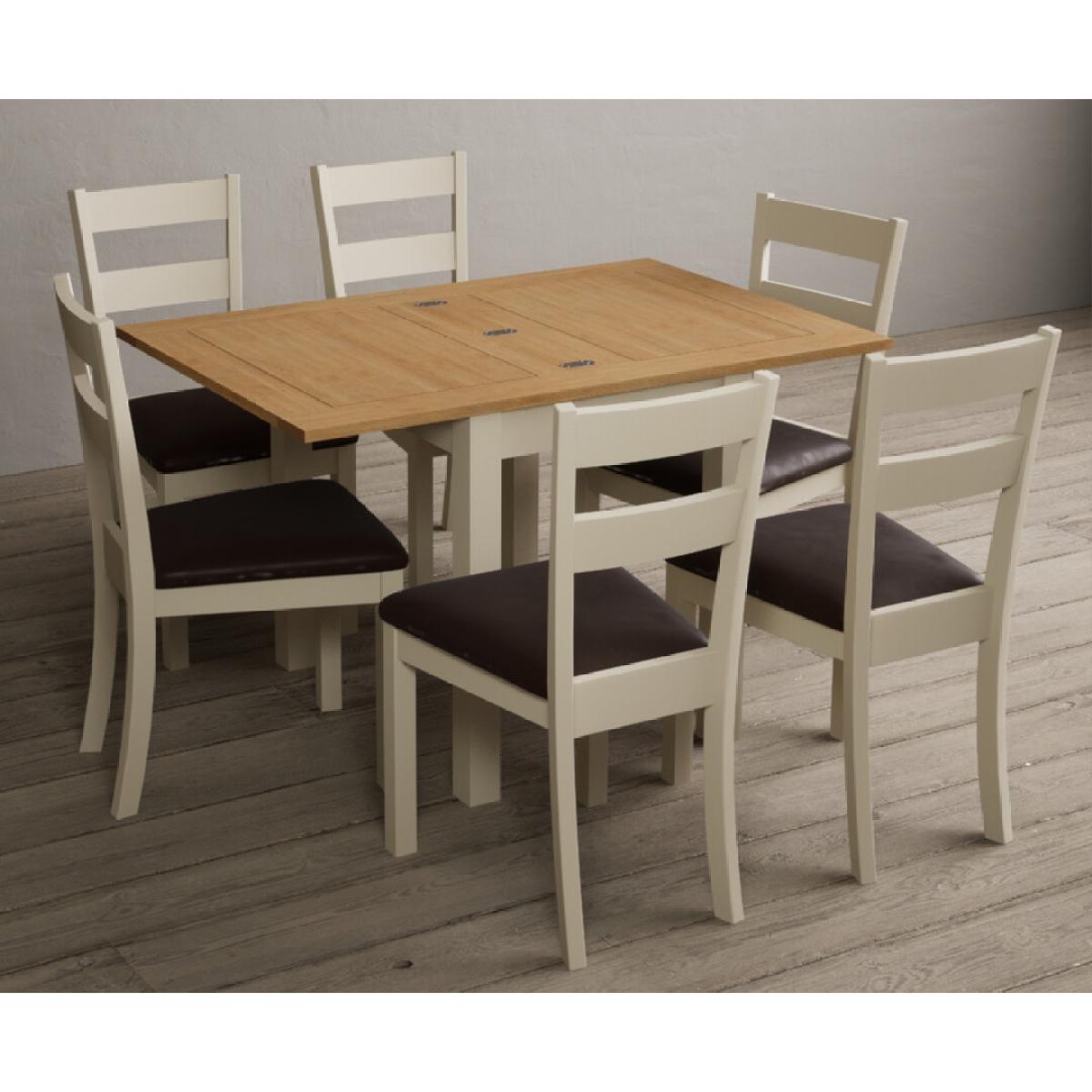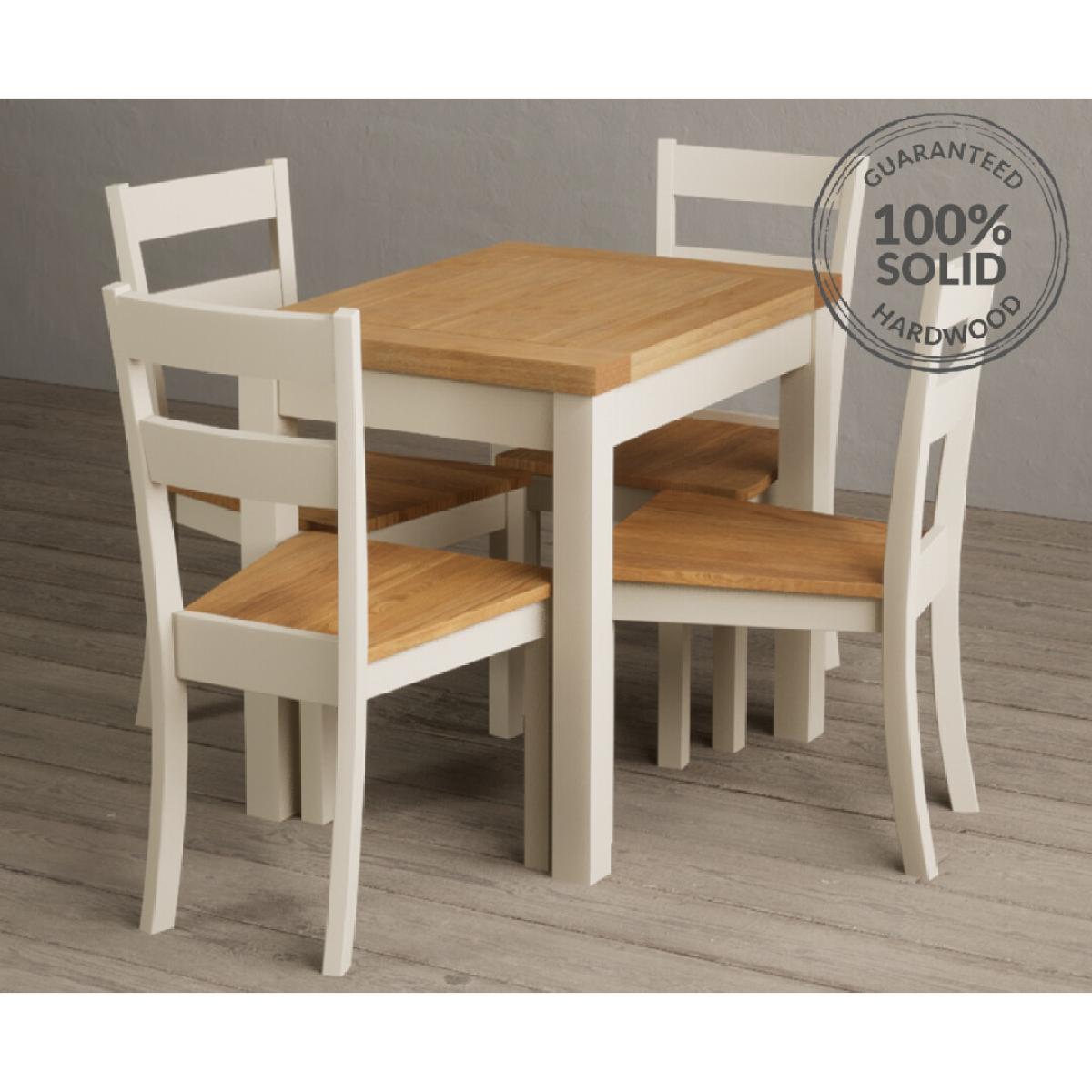 The Extending Hadleigh Oak and Cream Painted Dining Table with Kendal Chairs is a sturdy, practical dining set with a minimalist style that suits any home.