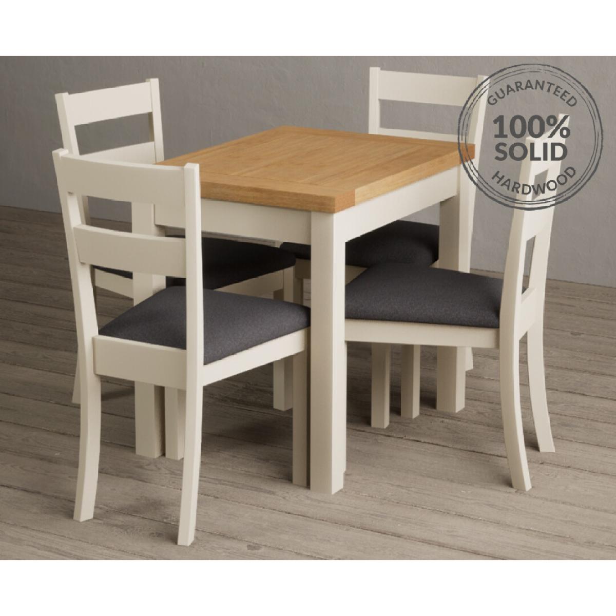Extending Hadleigh Oak and Cream Painted Dining Table with 4 Blue Kendal Chairs