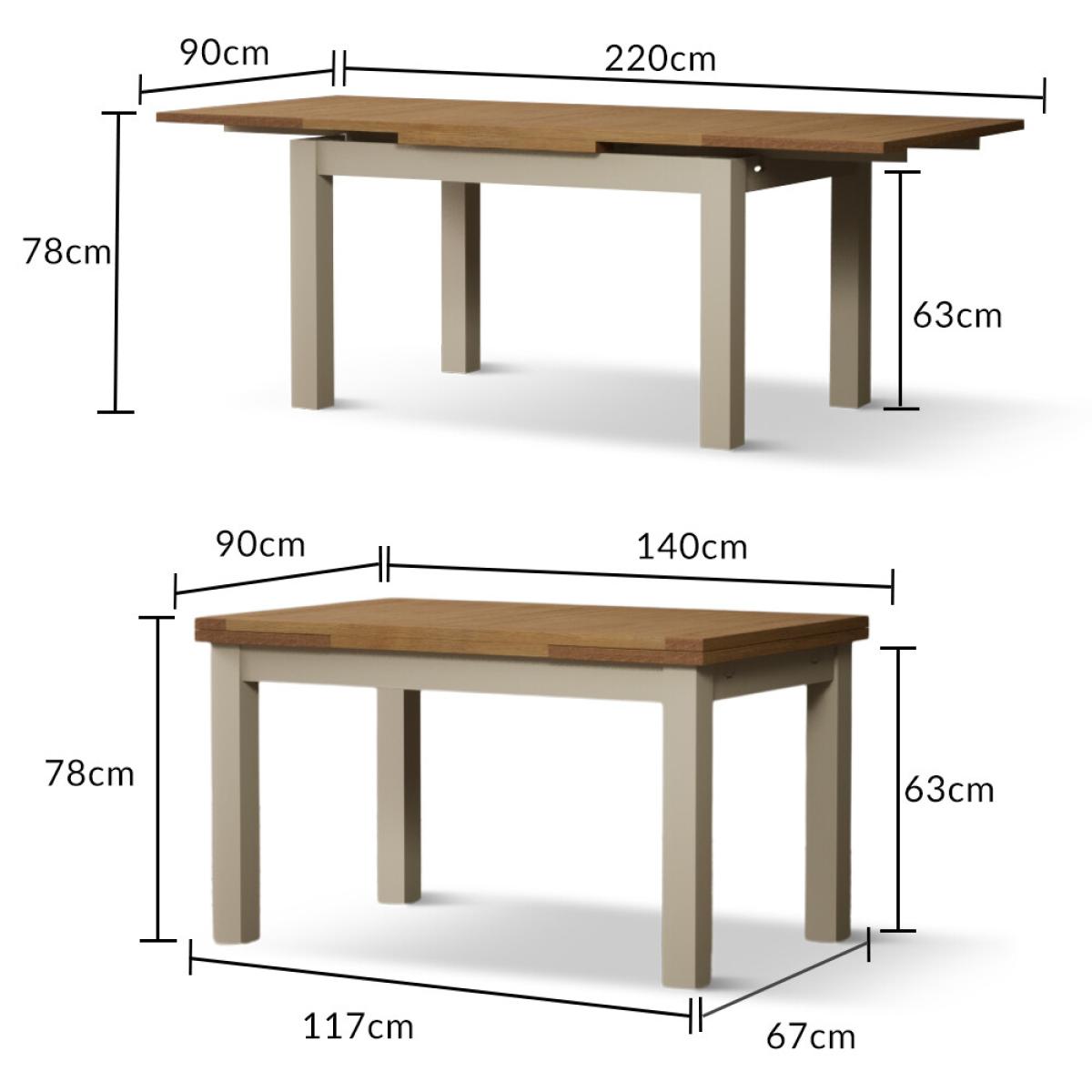 Extending Hampshire 140cm Oak and Cream Painted Dining Table