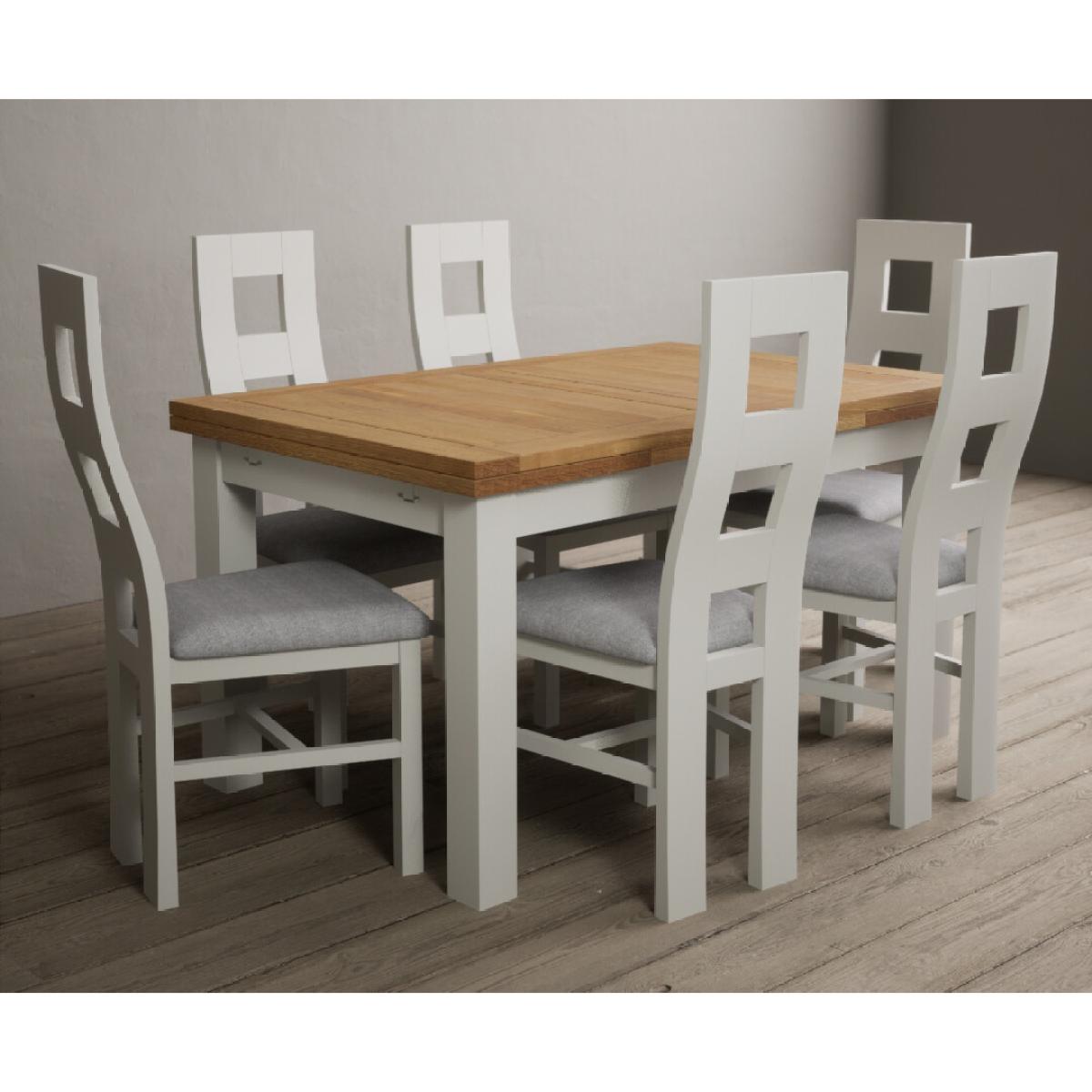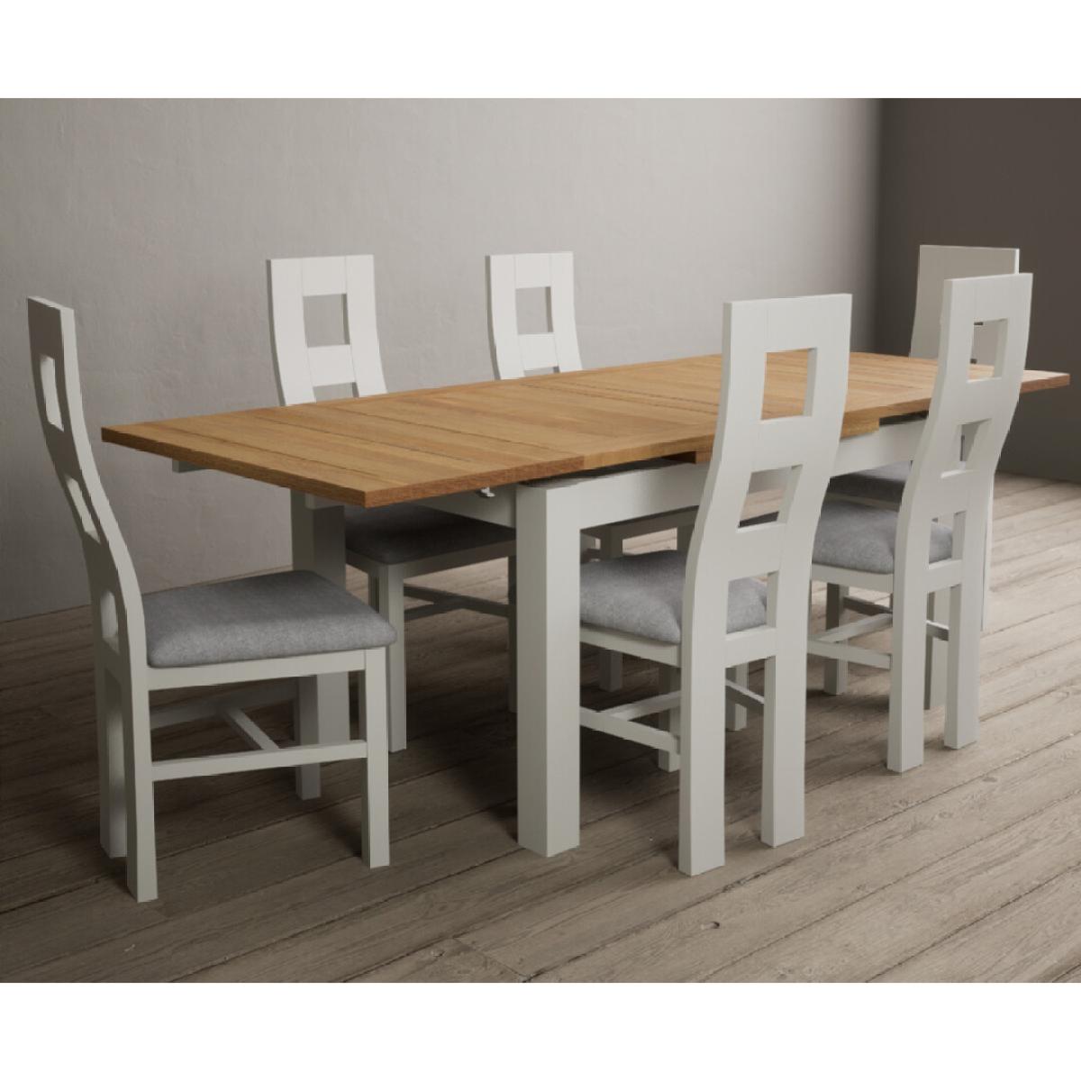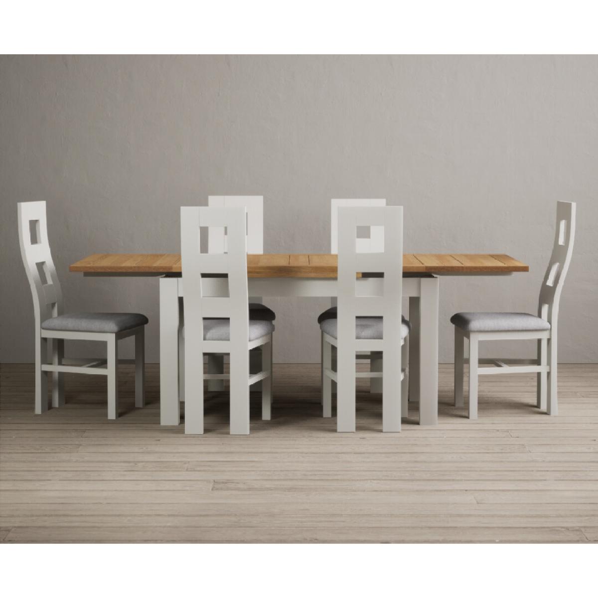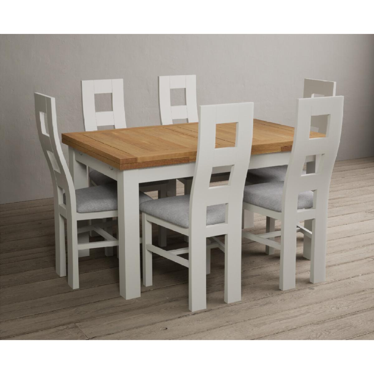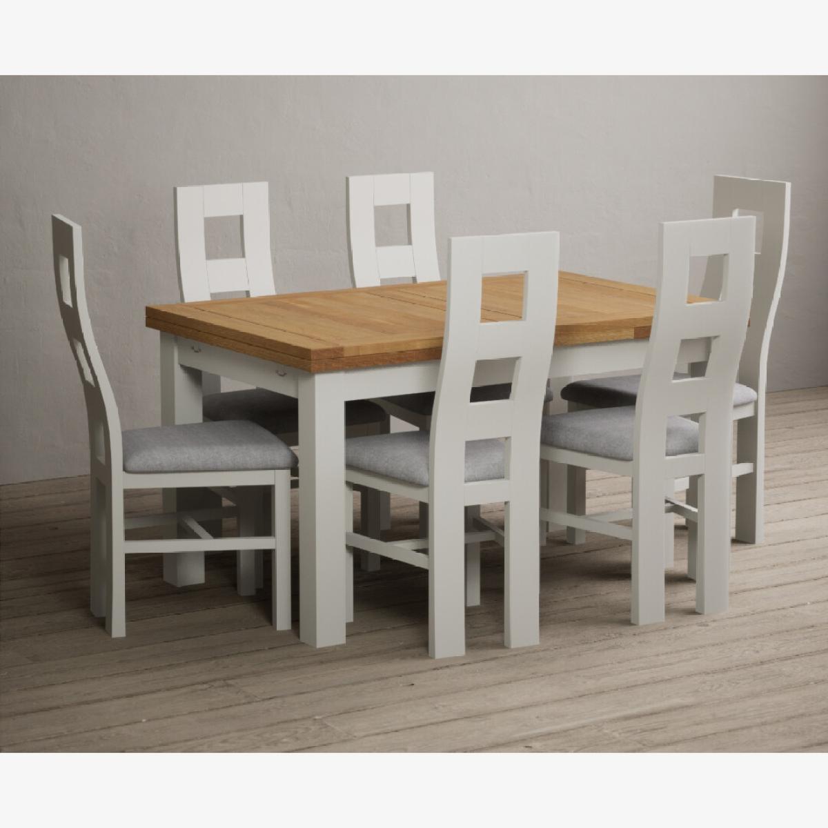 Extending Hampshire 140cm Oak and Signal White Dining Table with 6 Charcoal Grey Flow Back Chairs