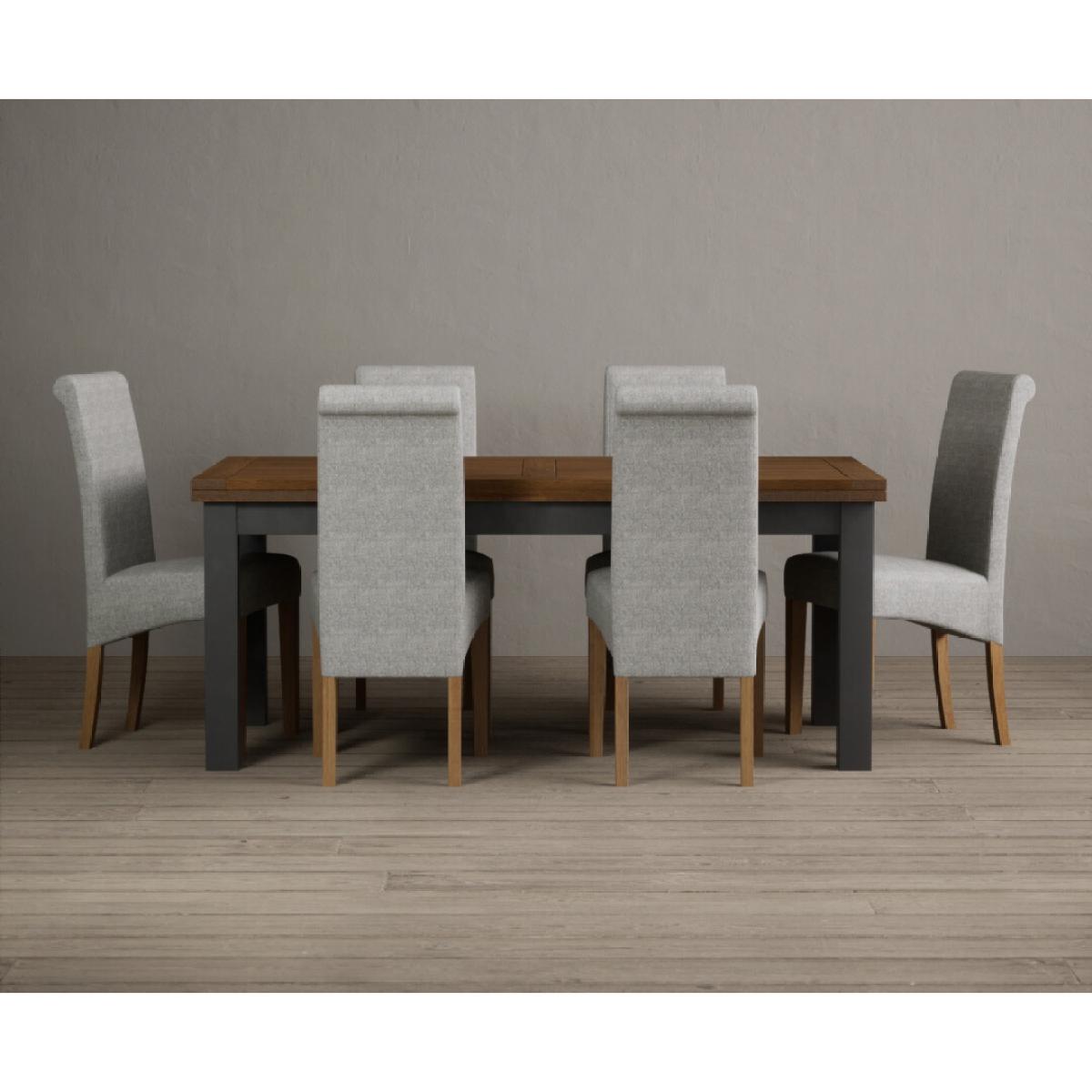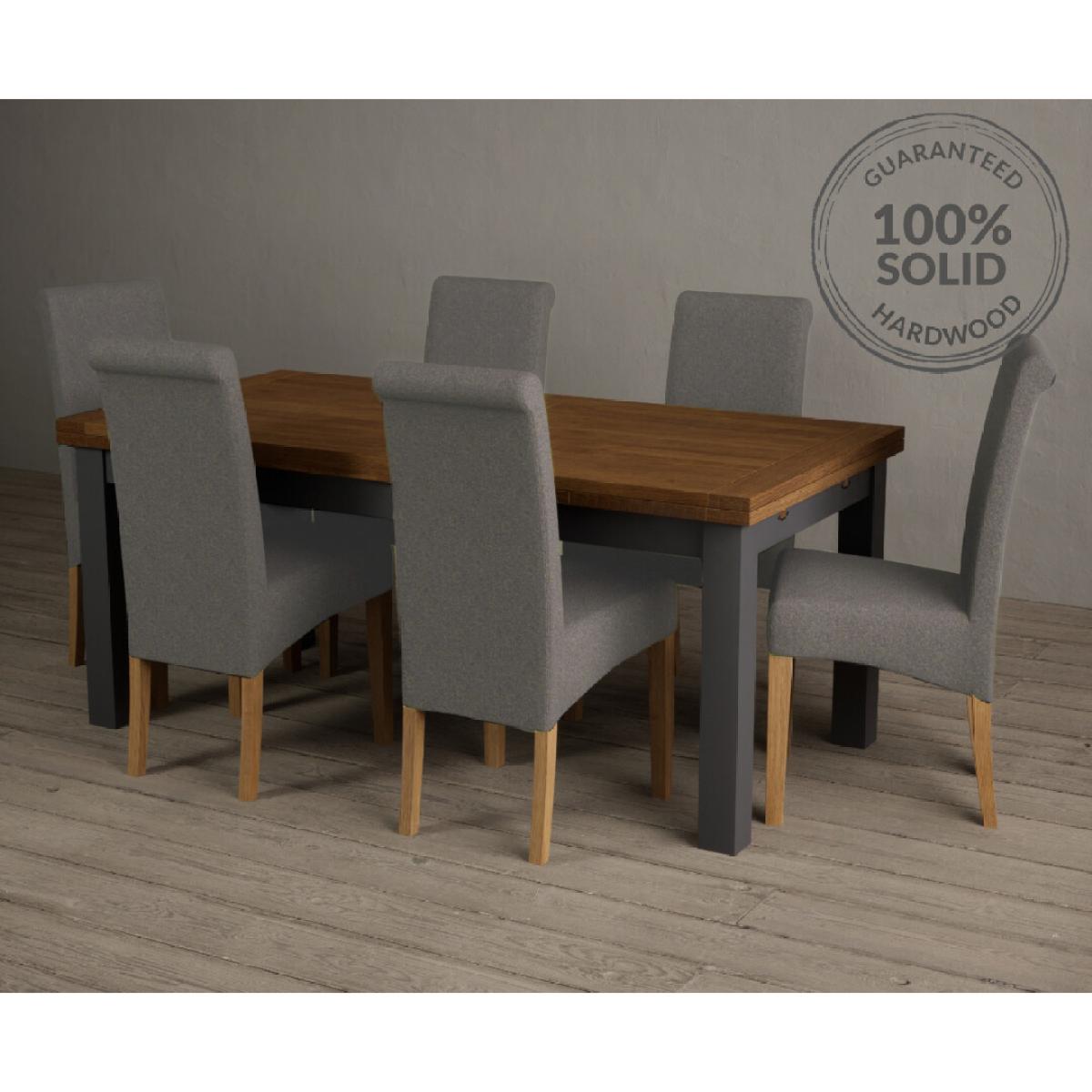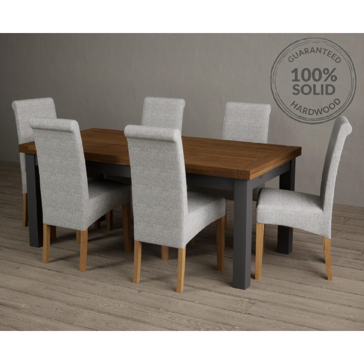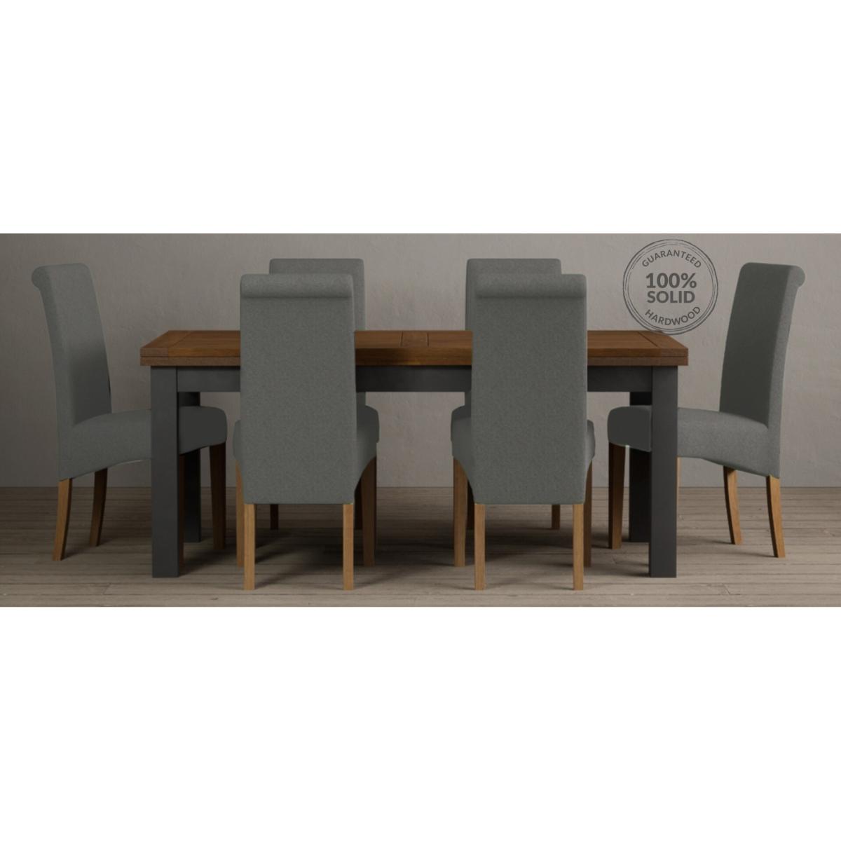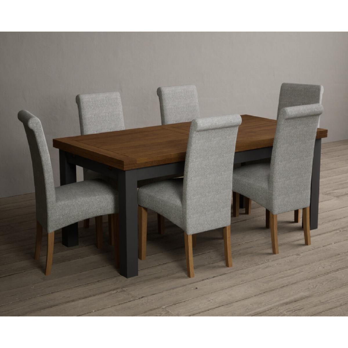 The Hampshire 180cm Oak and Charcoal Grey Extending Dining Table with Scroll Back Chairs is a stylish painted solid wood and solid oak extending dining set perfect for every occasion.