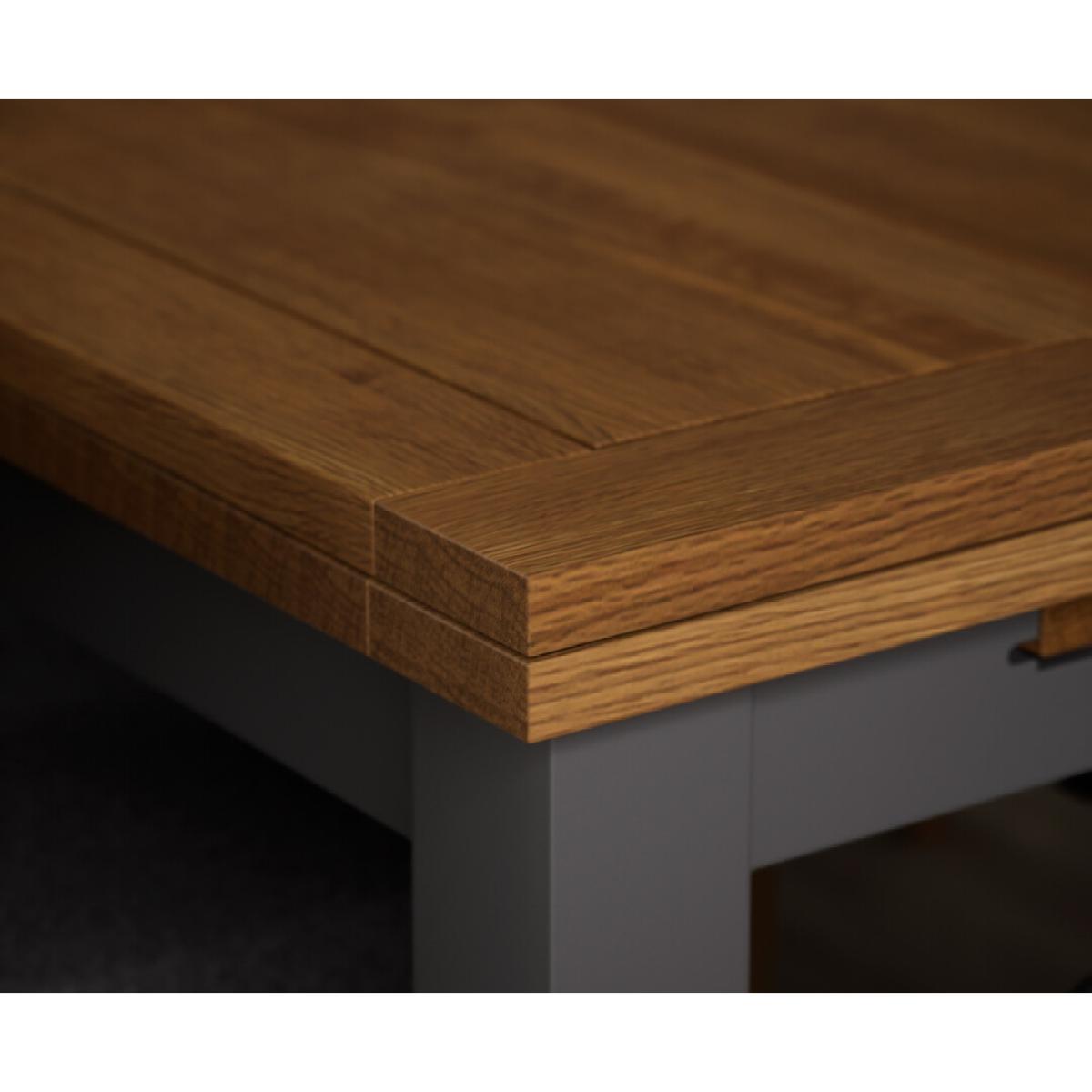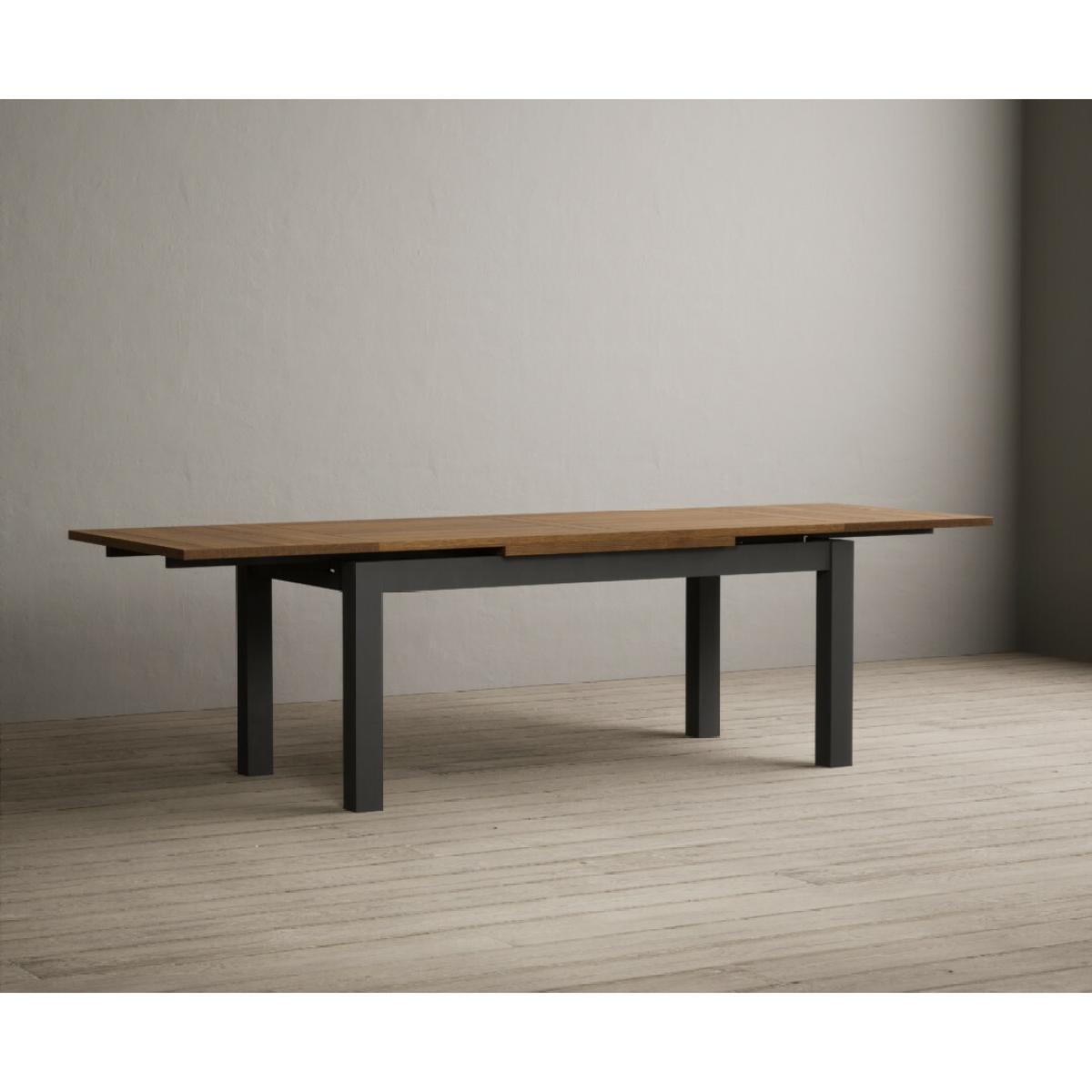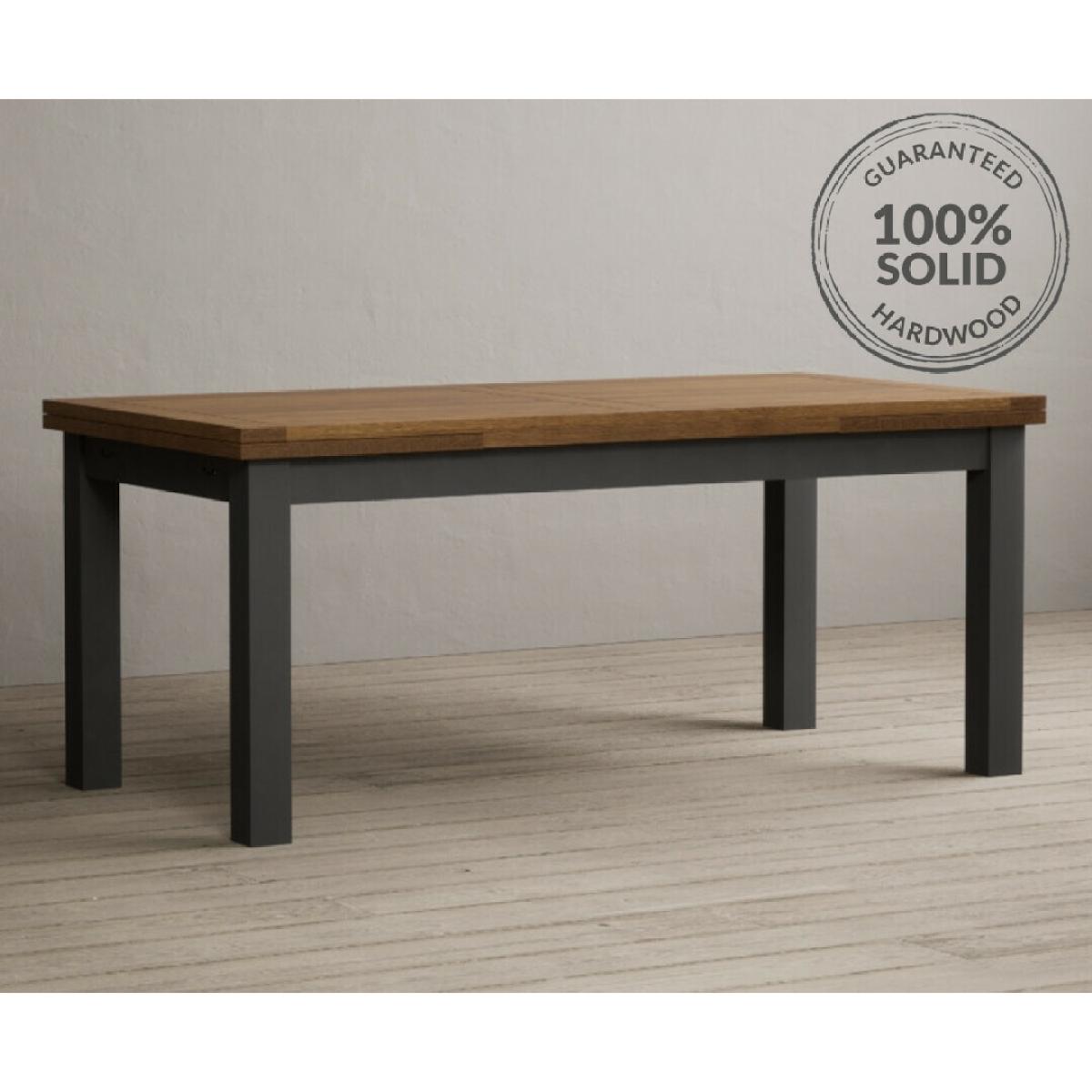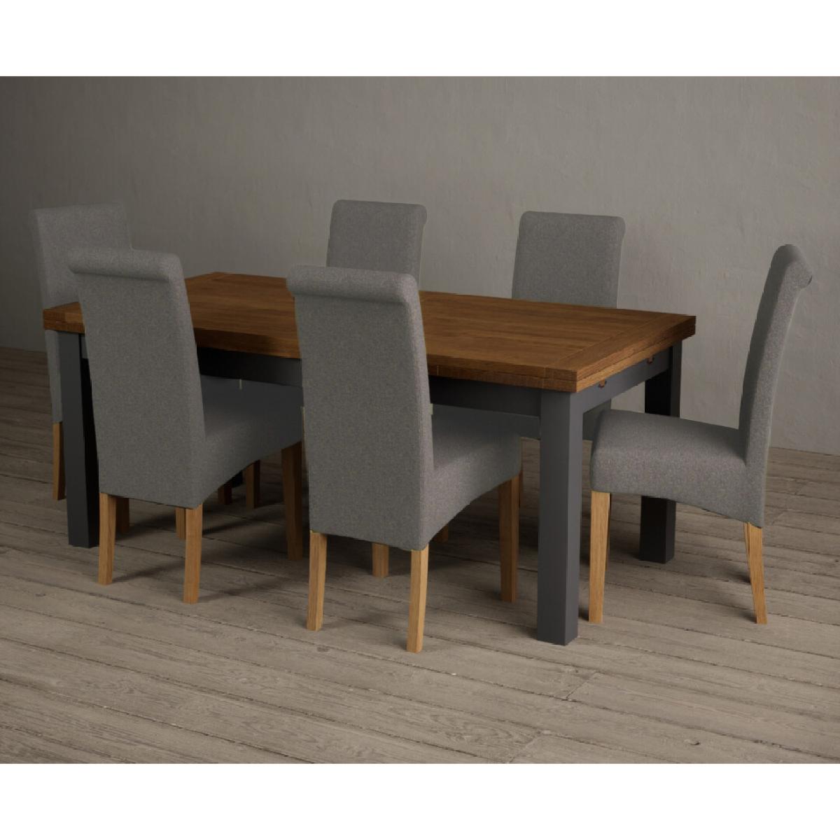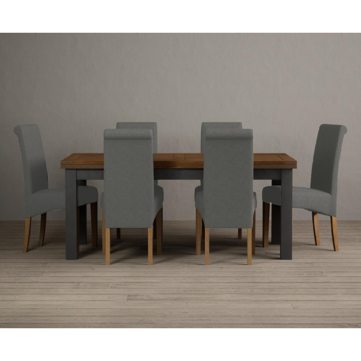 The Hampshire 180cm Oak and Charcoal Grey Extending Dining Table with Scroll Back Chairs is a stylish painted solid wood and solid oak extending dining set perfect for every occasion.