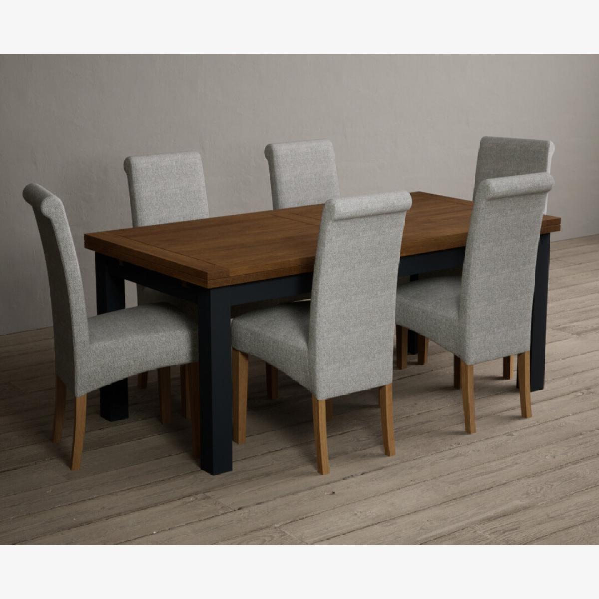 Extending Hampshire 180cm Oak and Dark Blue Dining Table With 10 Charcoal Grey Scroll Back Chairs