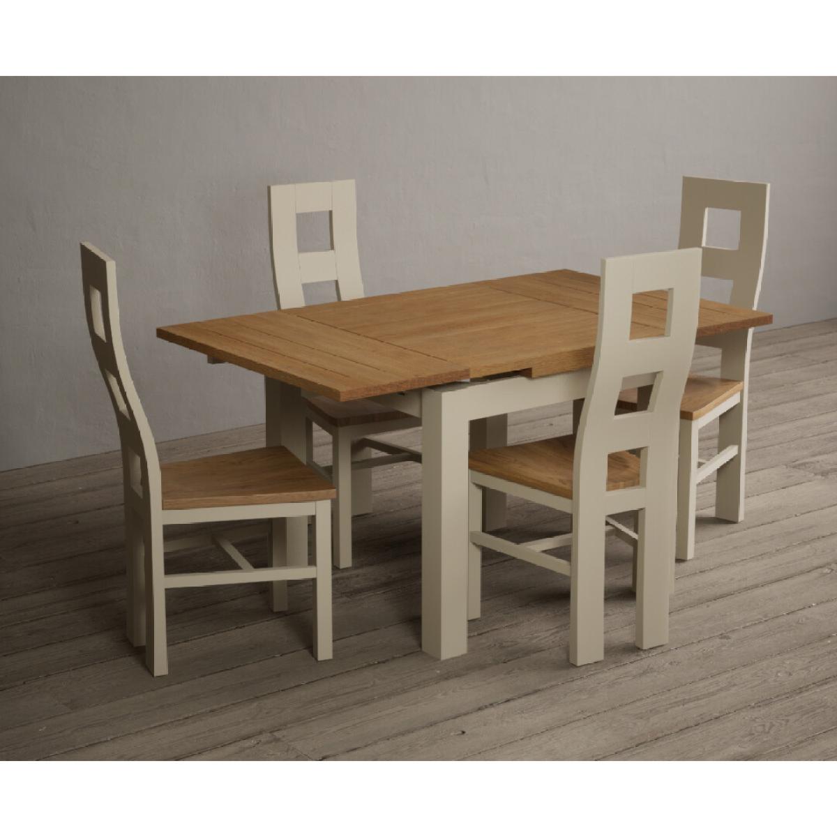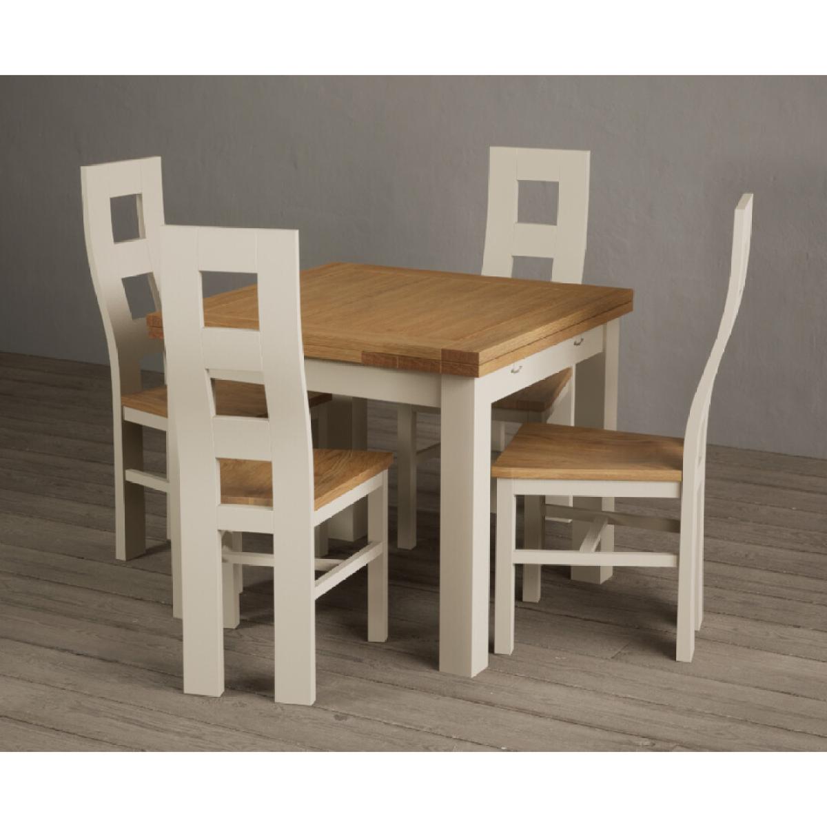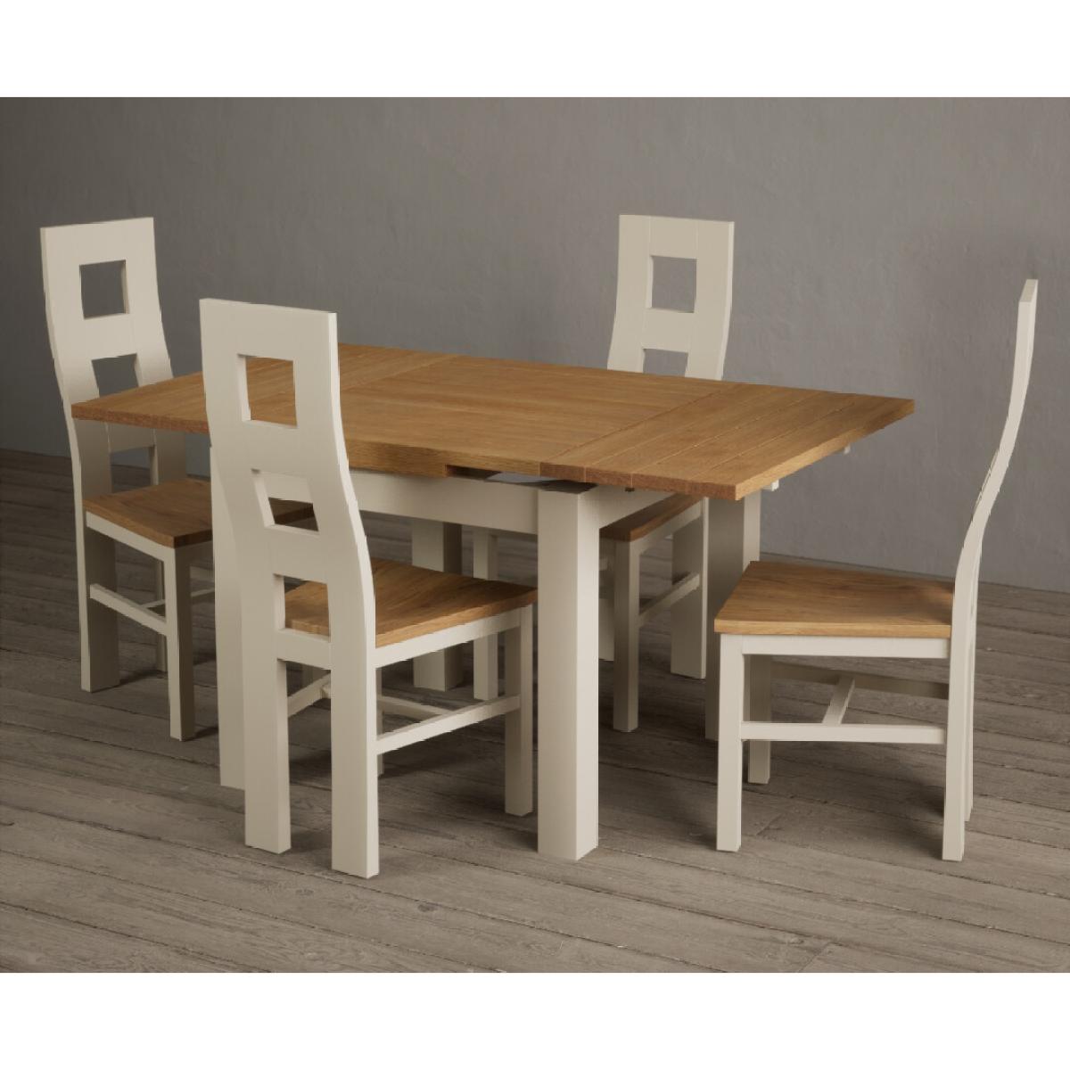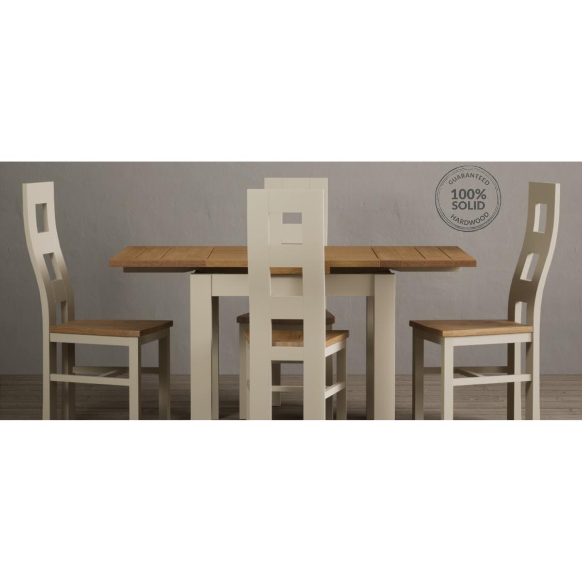 Extending Hampshire 90cm Oak and Cream Dining Table with 4 Oak Flow Back Chairs