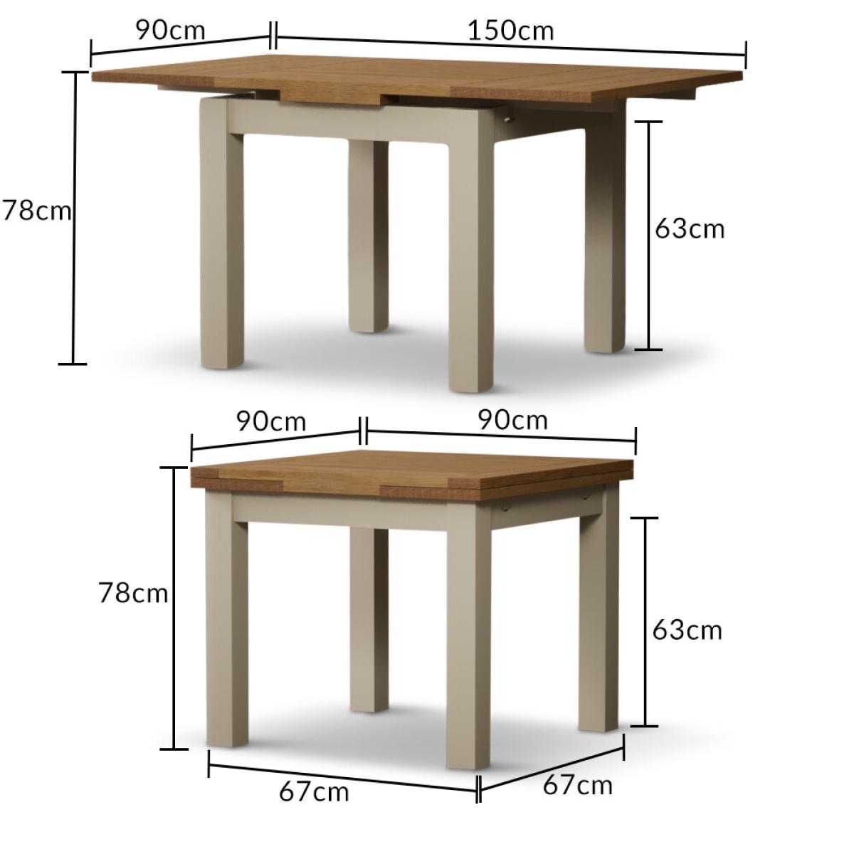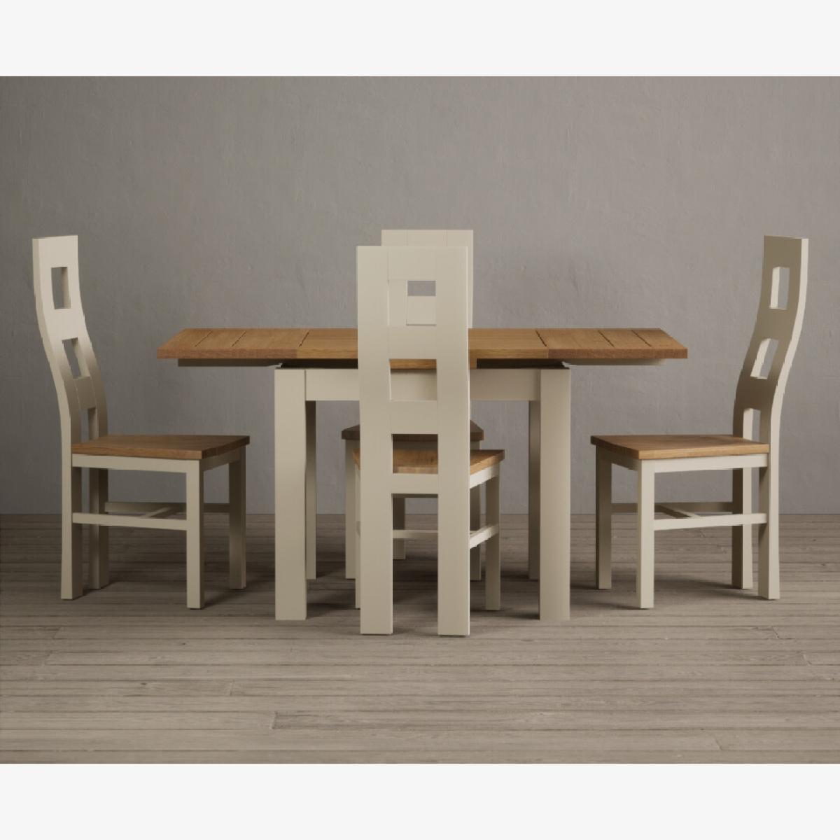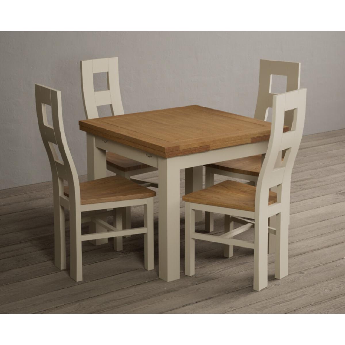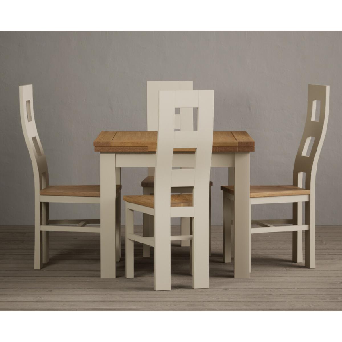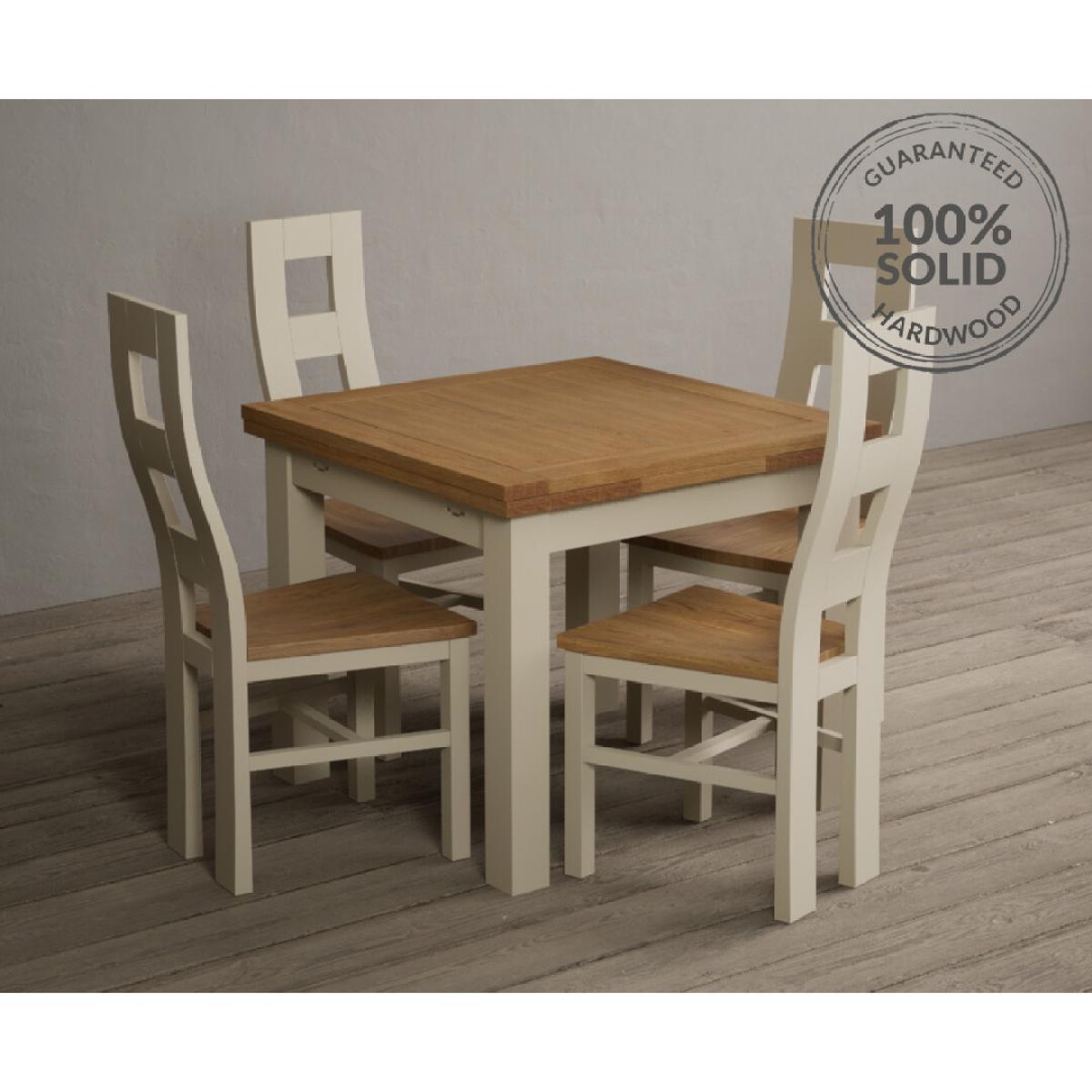 Extending Hampshire 90cm Oak and Cream Dining Table with 4 Oak Flow Back Chairs