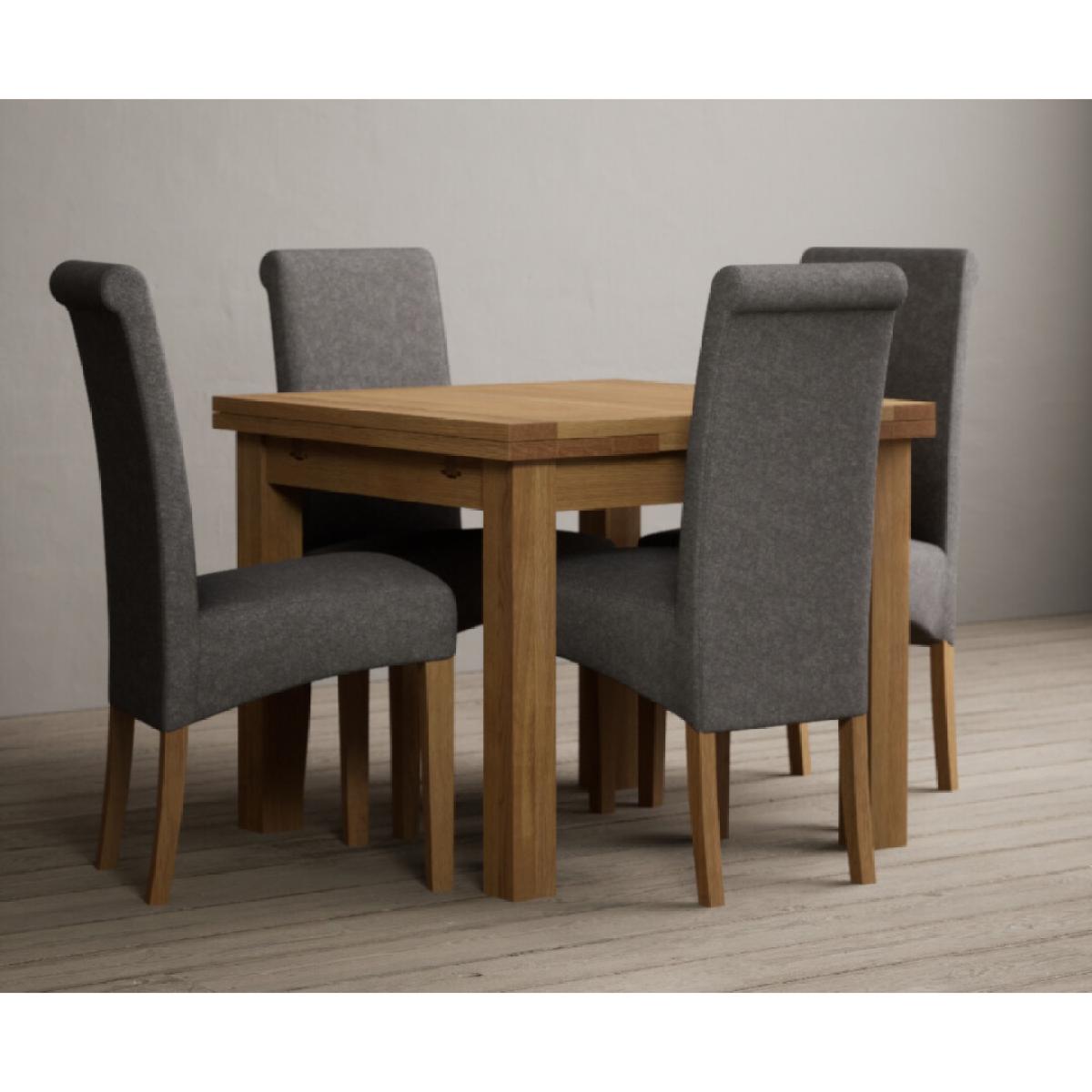 Extending Hampshire 90cm Solid Oak Dining Table With 6 Grey Scroll Back Chairs