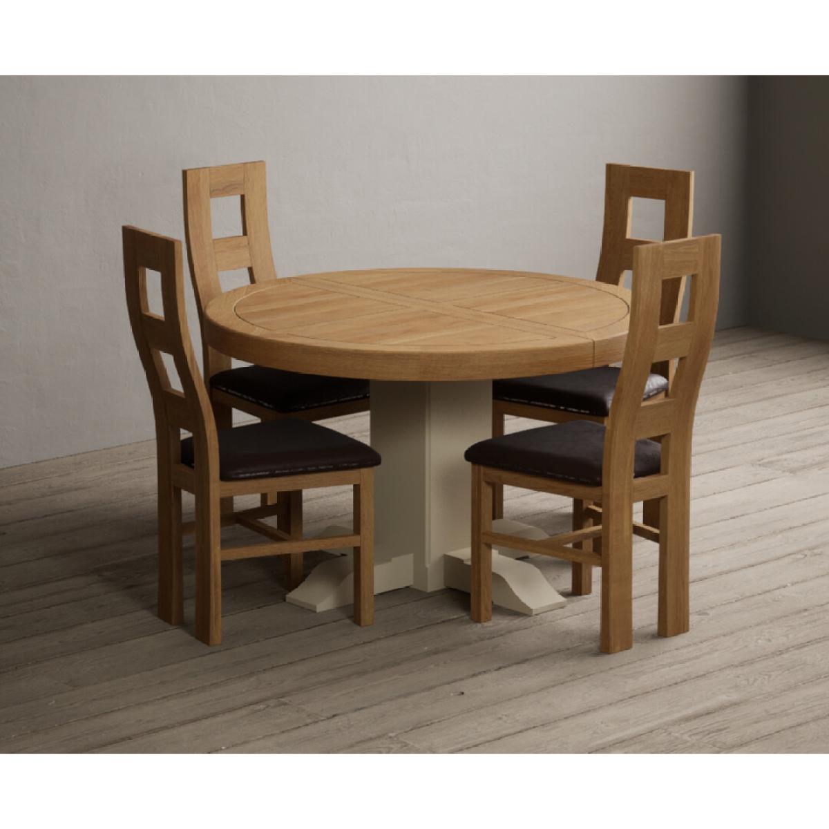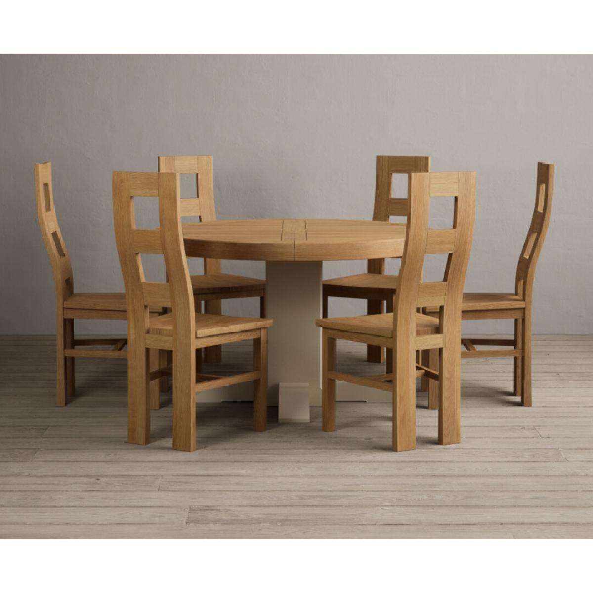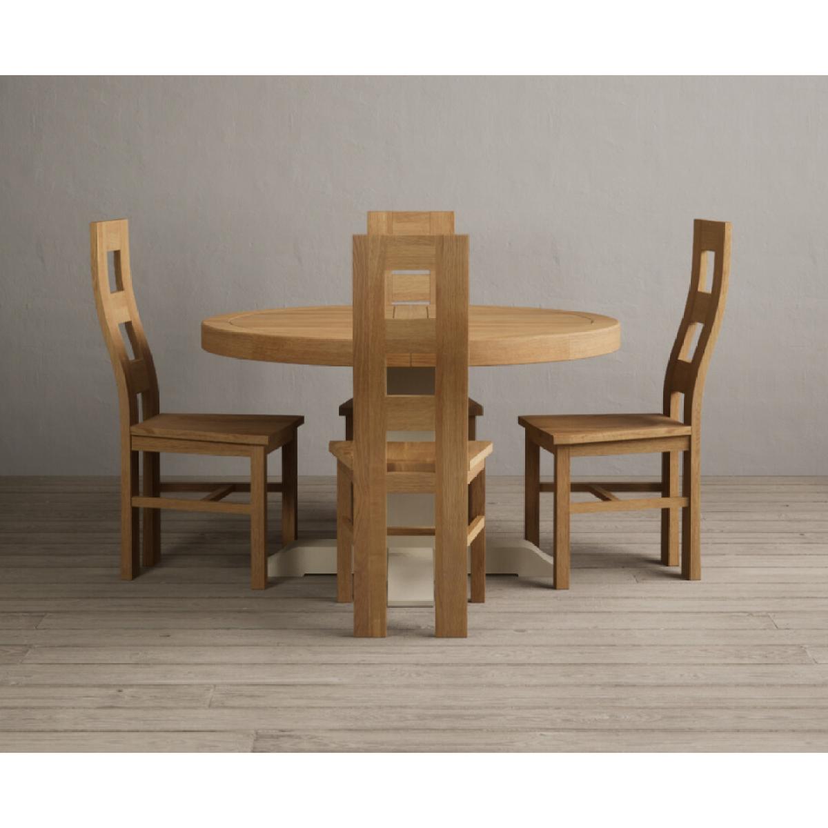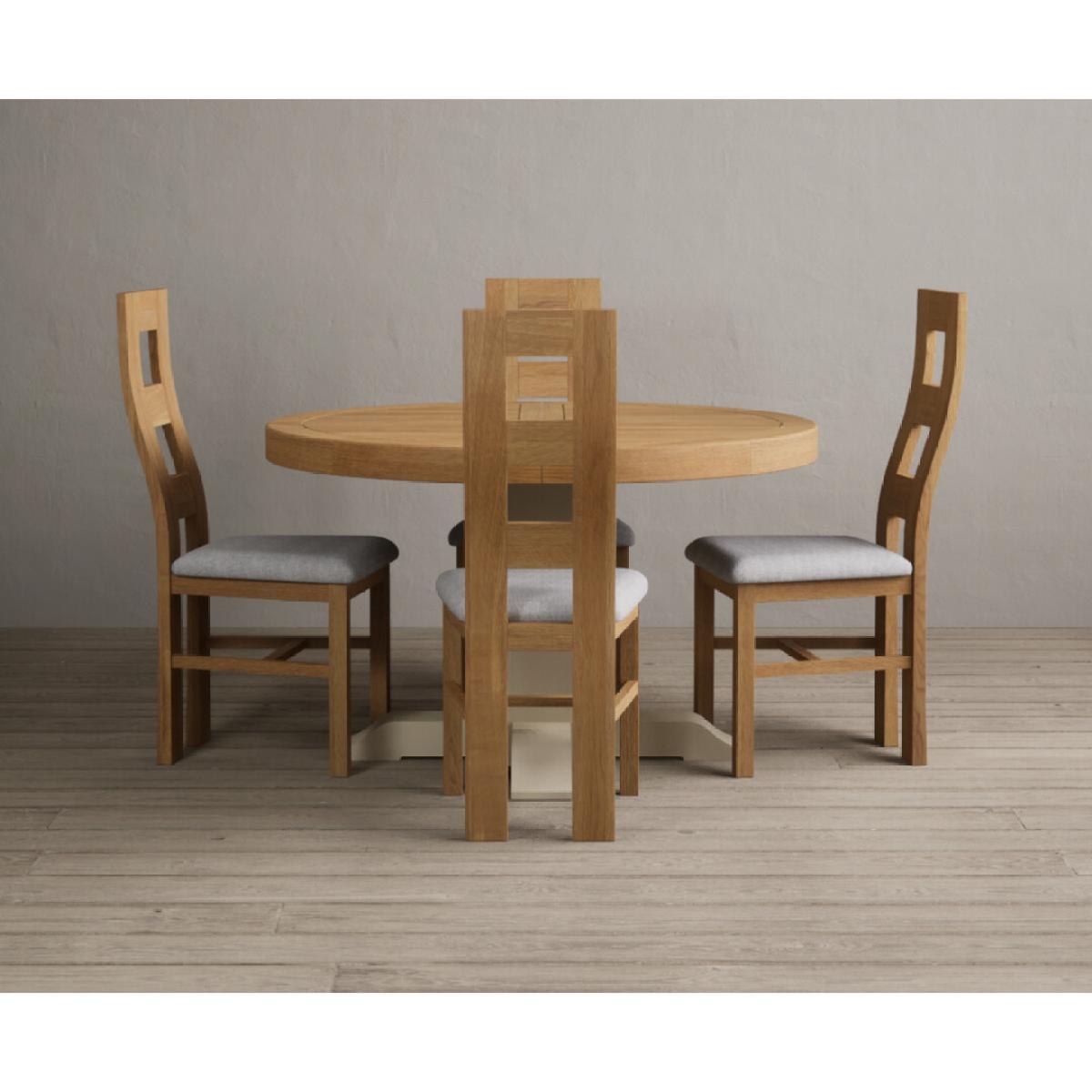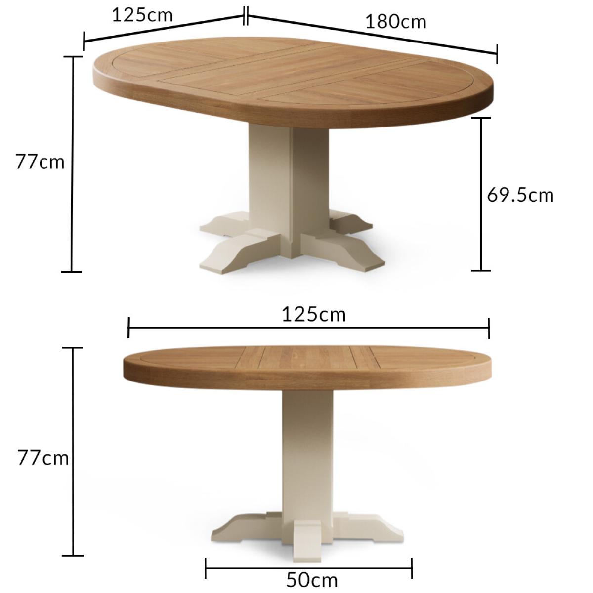 Extending Helmsley Oak and Cream Painted Pedestal Dining Table with 4 Linen Natural Chairs