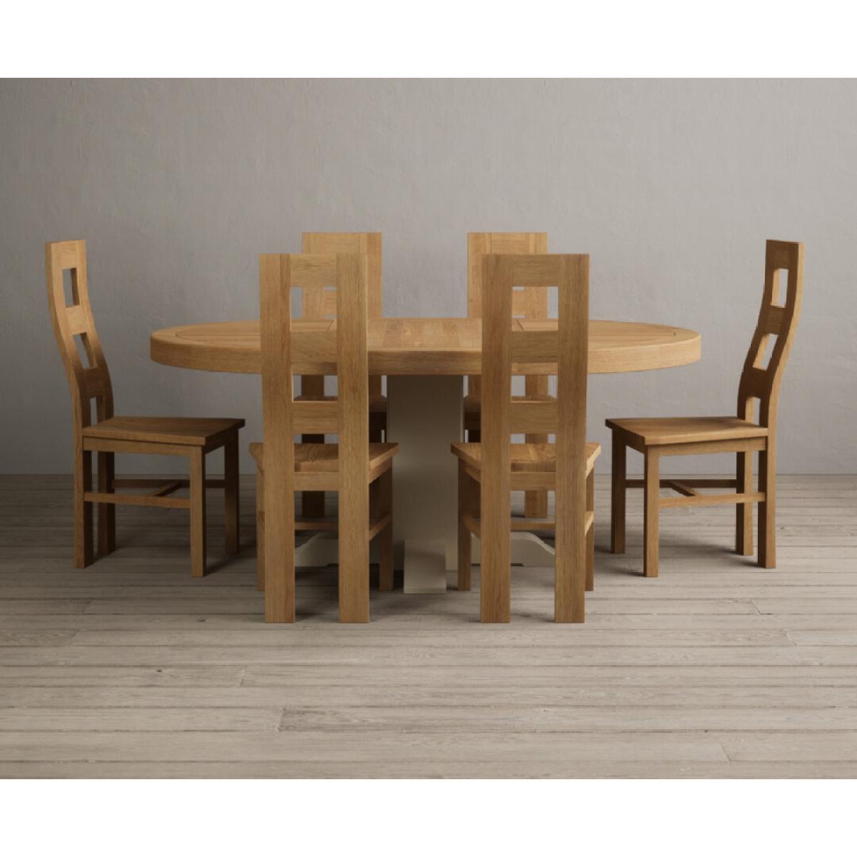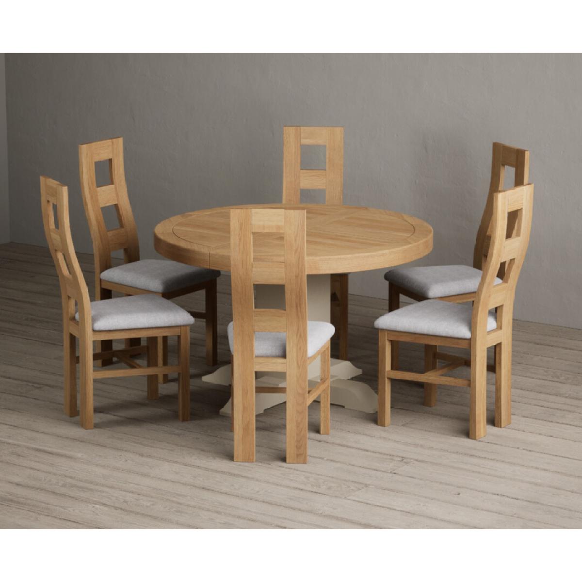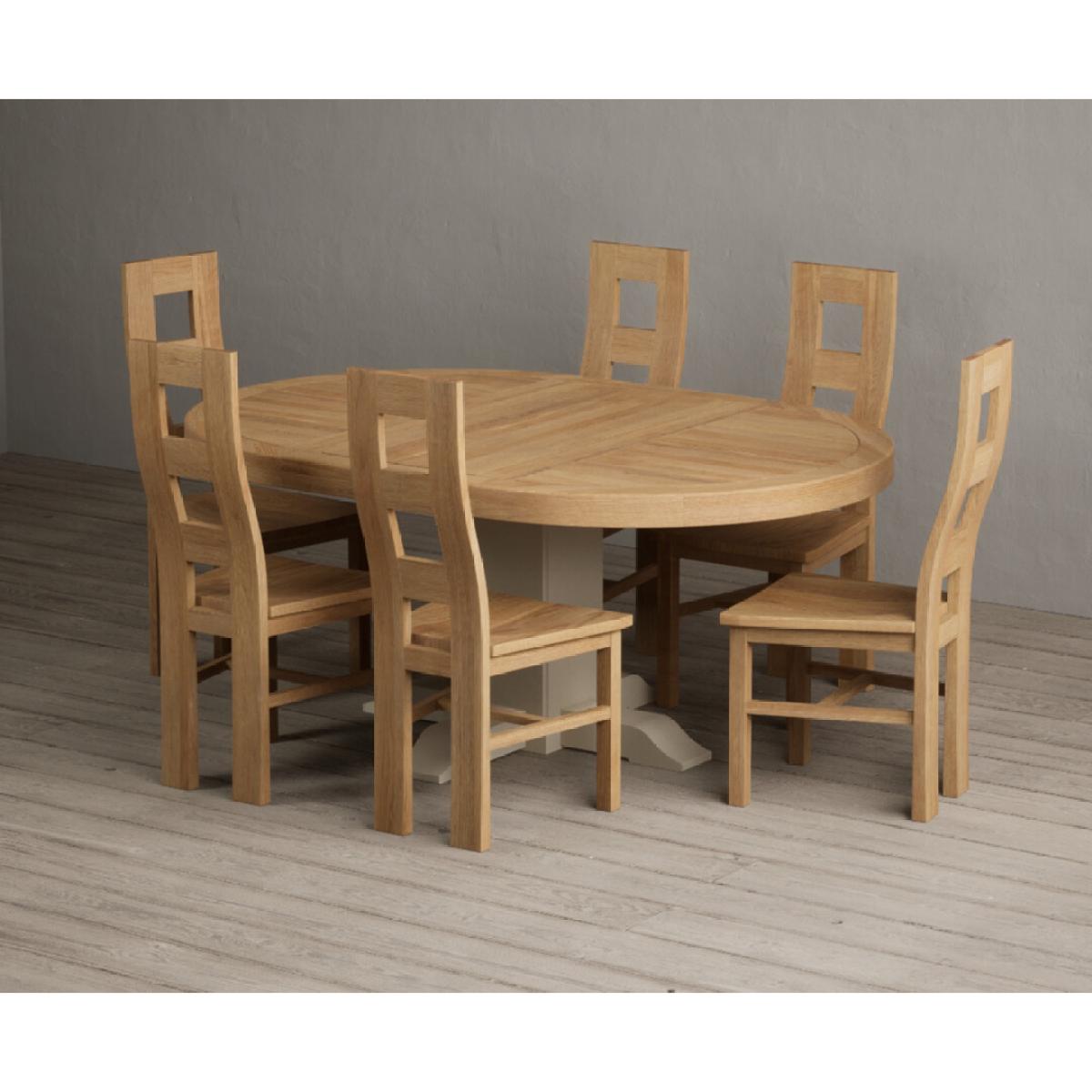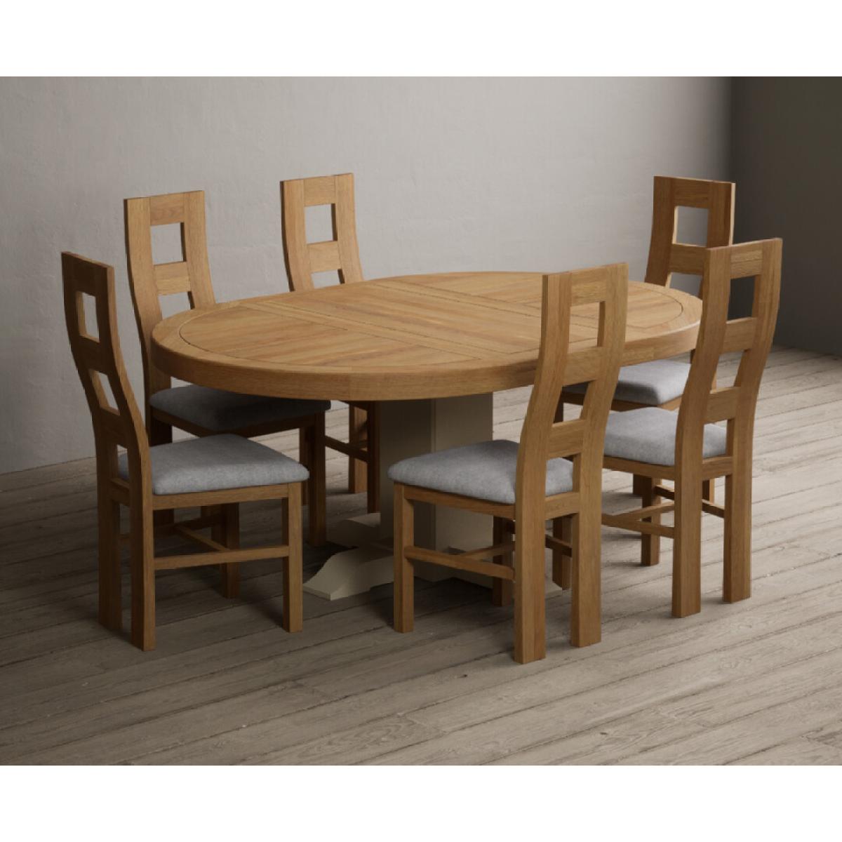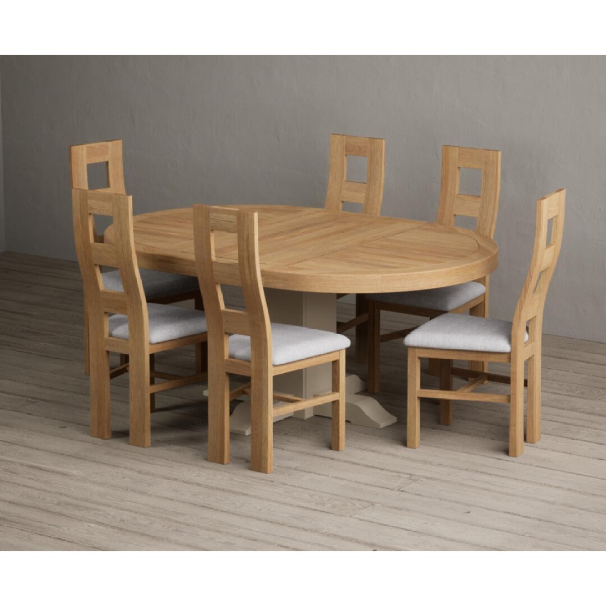 Extending Helmsley Oak and Cream Painted Pedestal Dining Table with 4 Linen Natural Chairs