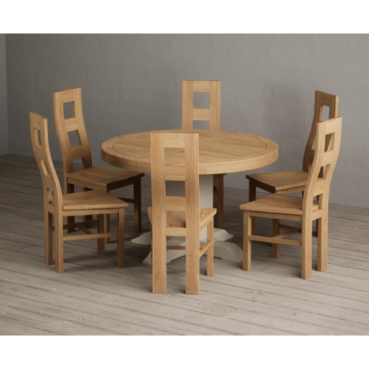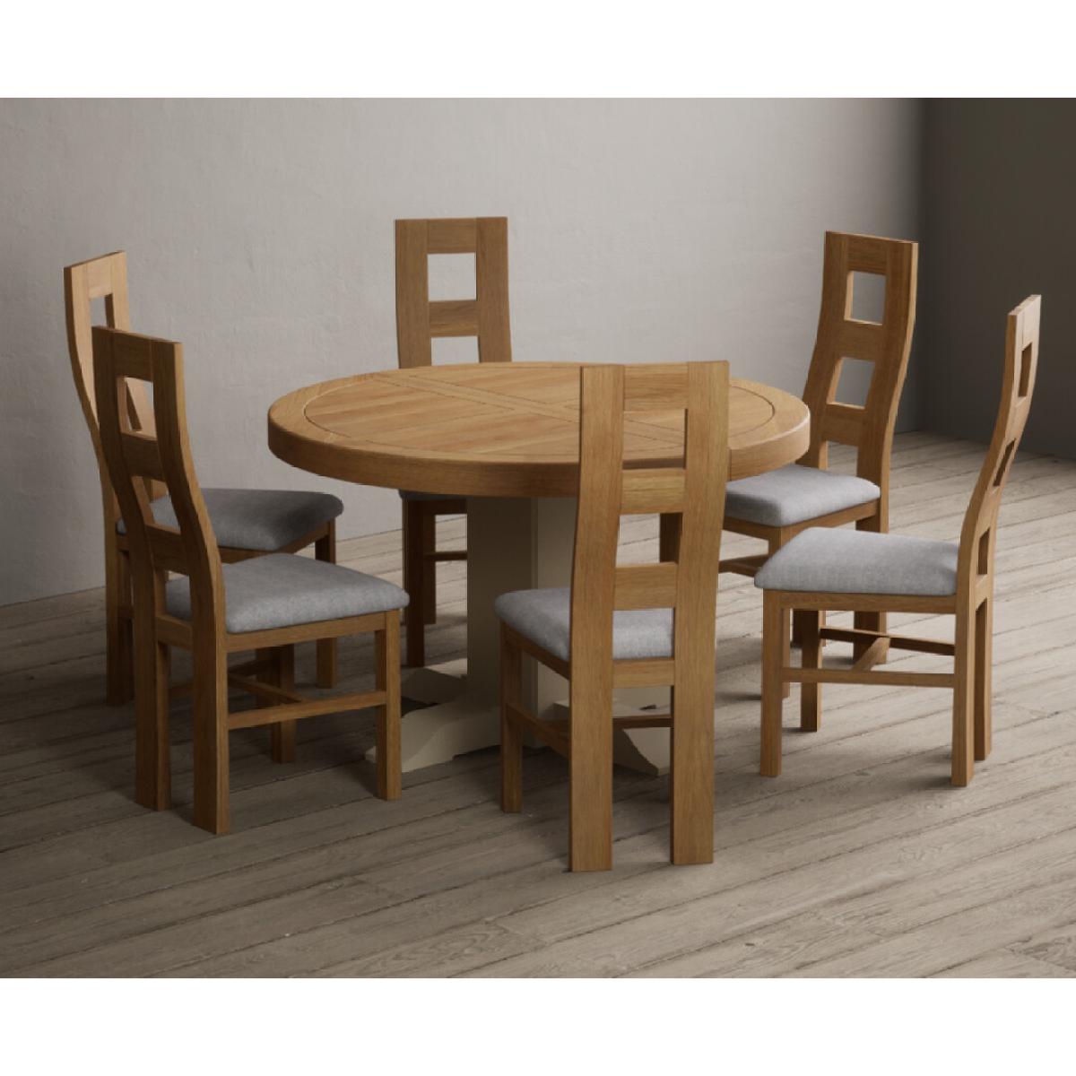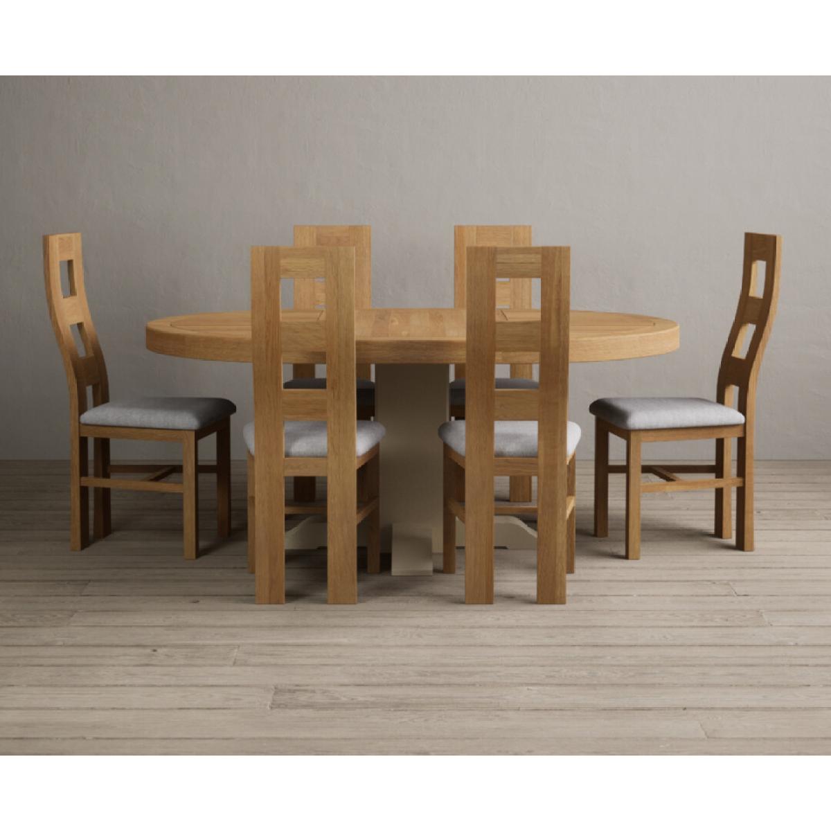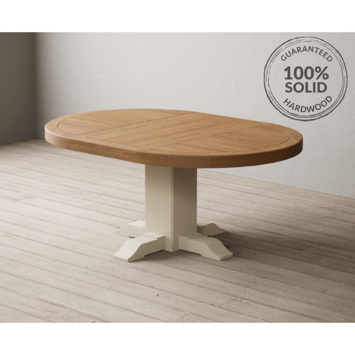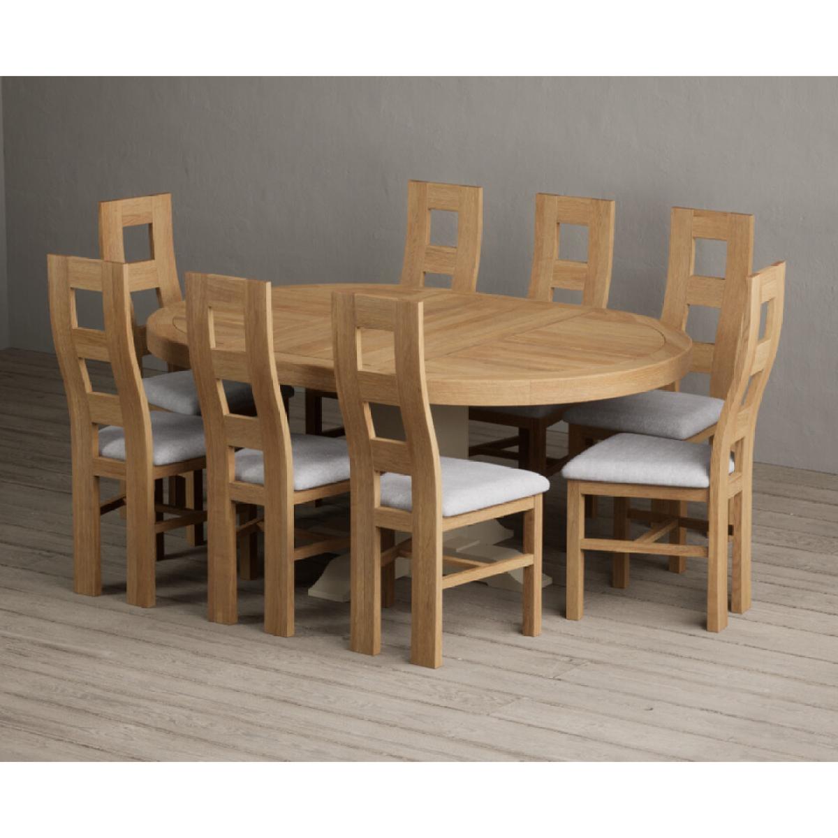 Extending Helmsley Oak and Cream Painted Pedestal Dining Table with 4 Linen Natural Chairs