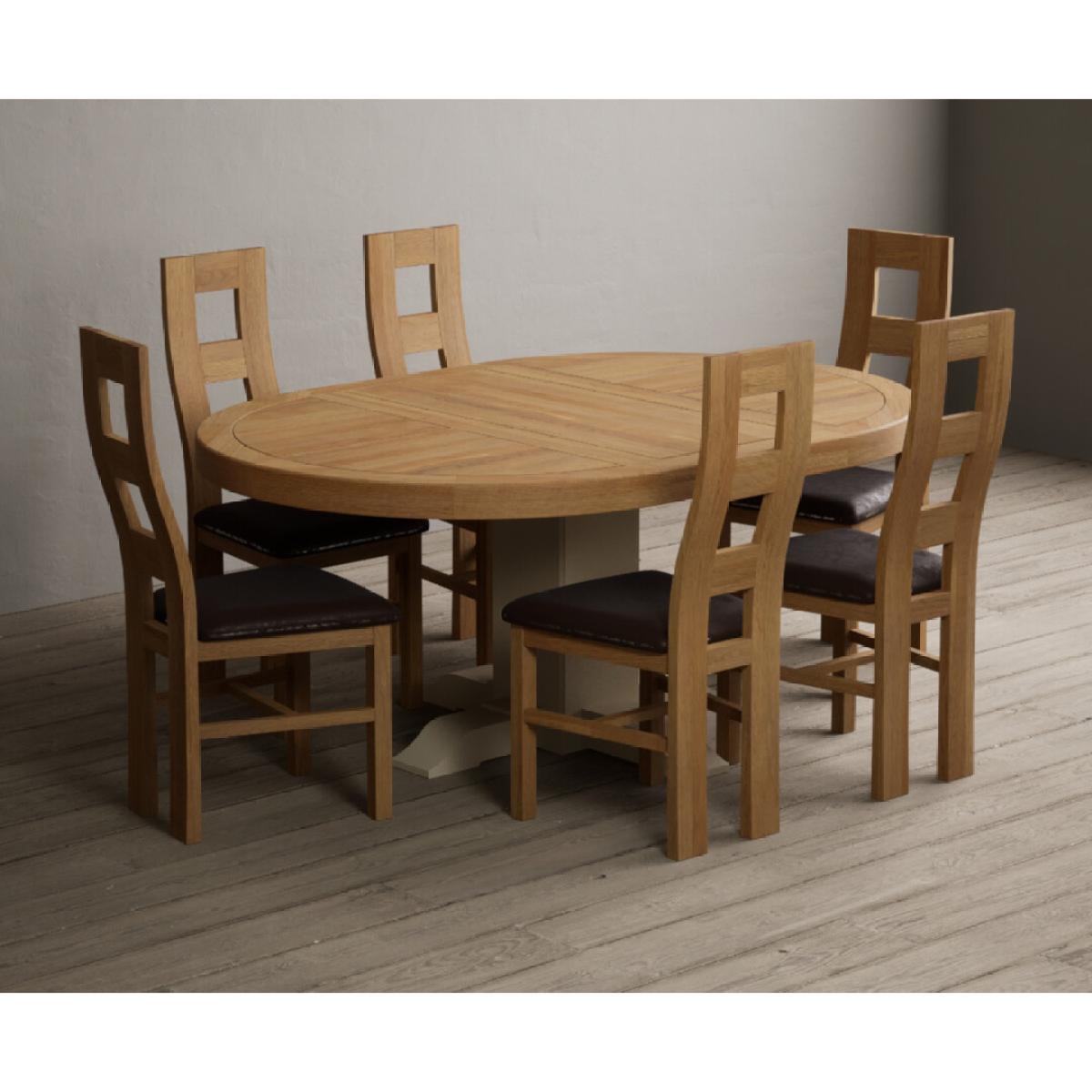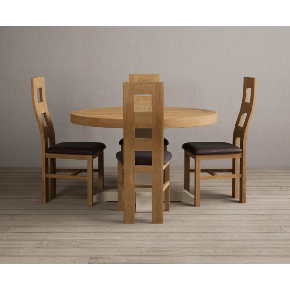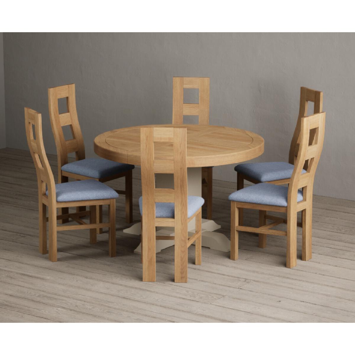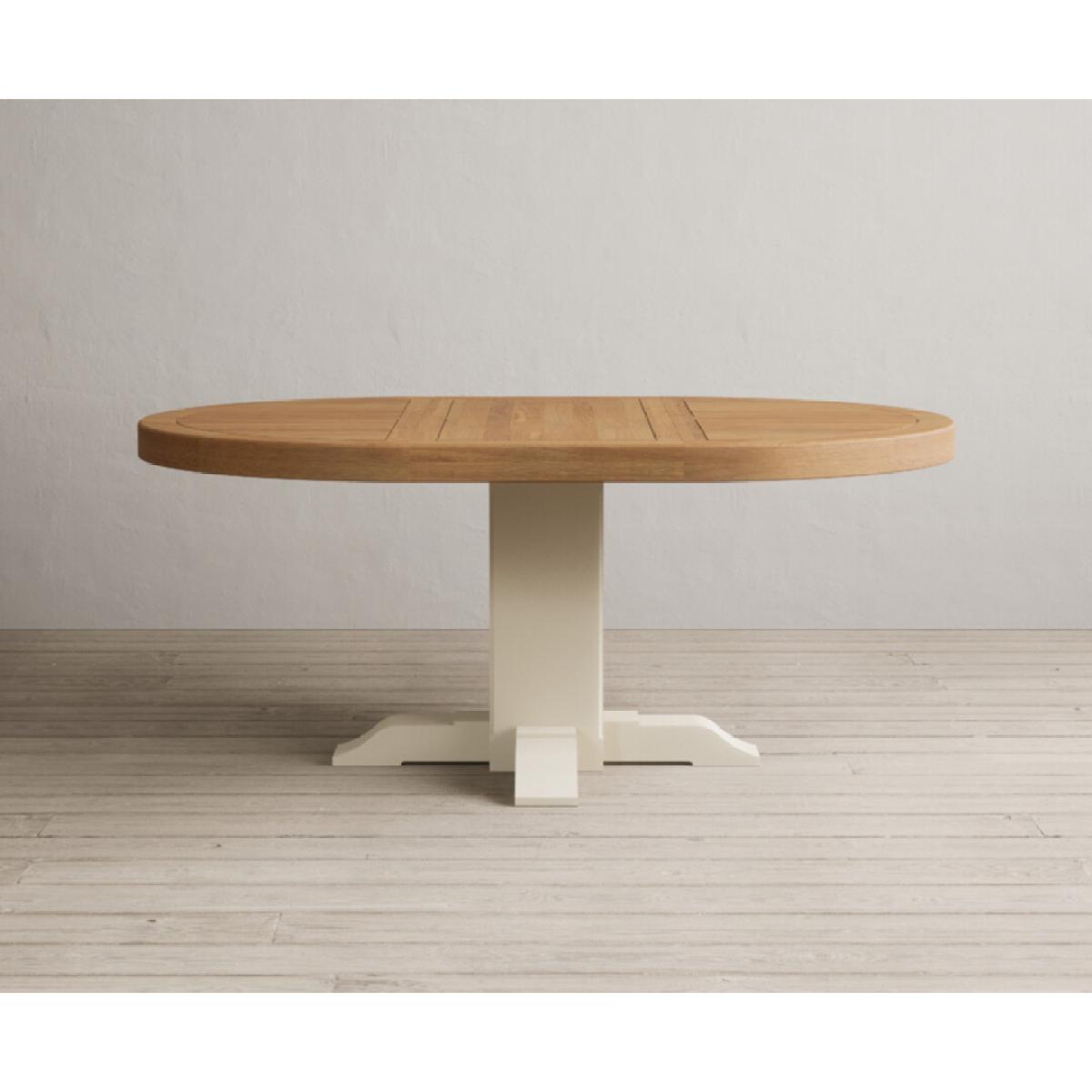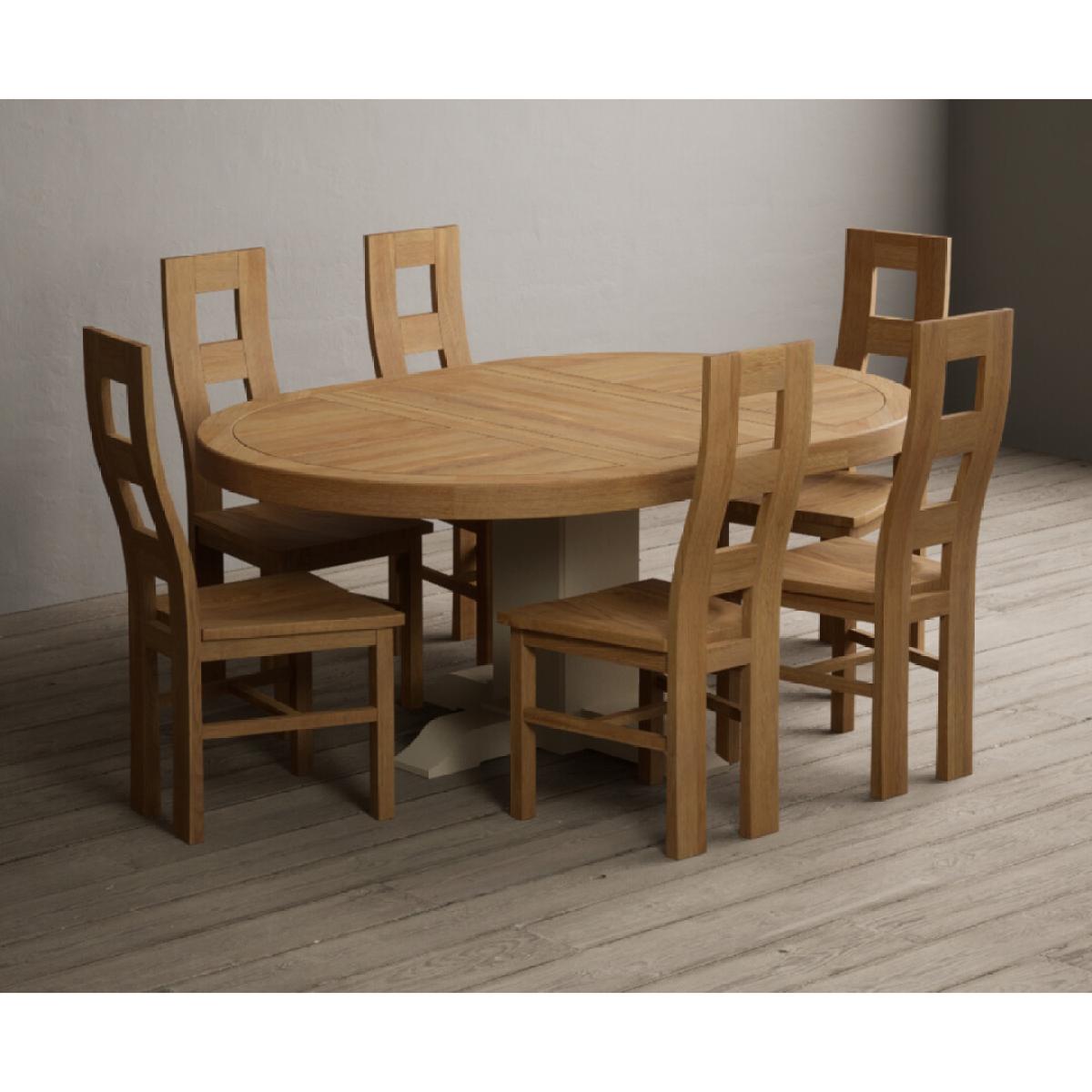 Extending Helmsley Oak and Cream Painted Pedestal Dining Table with 4 Linen Natural Chairs