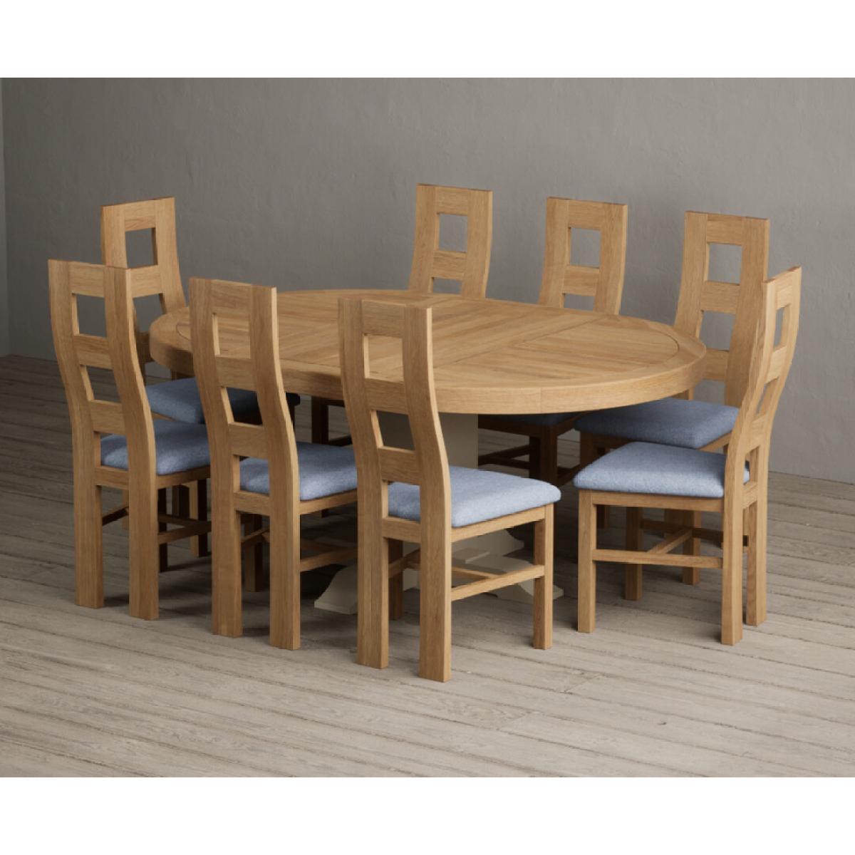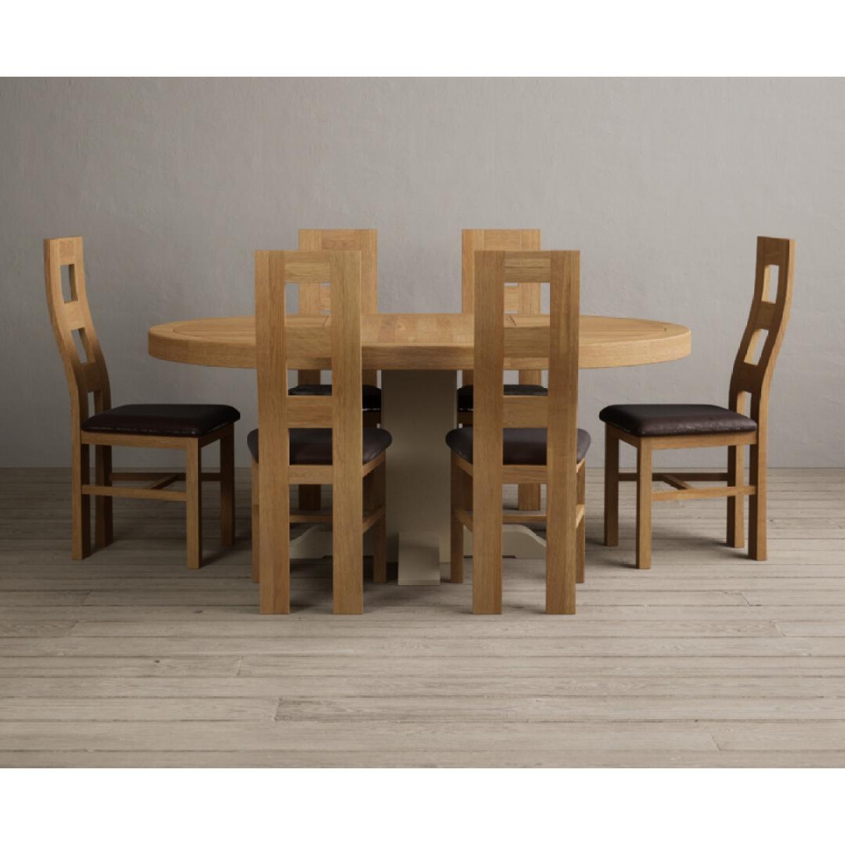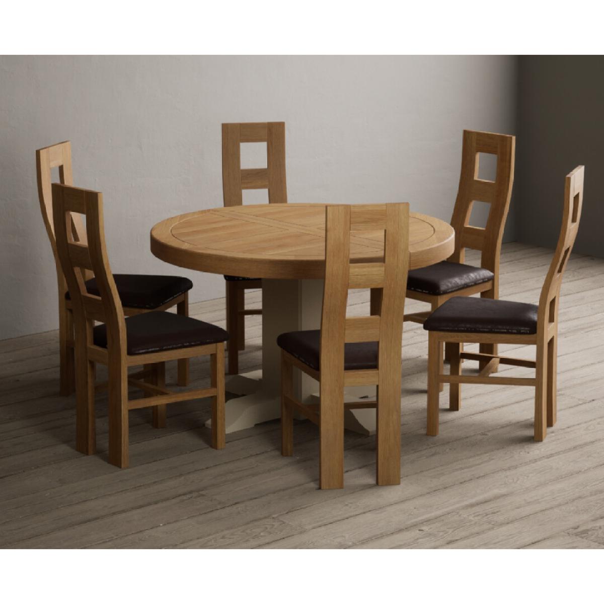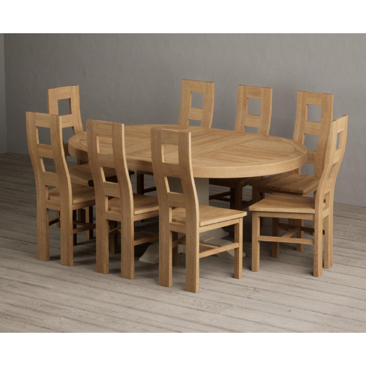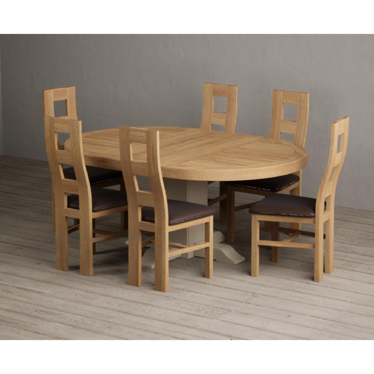 Extending Helmsley Oak and Cream Painted Pedestal Dining Table with 4 Linen Natural Chairs