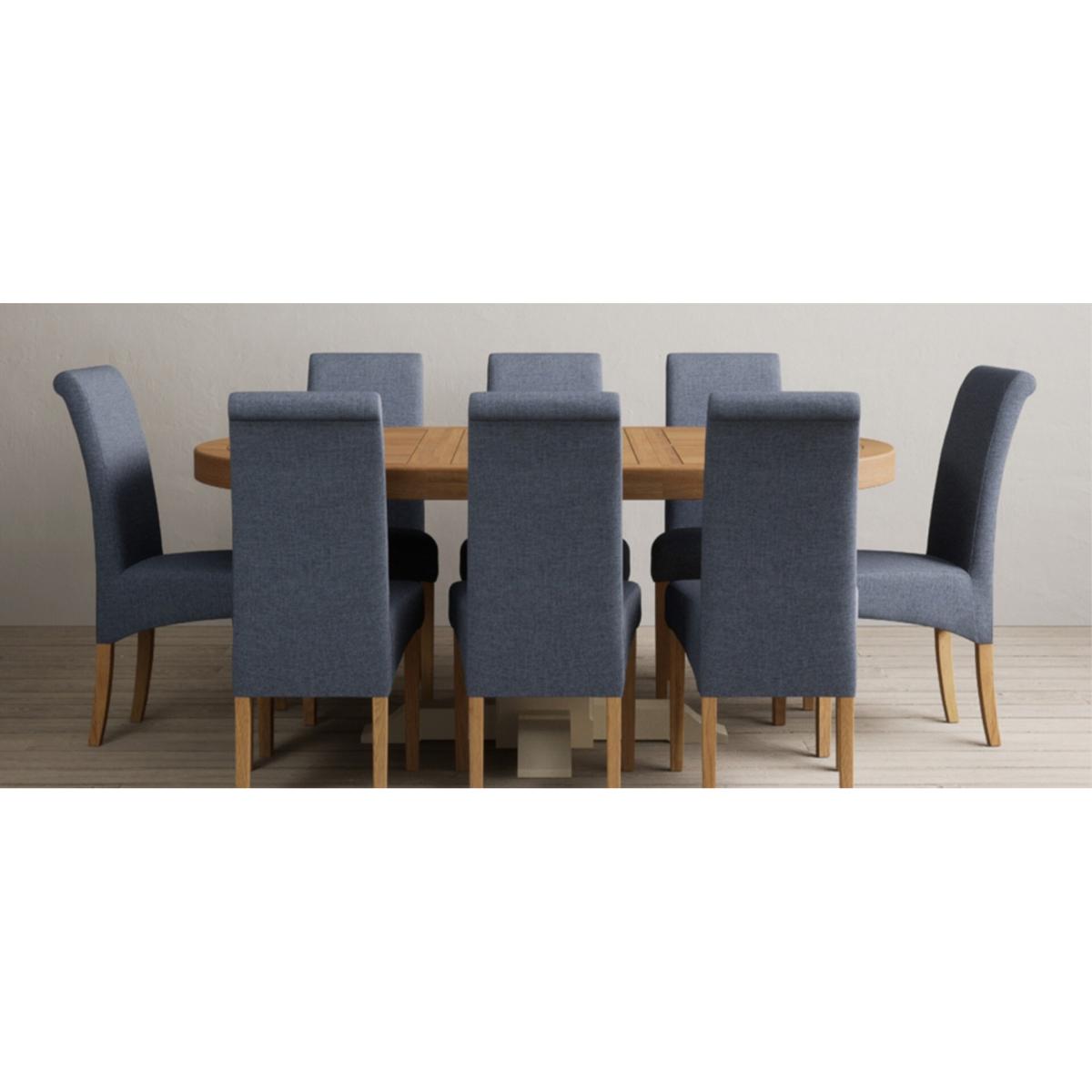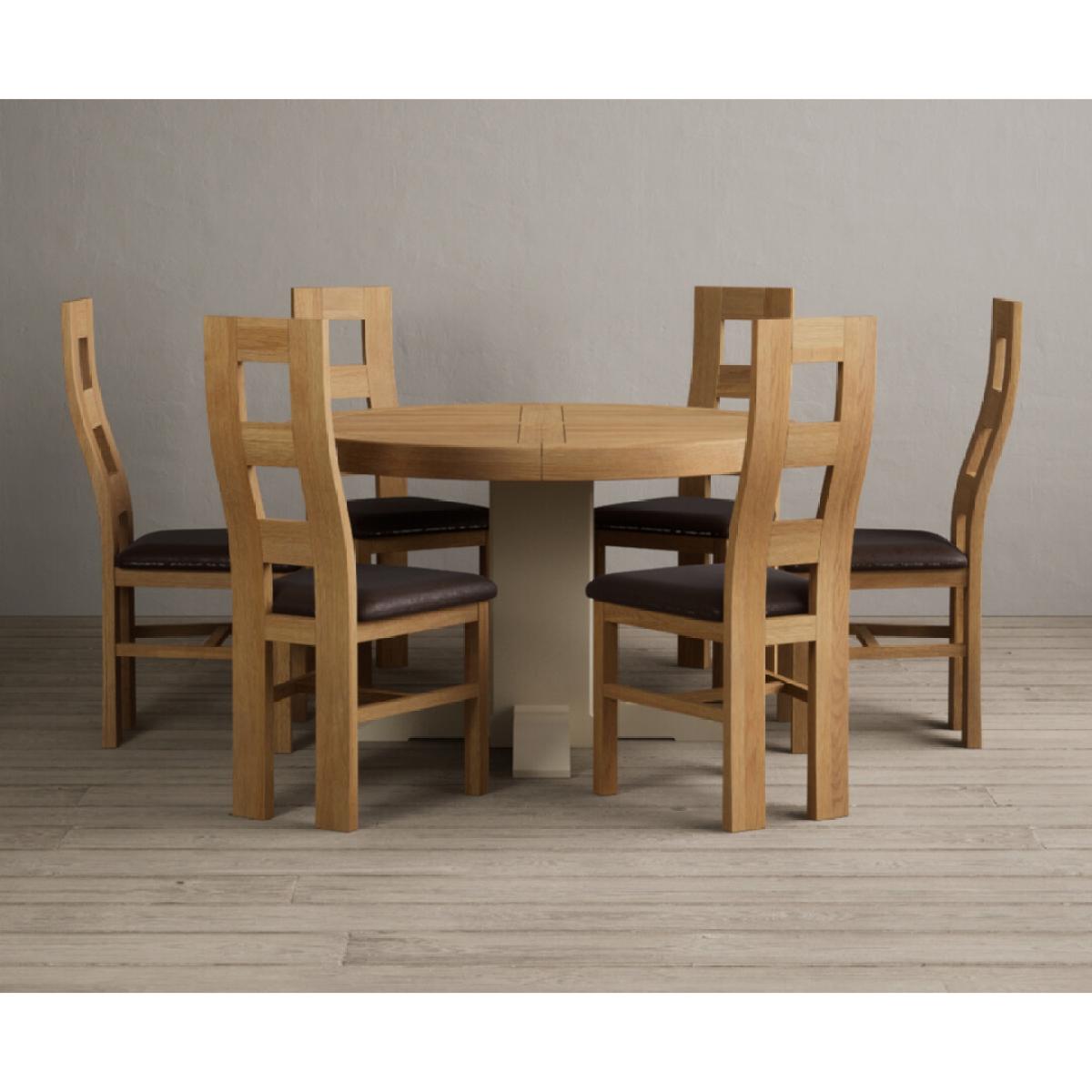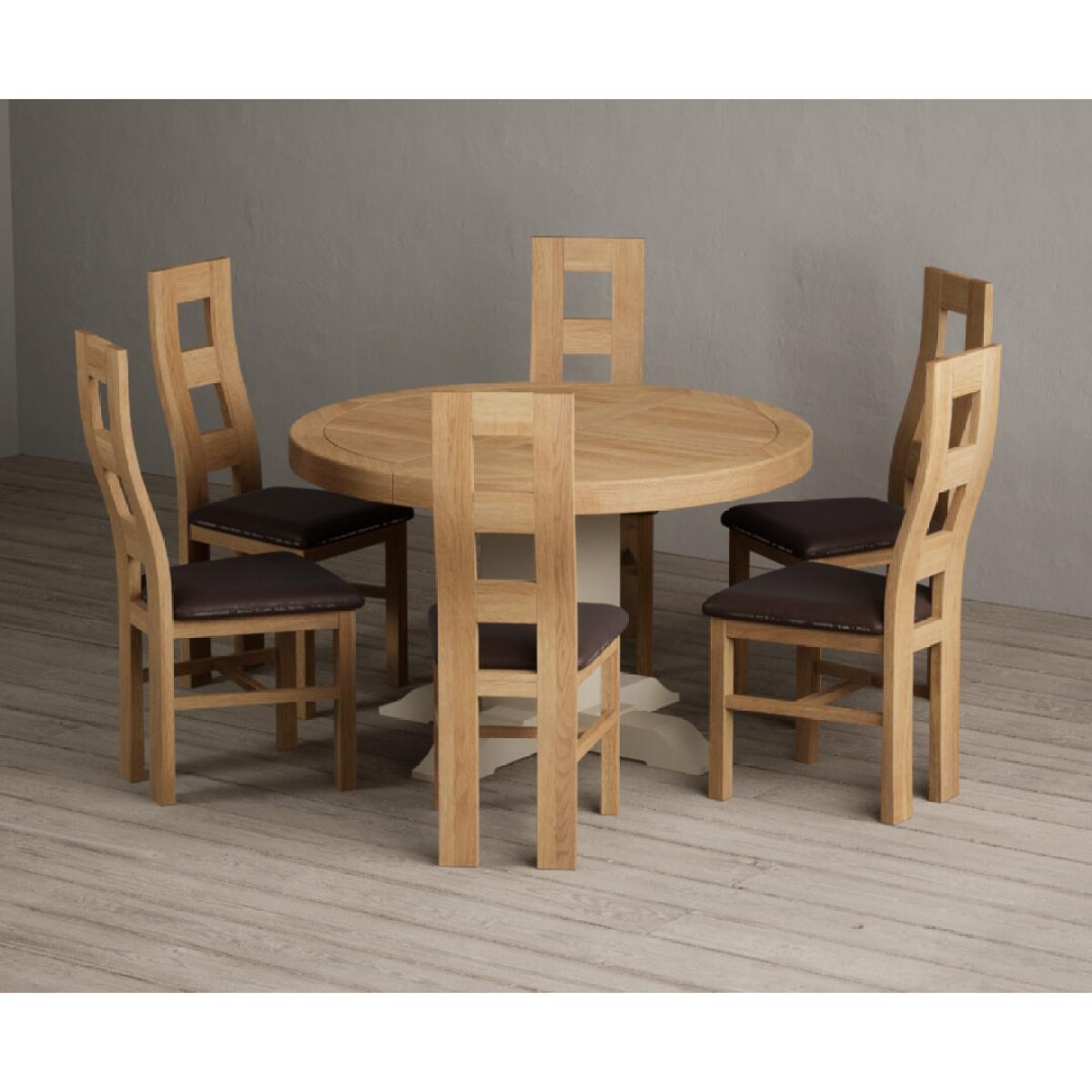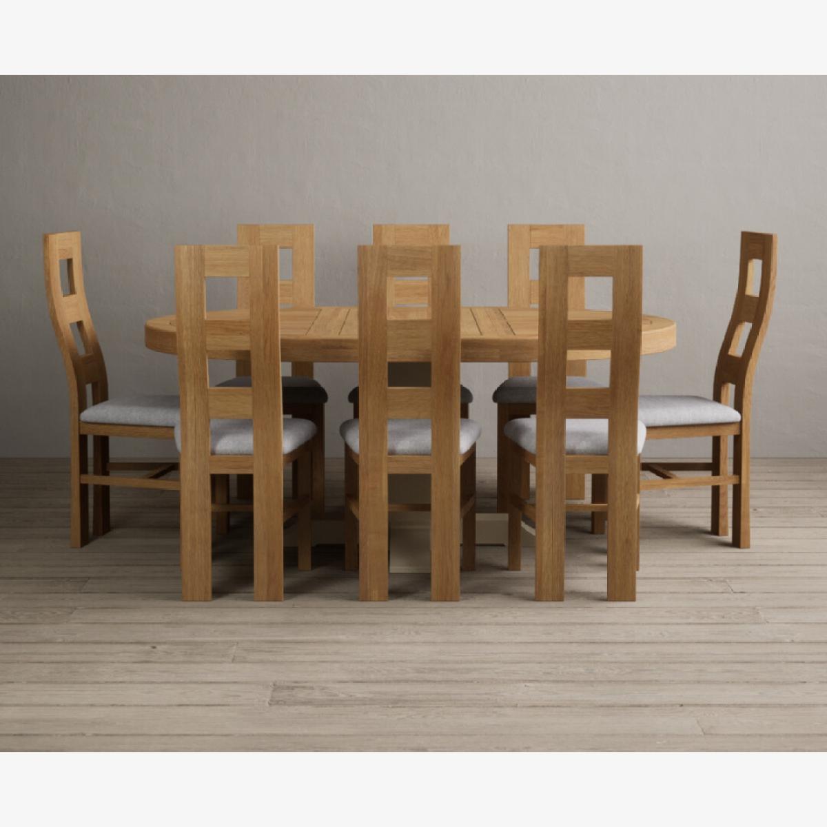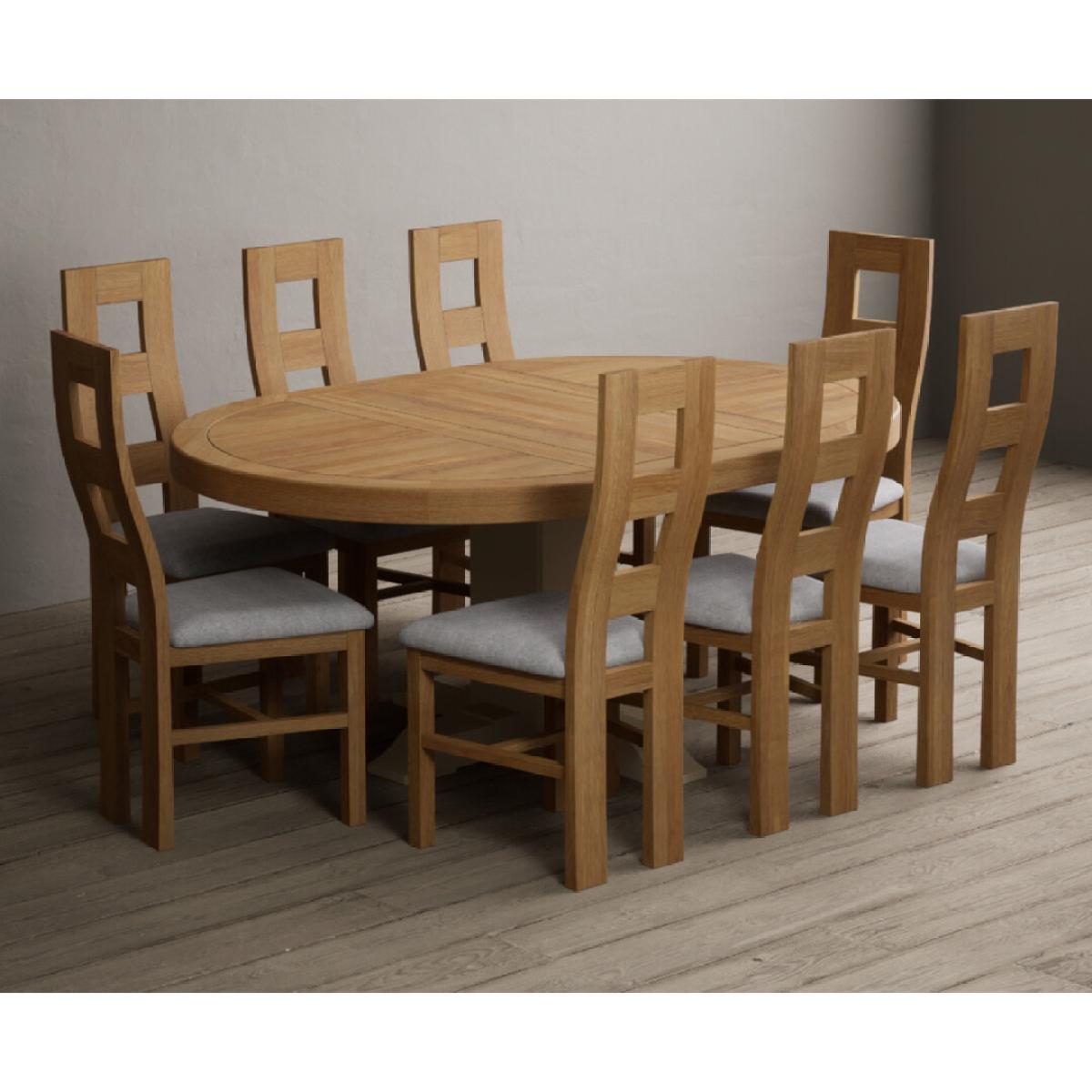 Extending Helmsley Oak and Cream Painted Pedestal Dining Table with 4 Linen Natural Chairs