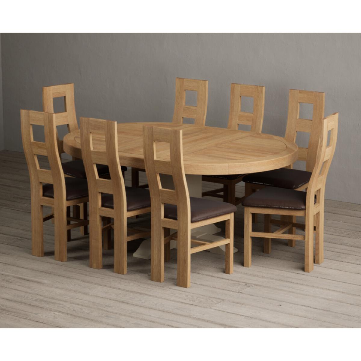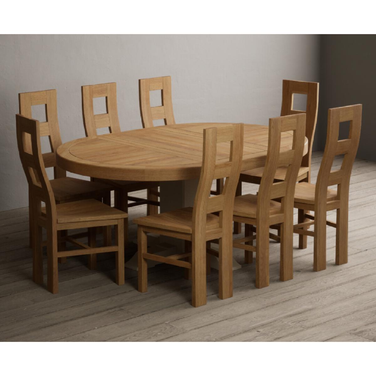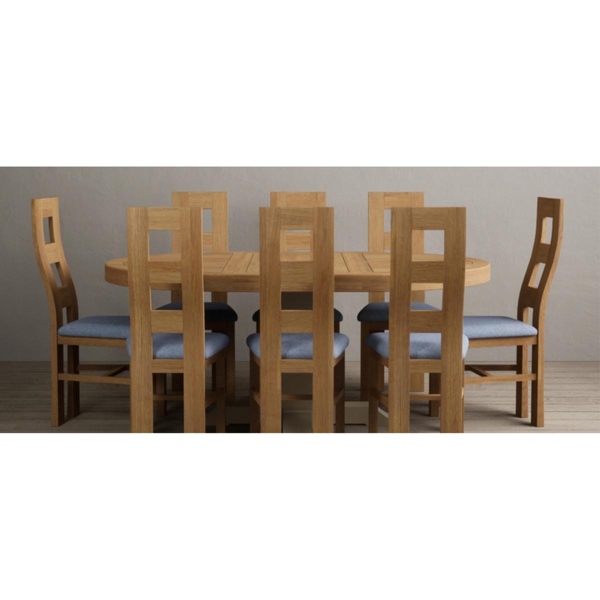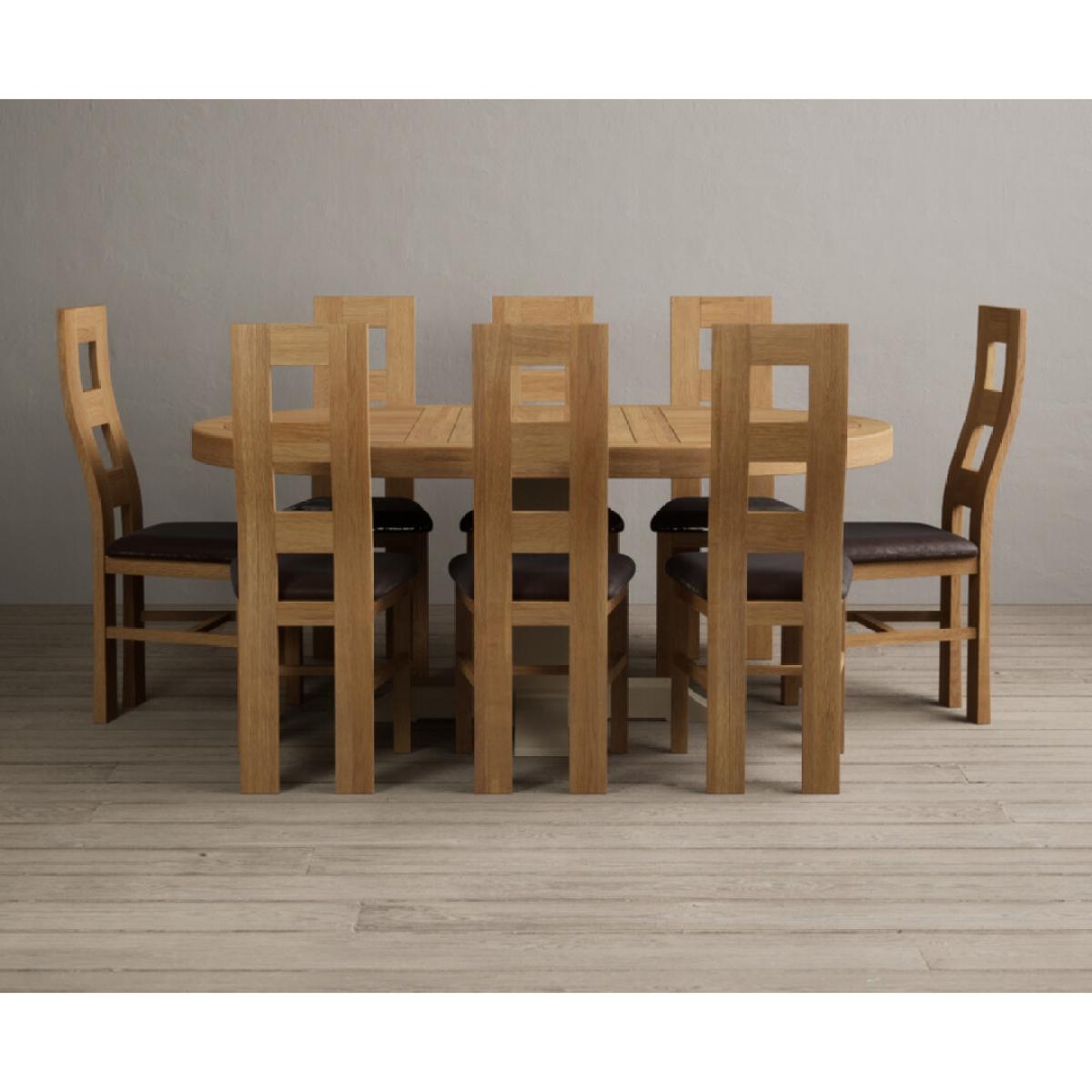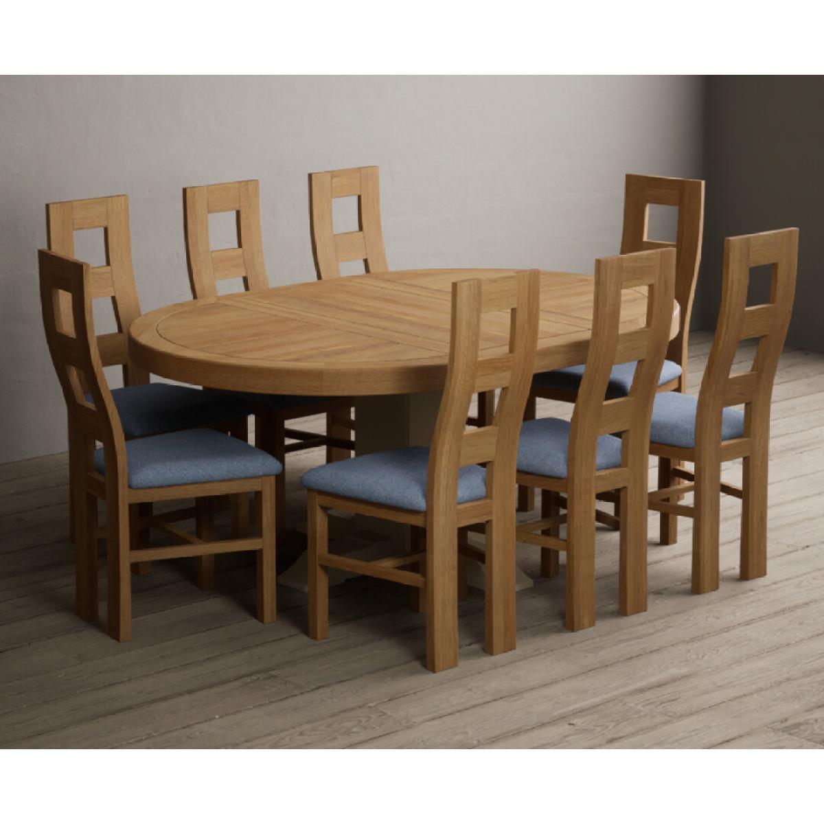 Extending Helmsley Oak and Cream Painted Pedestal Dining Table with 4 Linen Natural Chairs
