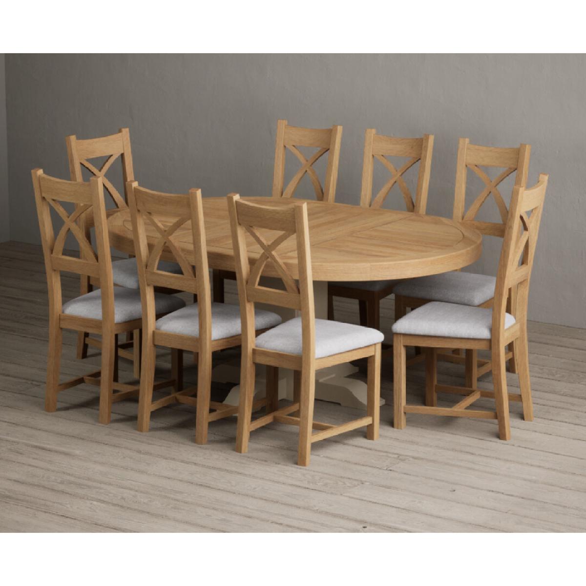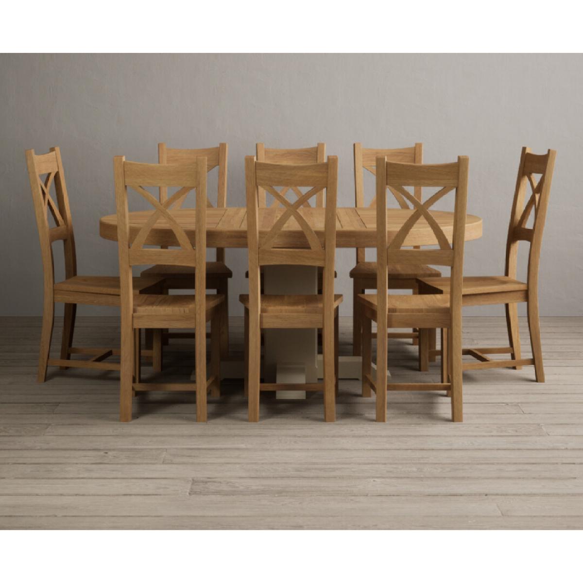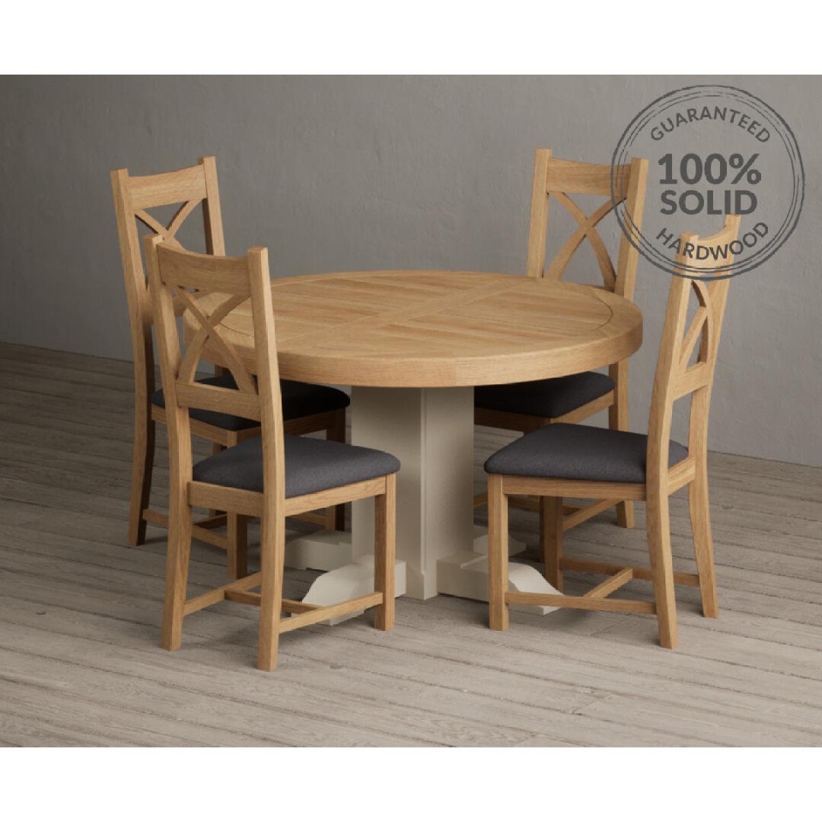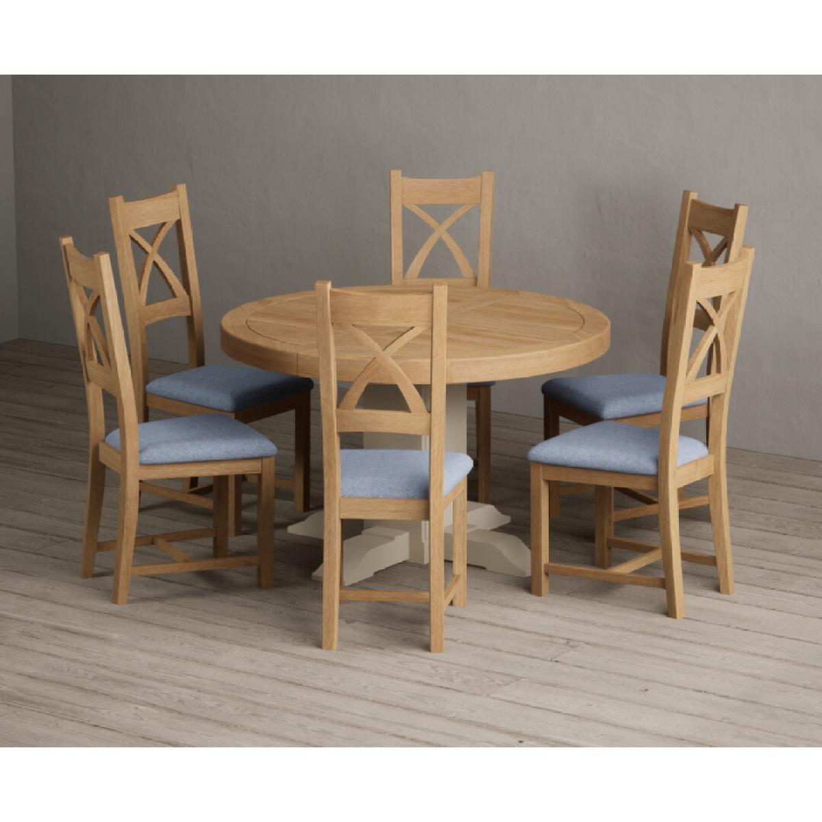 Extending Helmsley Oak and Cream Painted Pedestal Dining Table with X Back Chairs