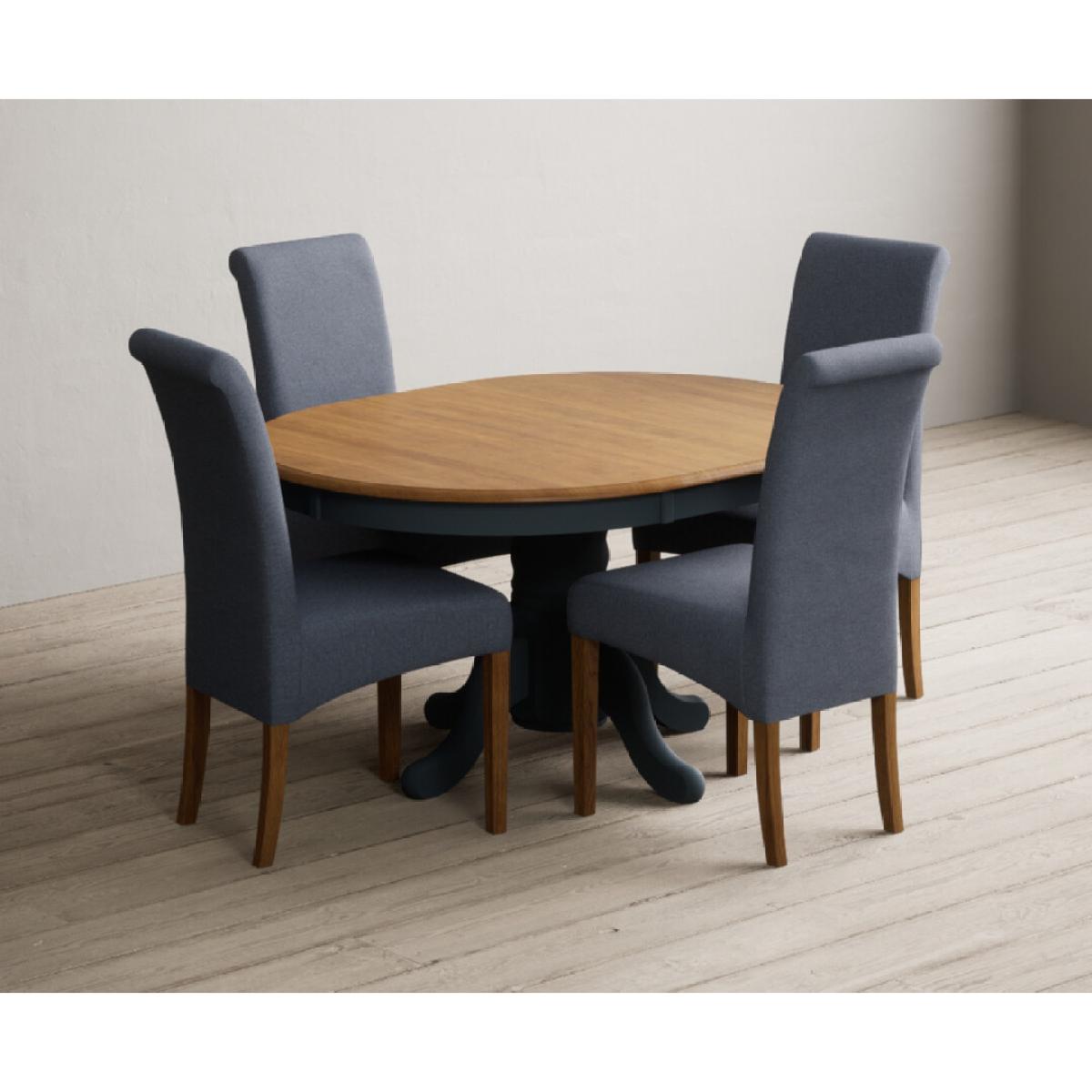 I love this one for its versatility and streamlined design. The Extending Hertford is ideal for both casual family meals and more formal dinner parties, thanks to its extendable feature which provides flexibility for larger gatherings. Its combination of oak and dark blue painted finish makes it a great anchor piece in a variety of interiors-be it contemporary, Scandi-inspired, or even a transitional style. For styling tips, pair it with neutral or pastel chairs to soften the look, or add textured tableware and textiles for a more inviting, layered feel. It works particularly well in open-plan kitchens or dining rooms that embrace clean lines and modern aesthetics, but with the right accessories, it can easily enhance more traditional settings too.