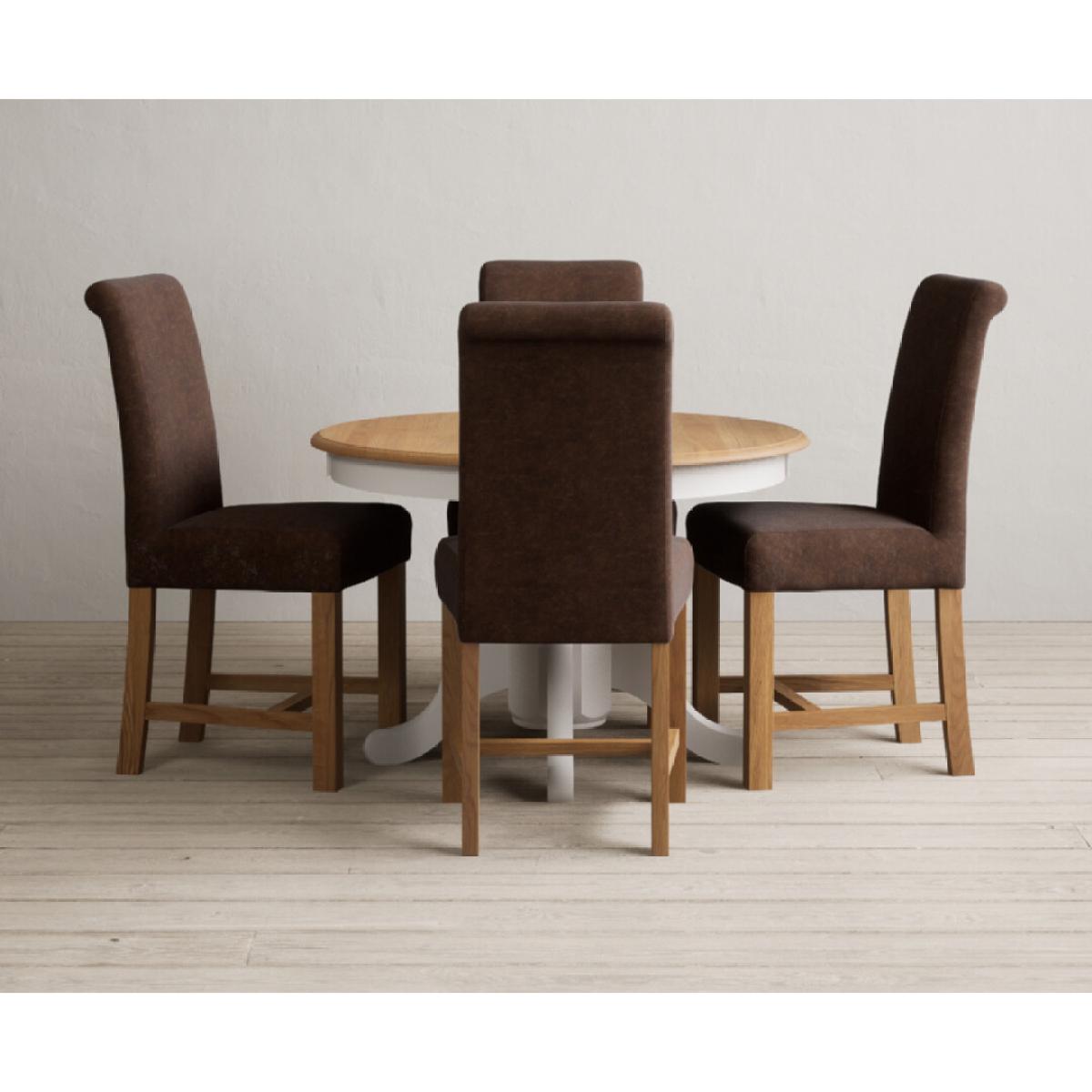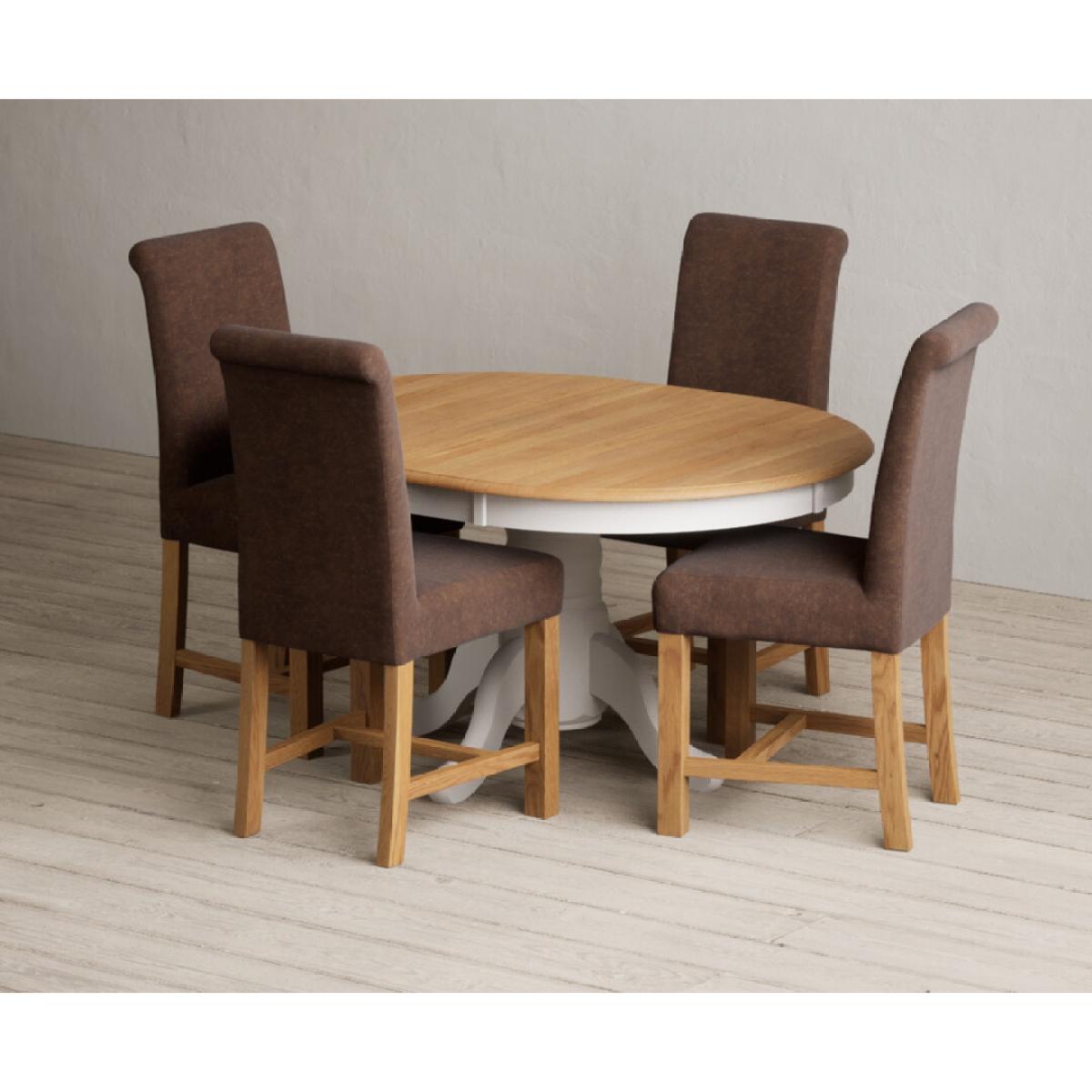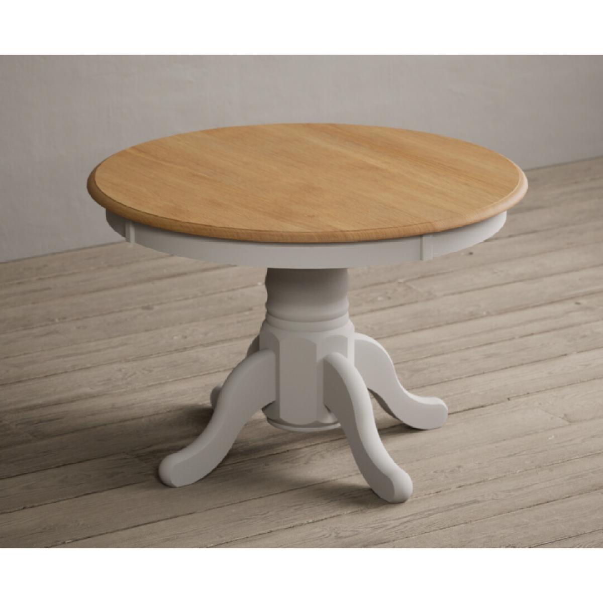 Extending Hertford 100cm - 130cm Oak and Soft White Painted Pedestal Dining Table with Braced Leg Chairs