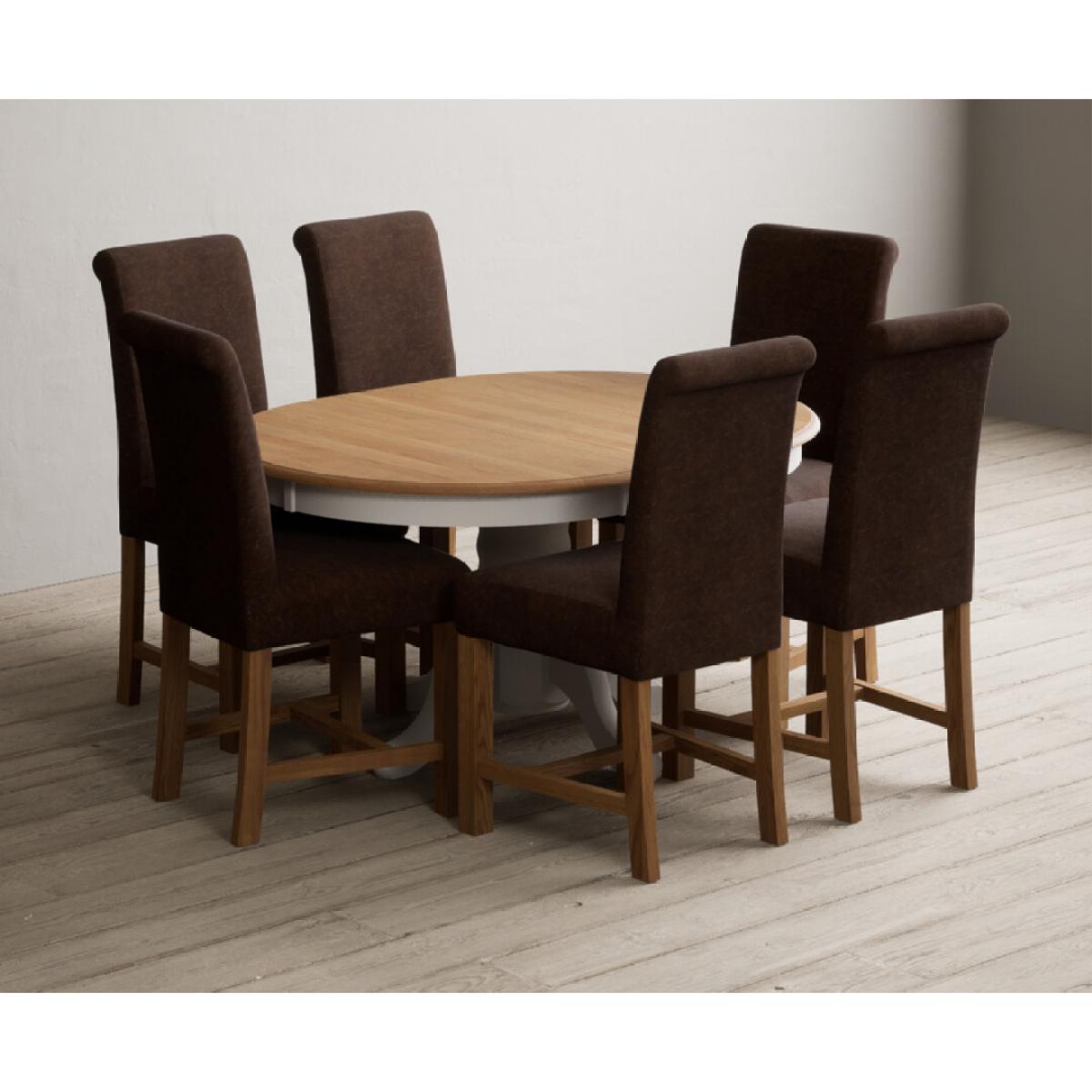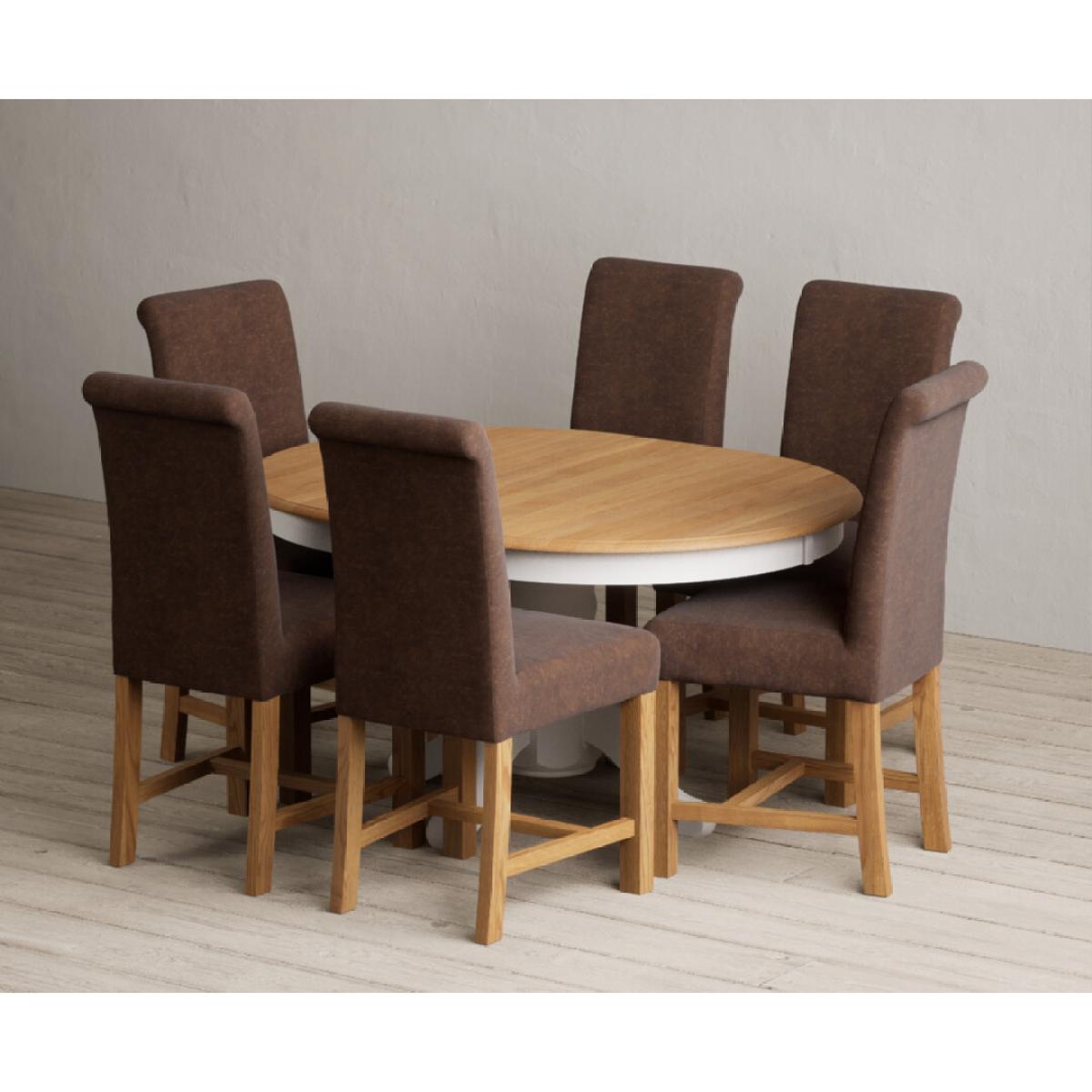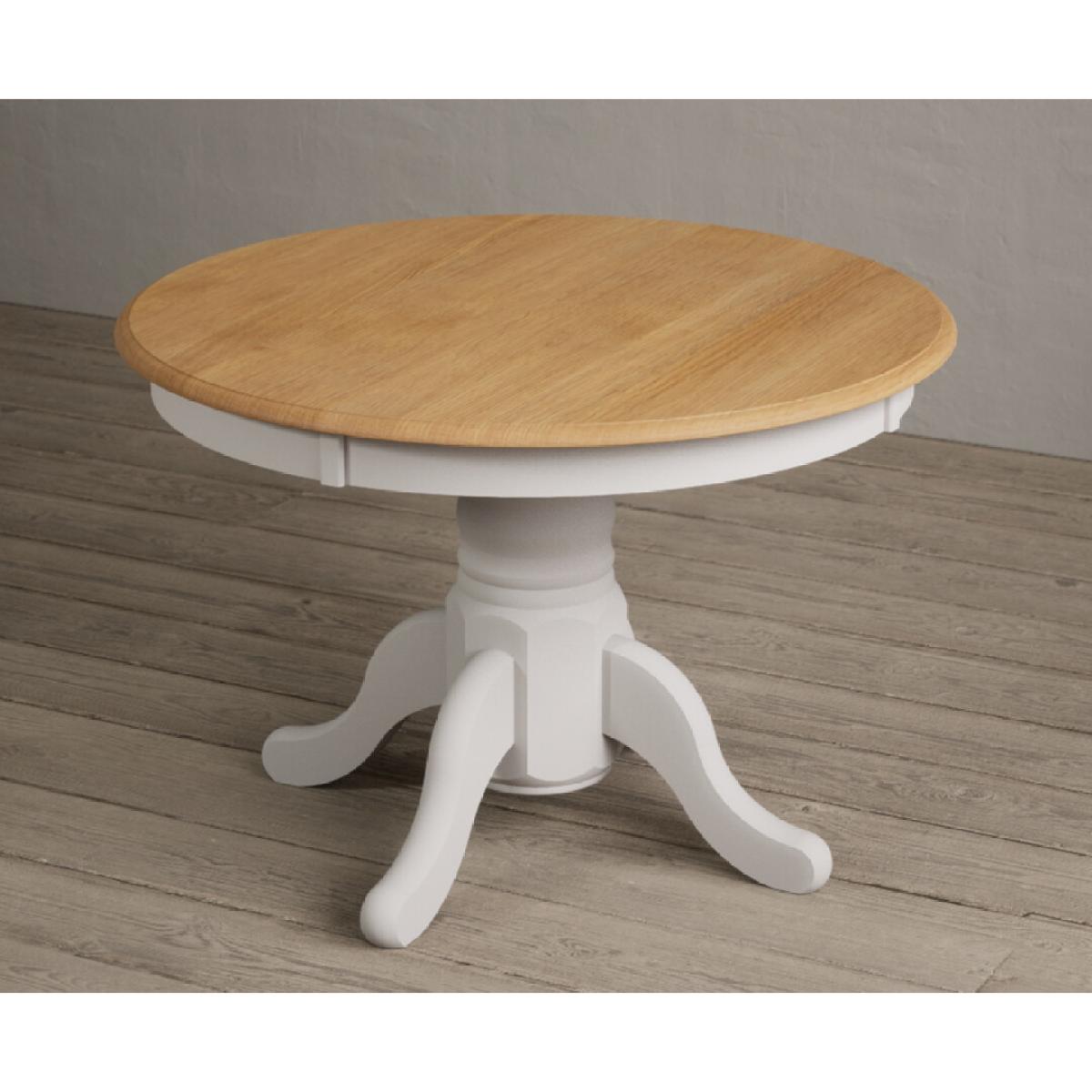 Extending Hertford 100cm - 130cm Oak and Soft White Painted Pedestal Dining Table with 6 Natural Chairs