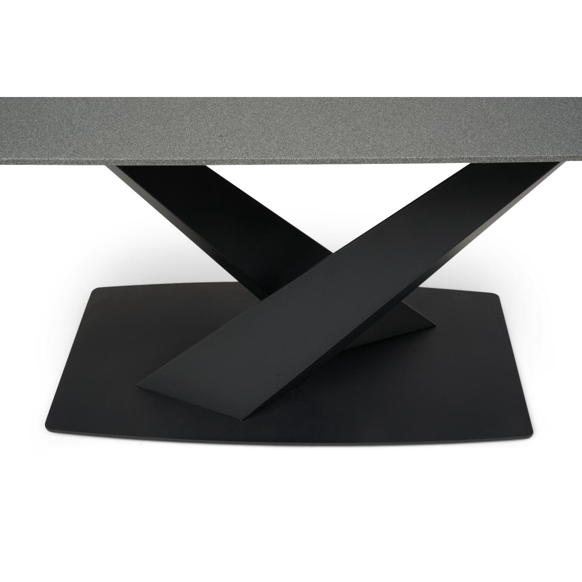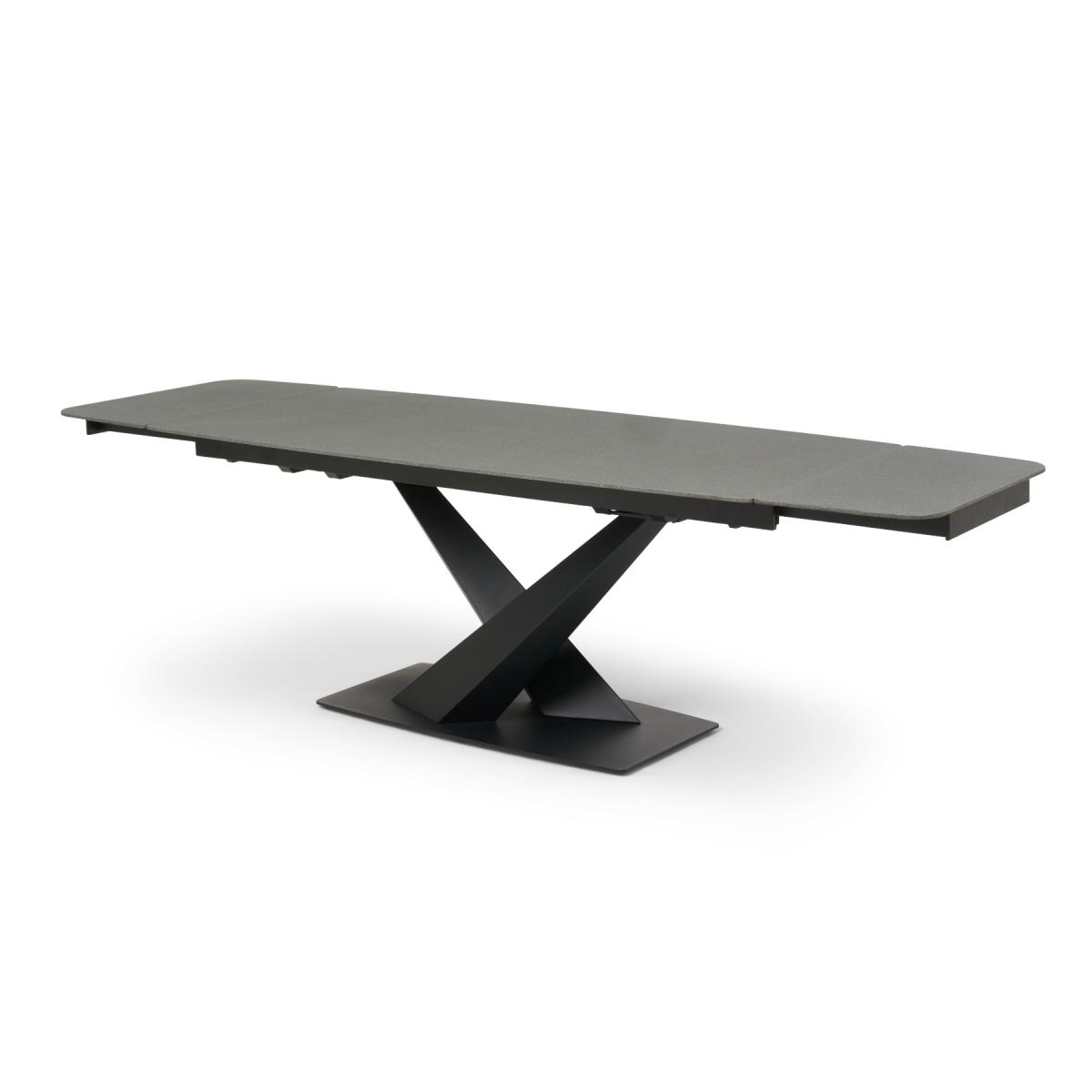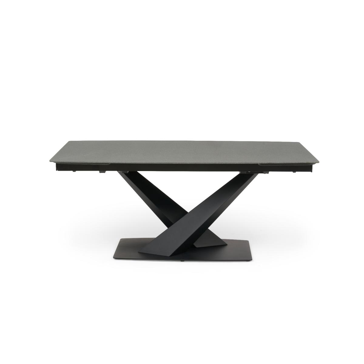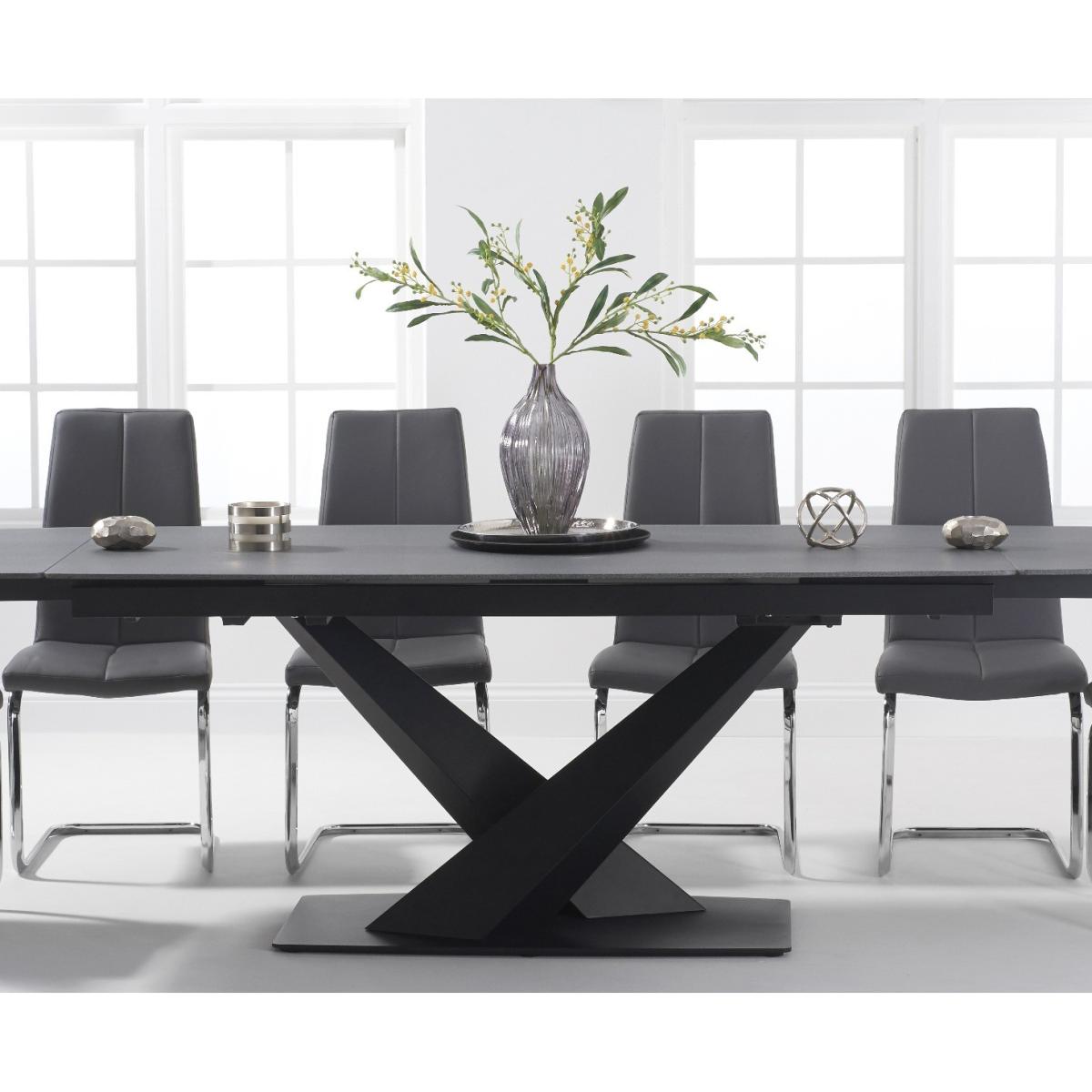 Jacob 180cm Extending Stone Table with Chairs Jacob range makes an impression. Choose stone or ceramic finish. With a black metal base in a crossed design
