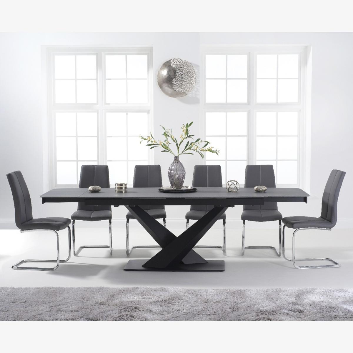 Extending Jacob 180cm Grey Stone Dining Table with 10 Grey Gianni Chairs
