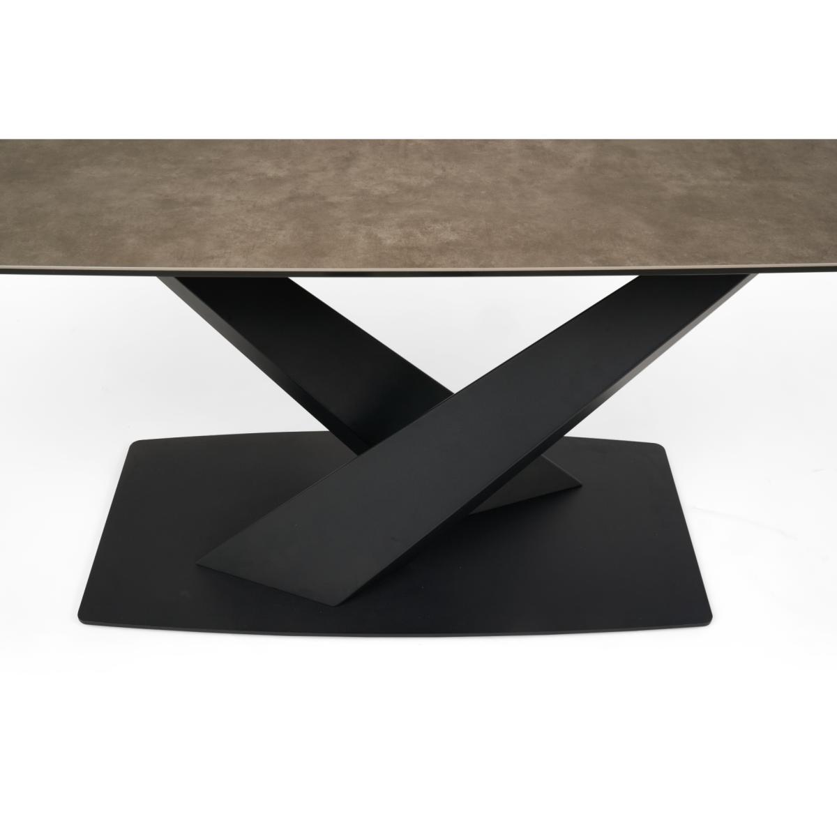 Complete with a stunning black metal base in a crossed design this dining set is sure to wow guests