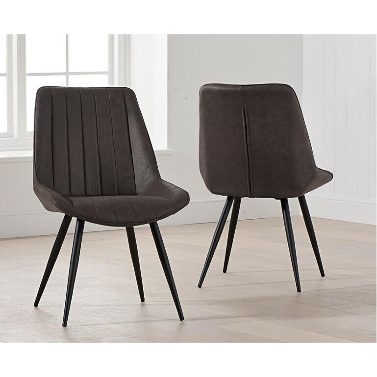 Complete with a stunning black metal base in a crossed design this dining set is sure to wow guests