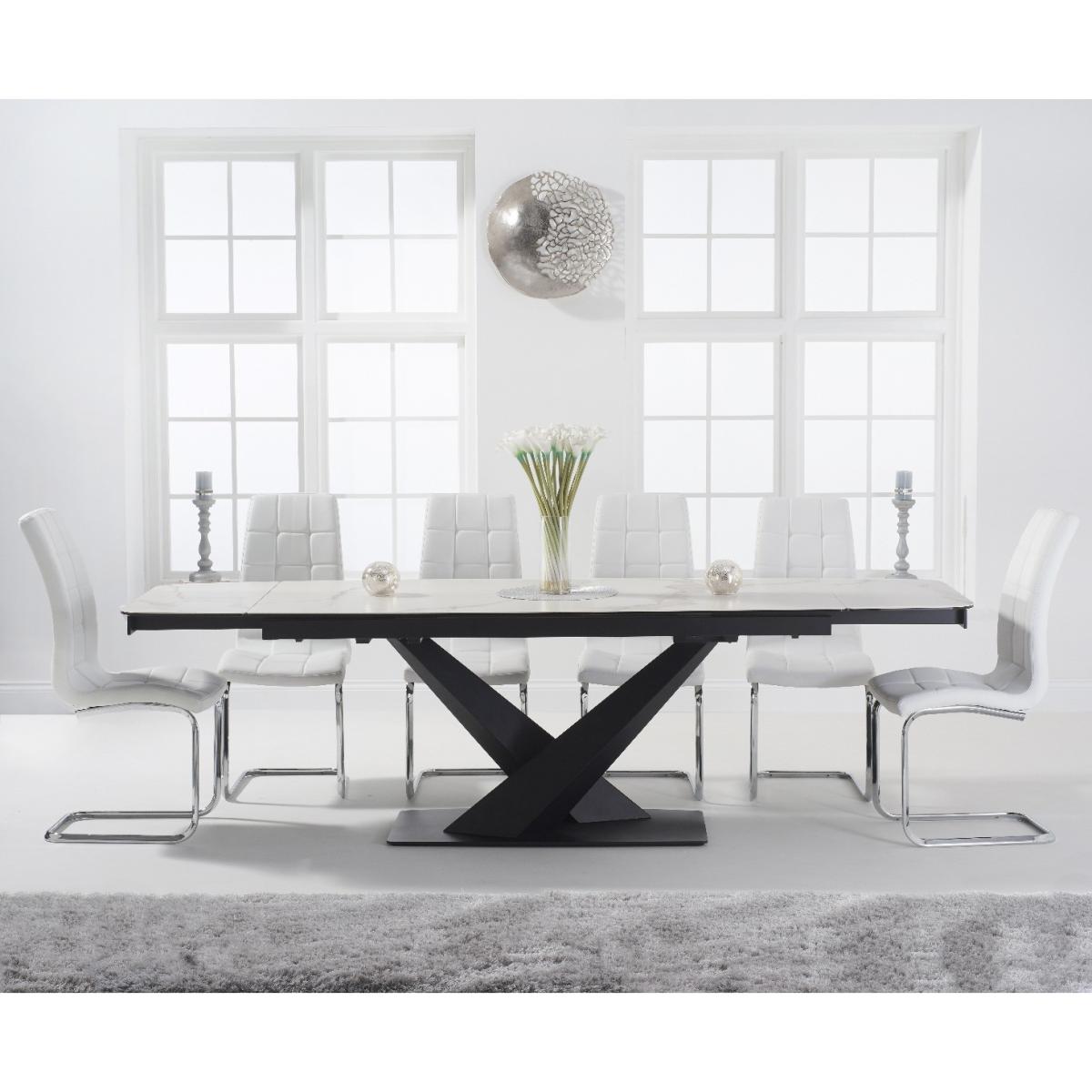 Extending Jacob 180cm White Ceramic Dining Table with 6 White Vigo Chairs